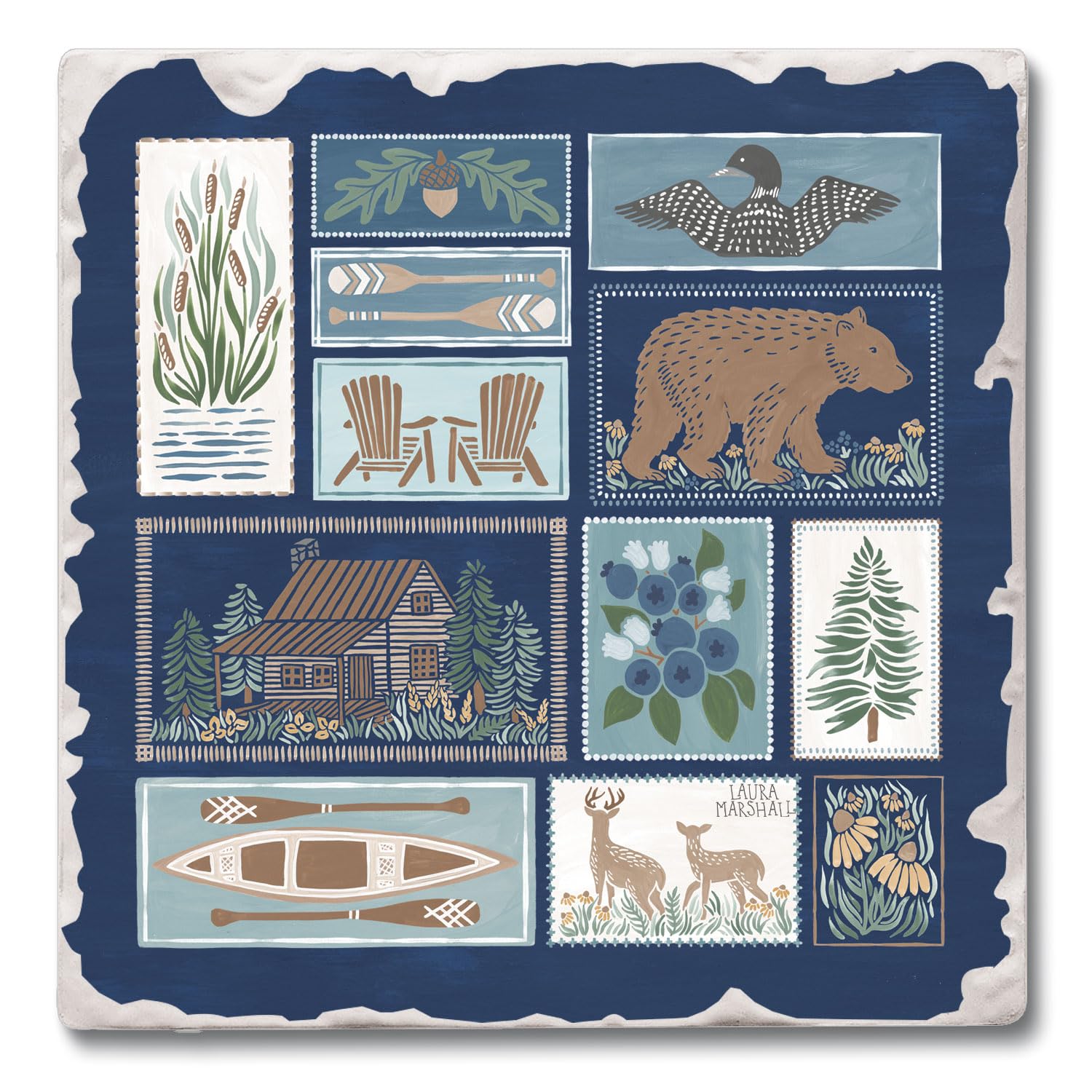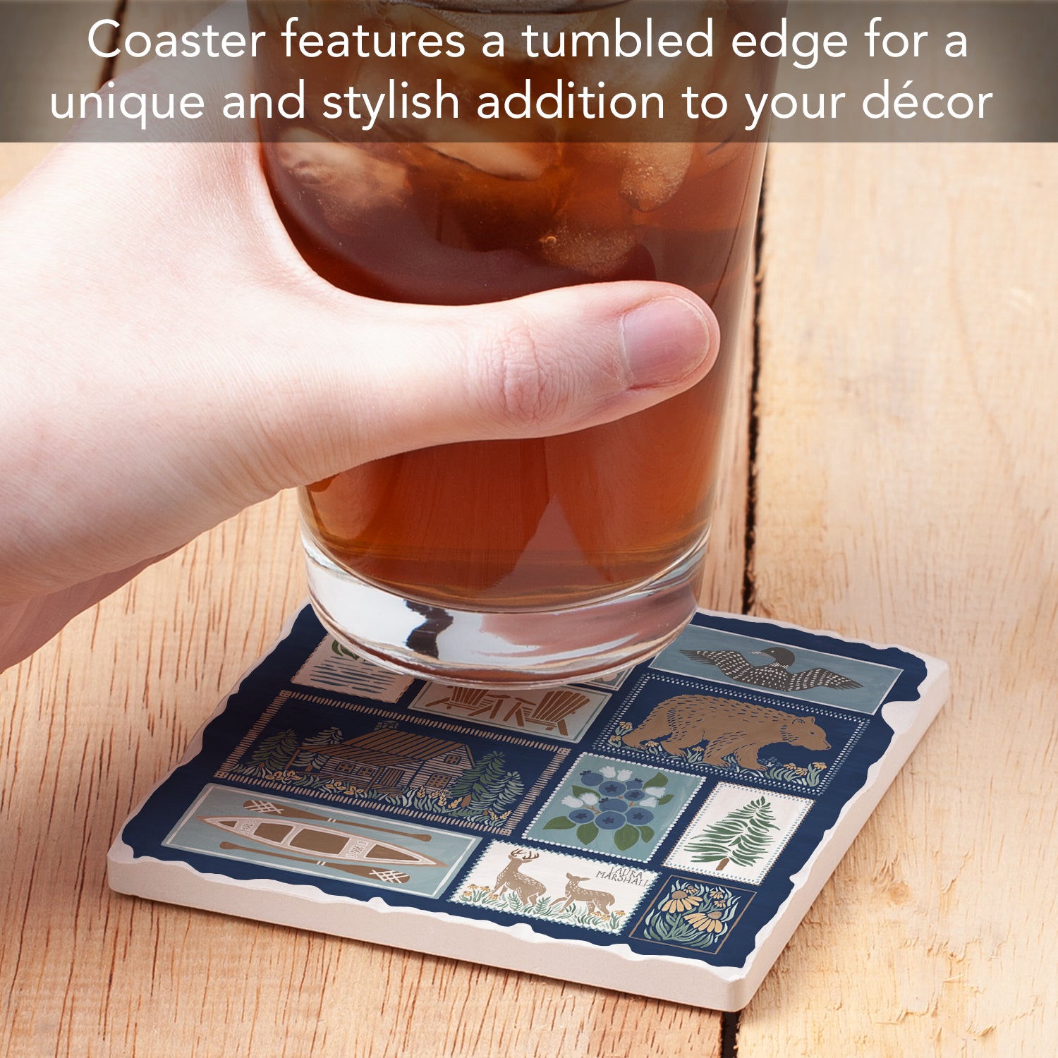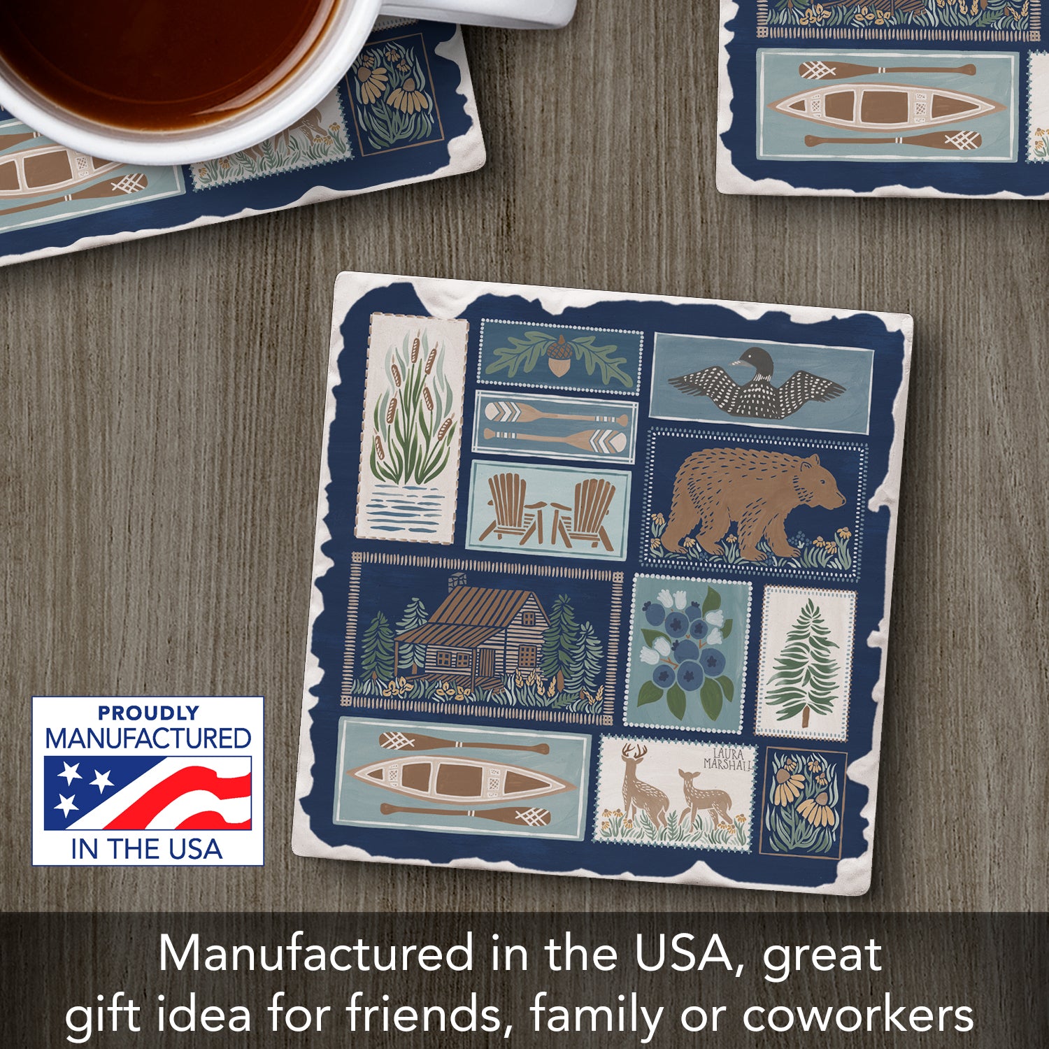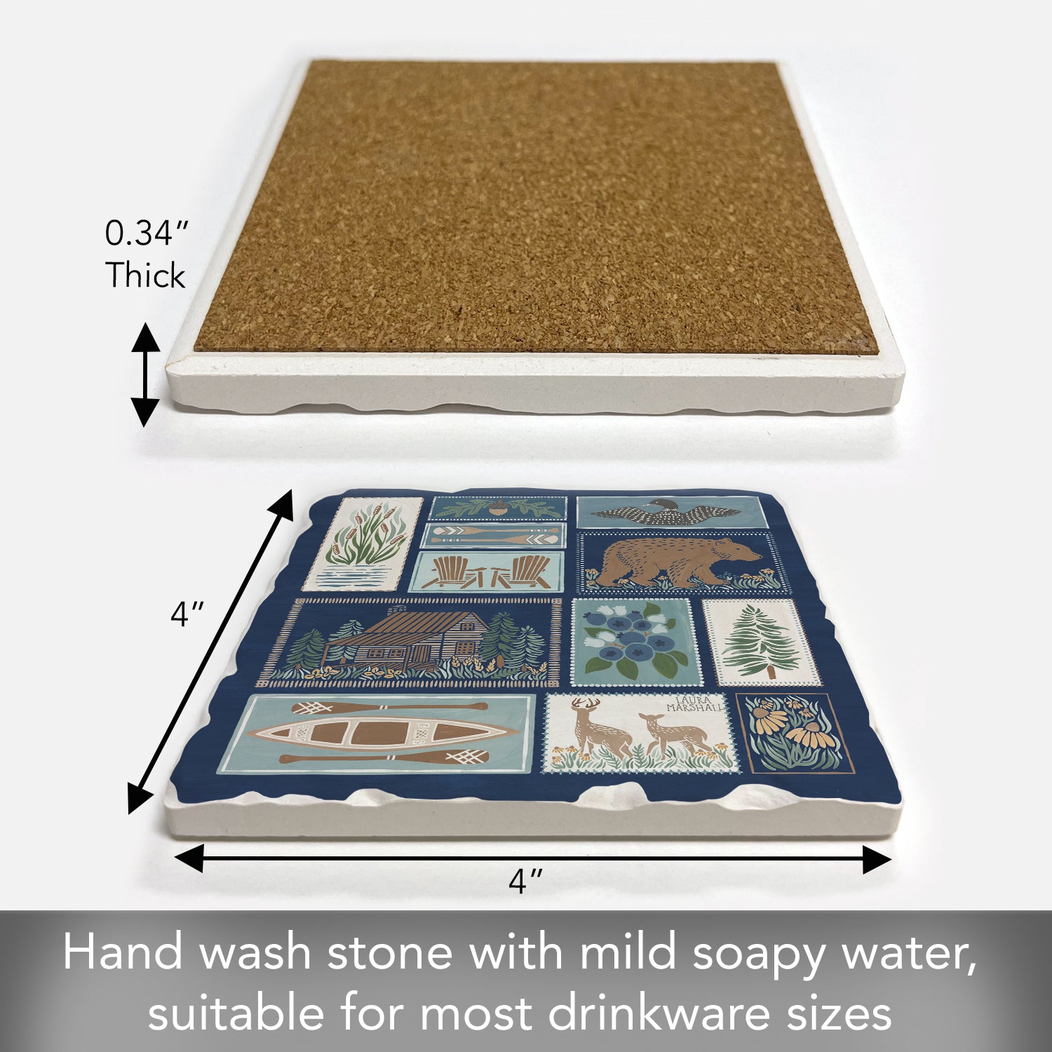 Thirstystone Lake Icons Single Tumbled Tile Stone Coaster with Protective Cork Backing Manufactured in The USA 4" Square