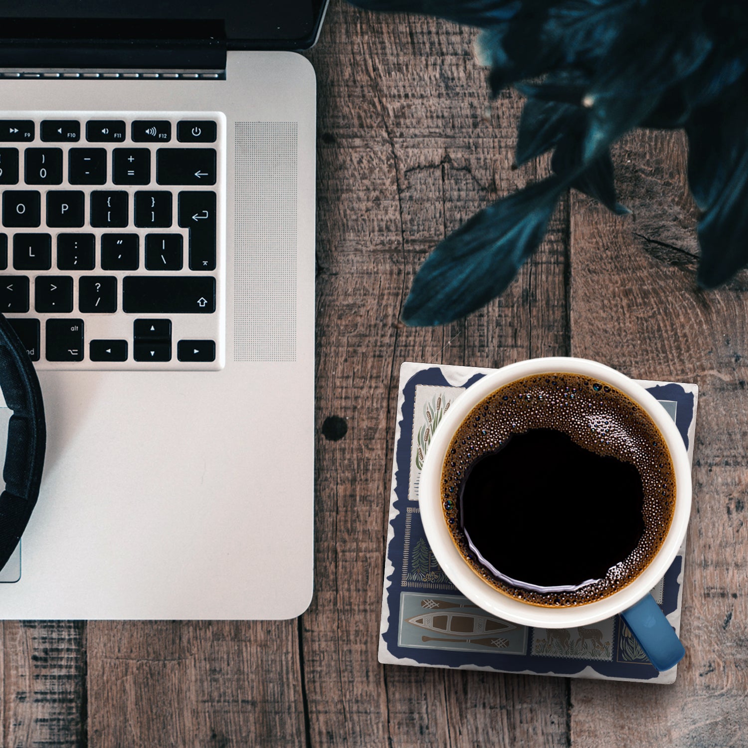 FUNCTIONAL ART-Beautiful artistic design allows the Coaster to remain displayed even when not in use. Each Coaster measures 4” x 4” x .25”. Sized to fit larger Mugs & Glasses.