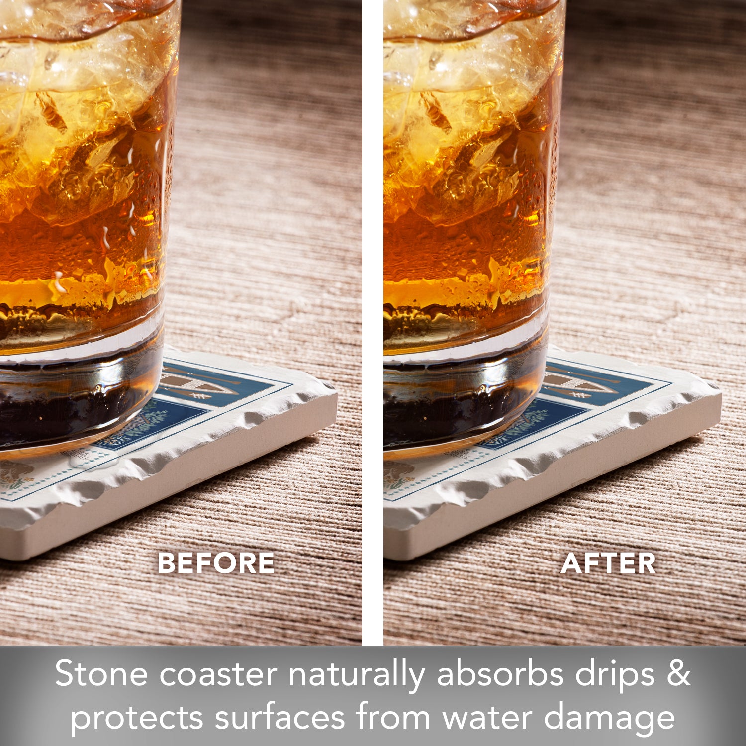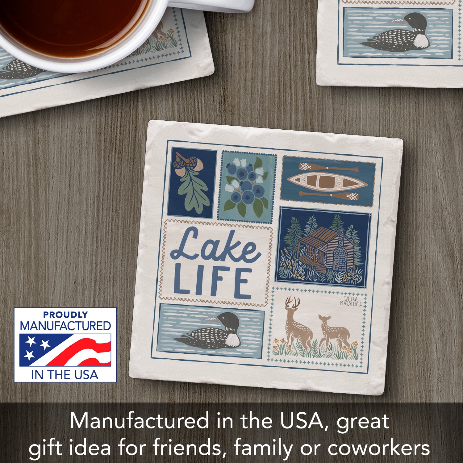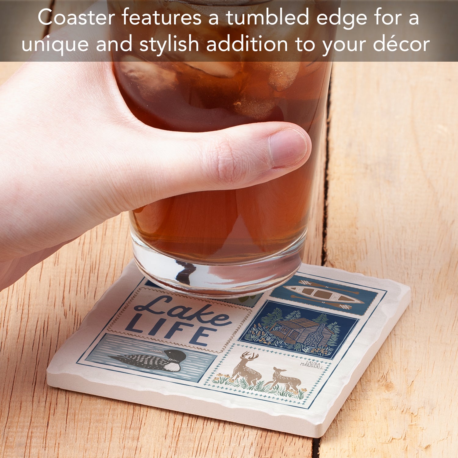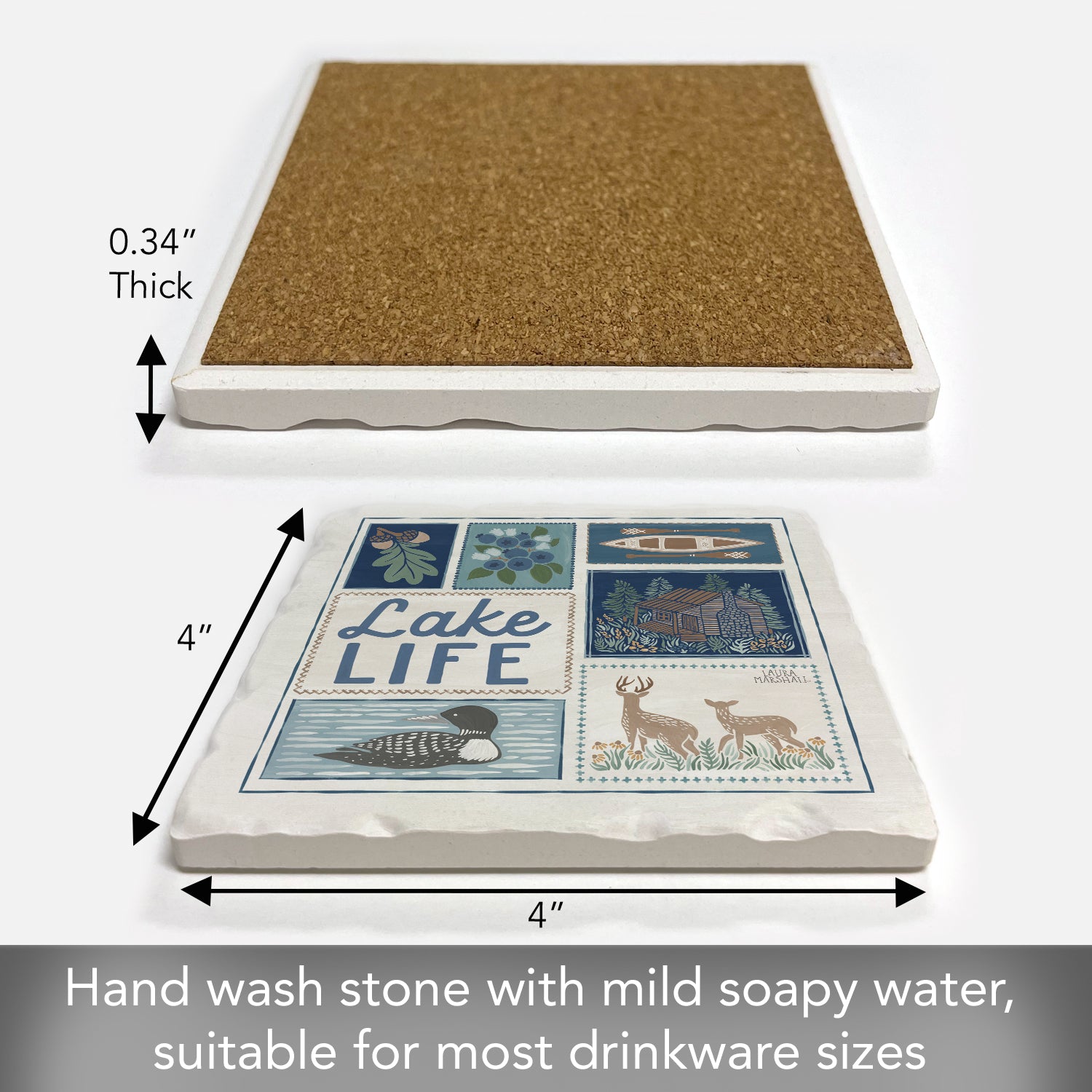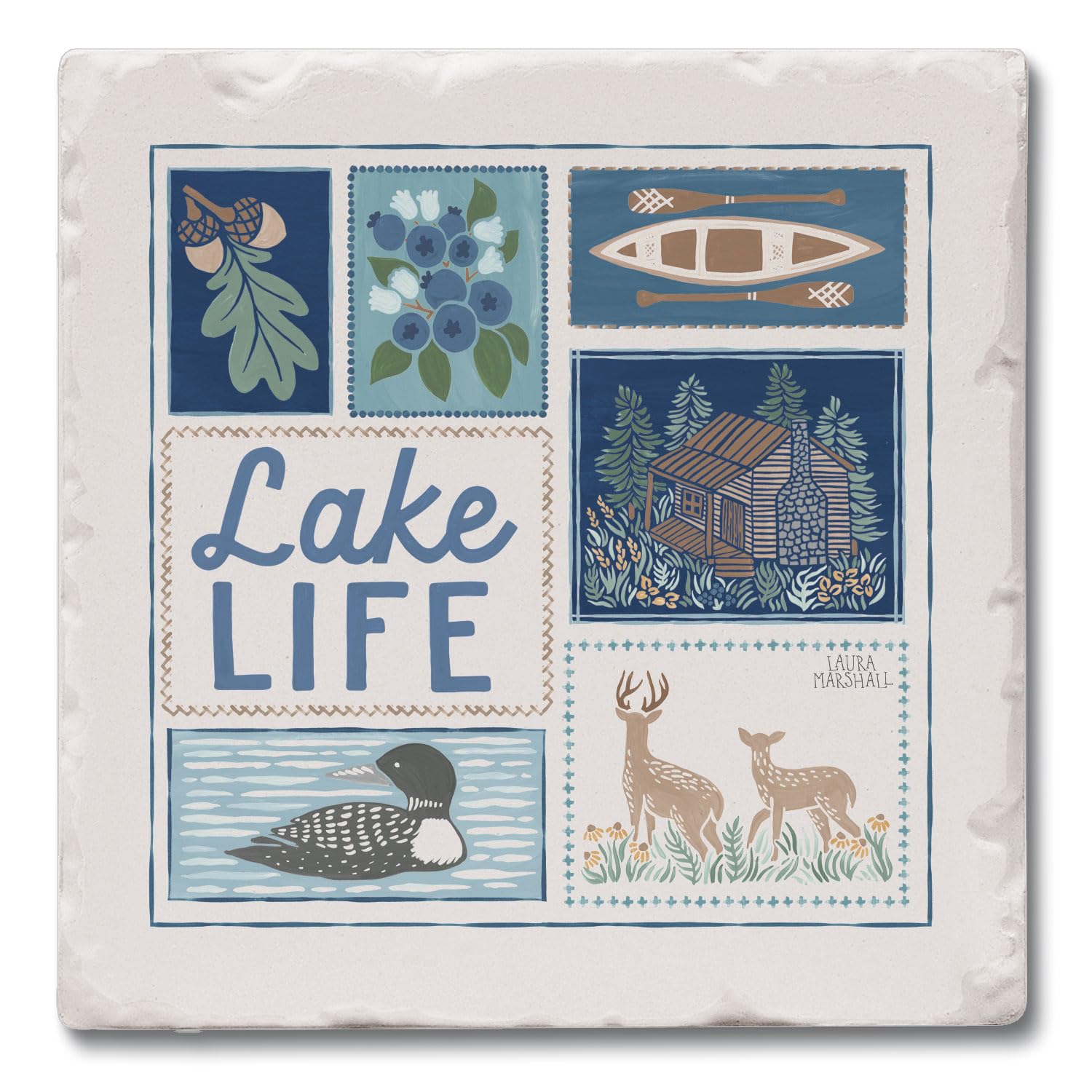 Thirstystone Lake Life Single Tumbled Tile Stone Coaster with Protective Cork Backing Manufactured in The USA 4" Square