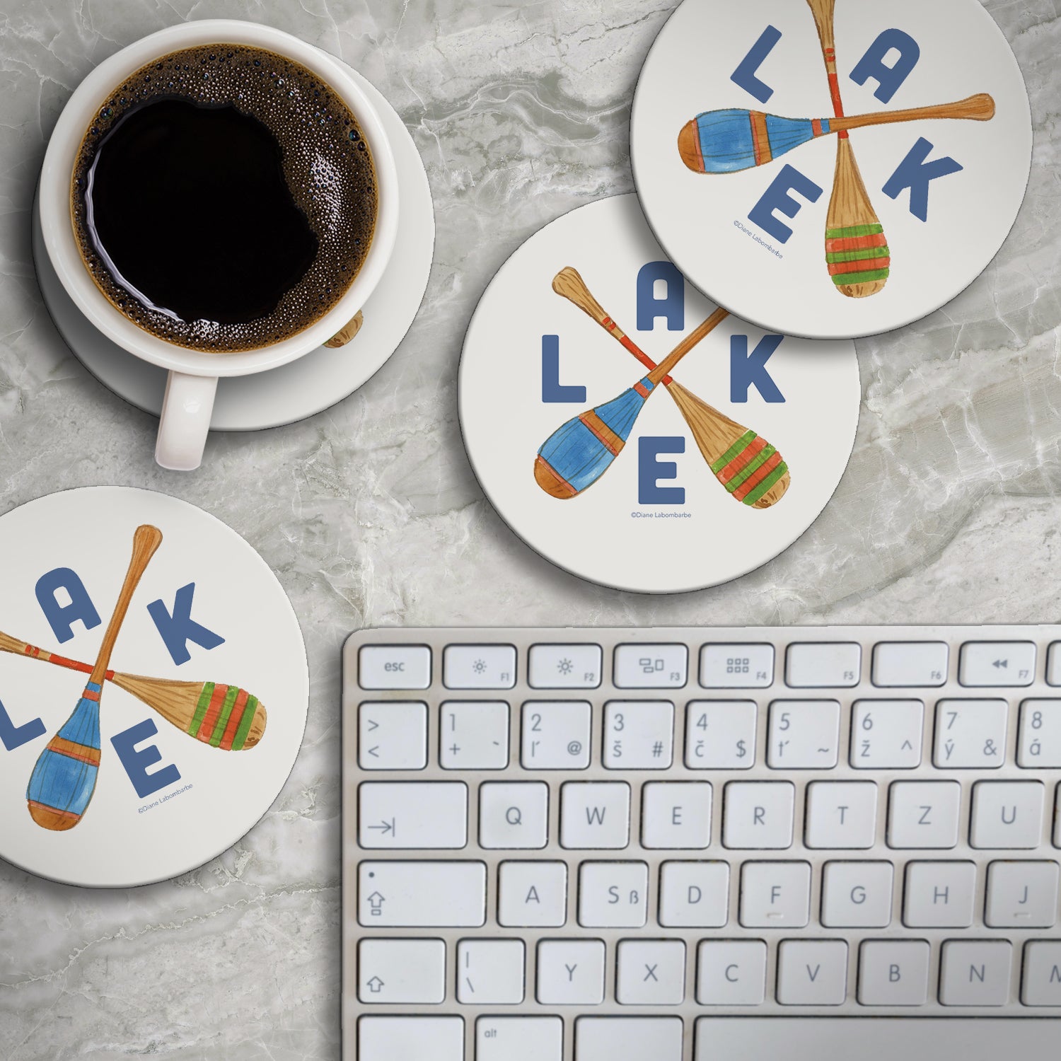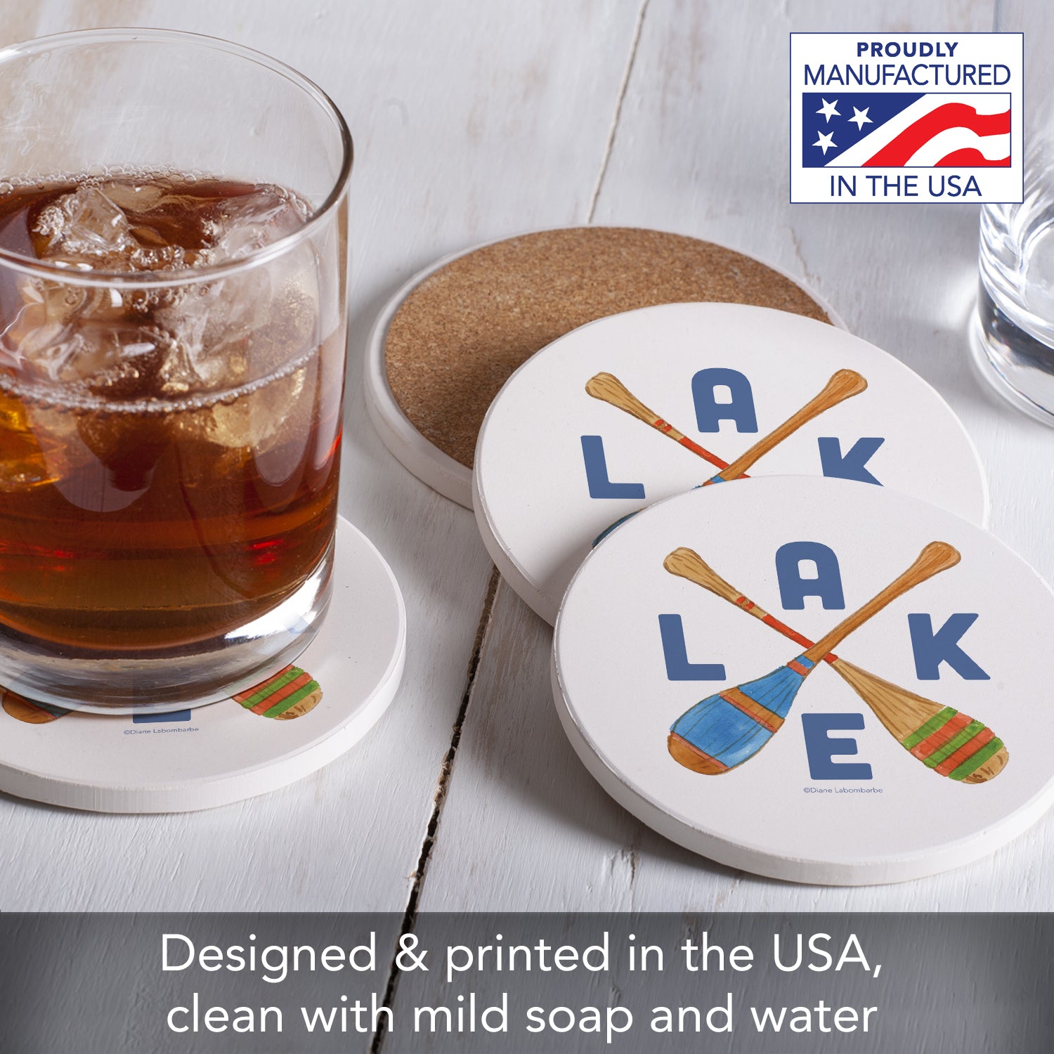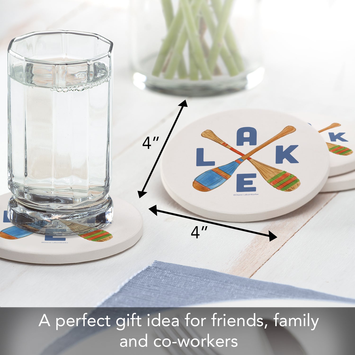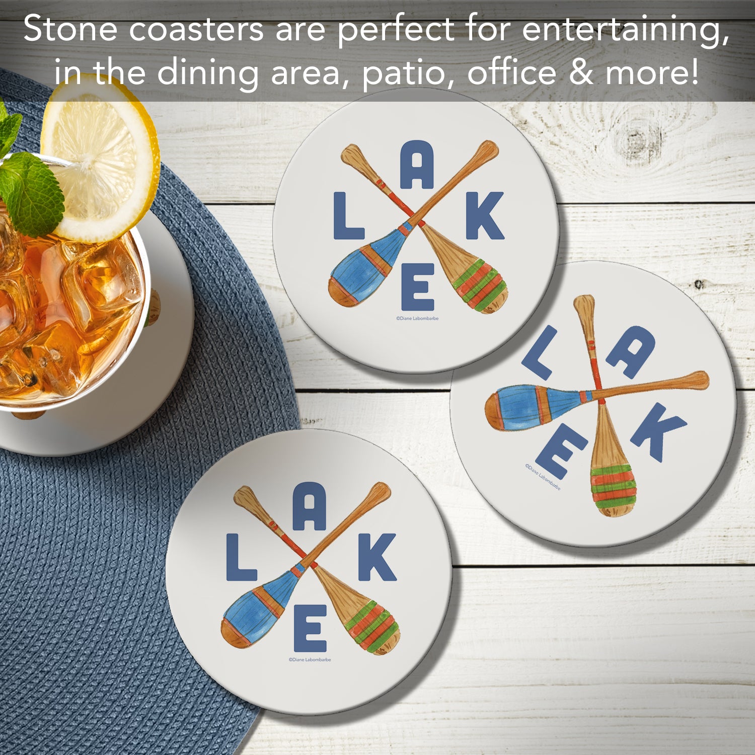 Thirstystone Lake Living 4 Pack Round Absorbent Stone Coasters 4" Diameter Manufactured in the USA
