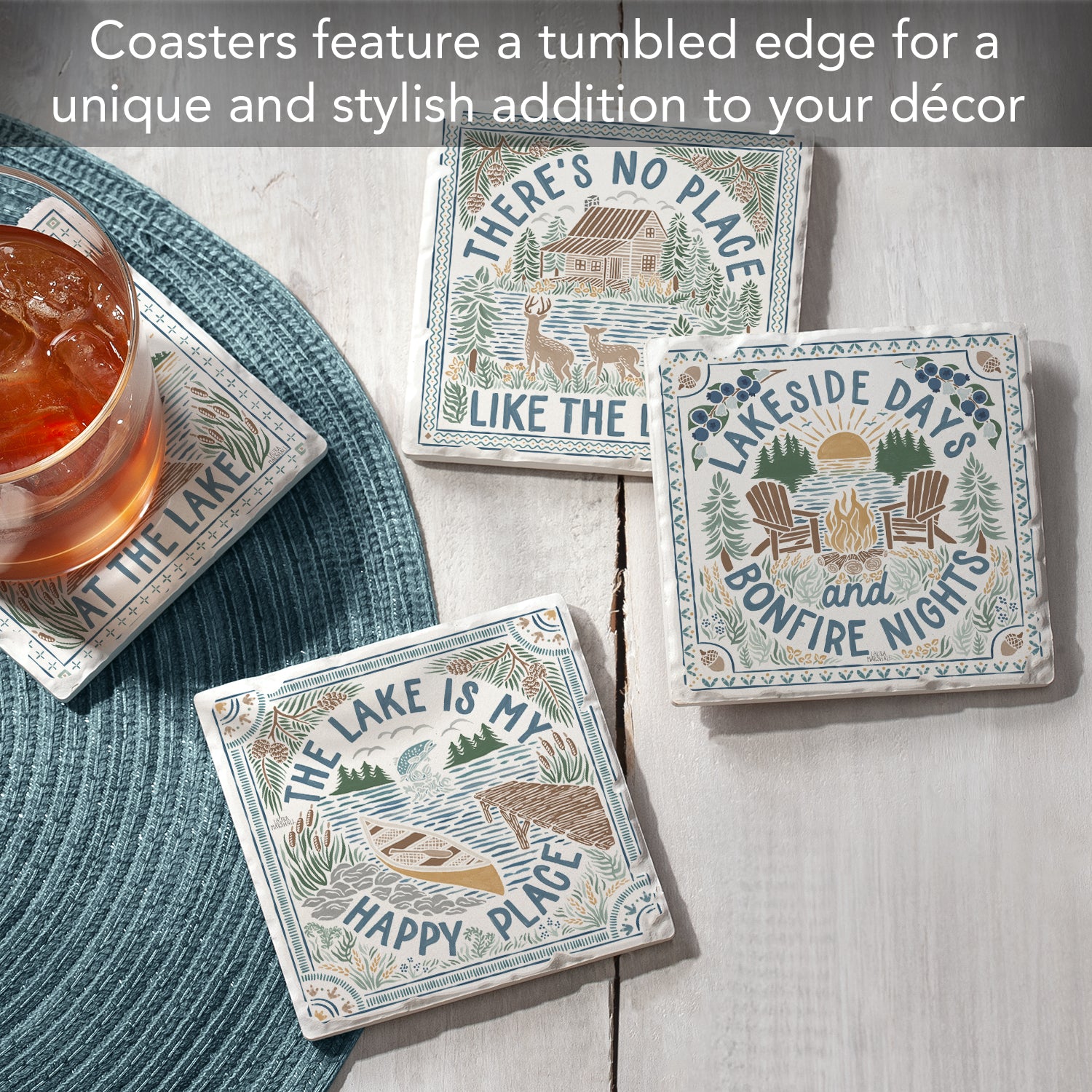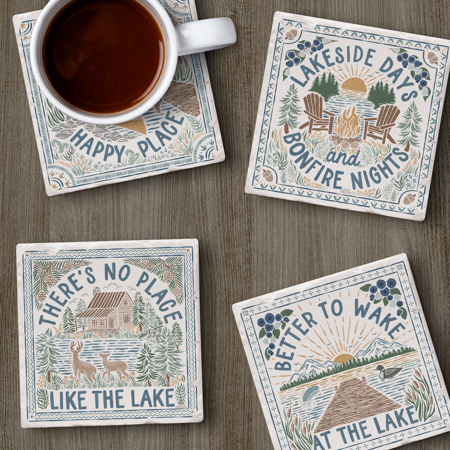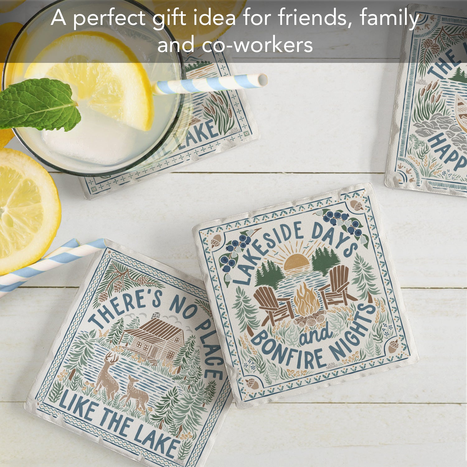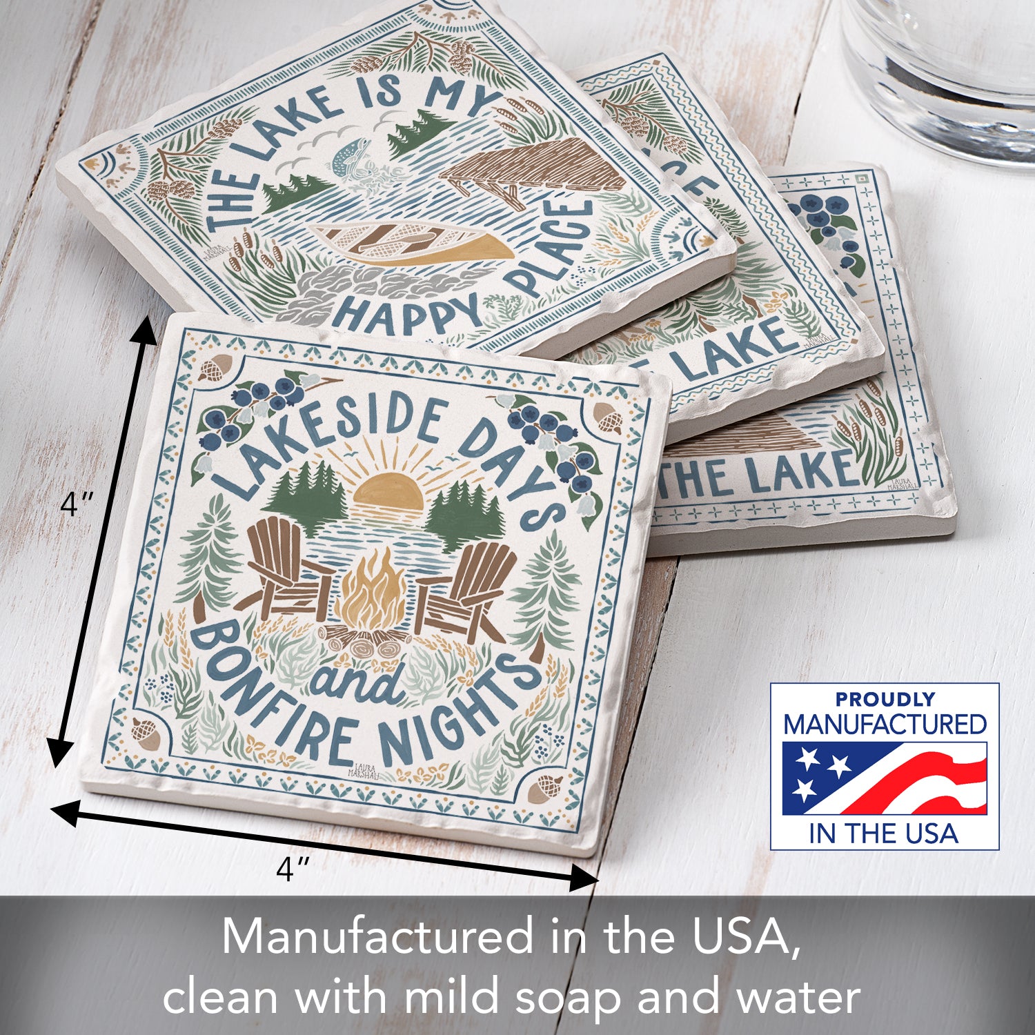 Thirstystone Lakeside Thoughts 4-Pack Stone Tumbled Tile Stone Coasters 4" Square