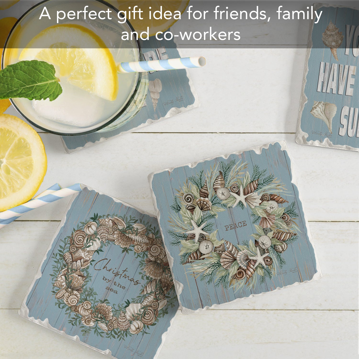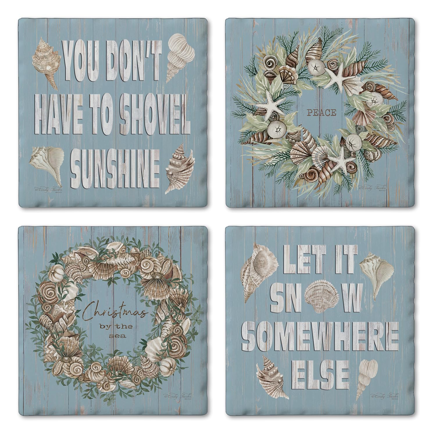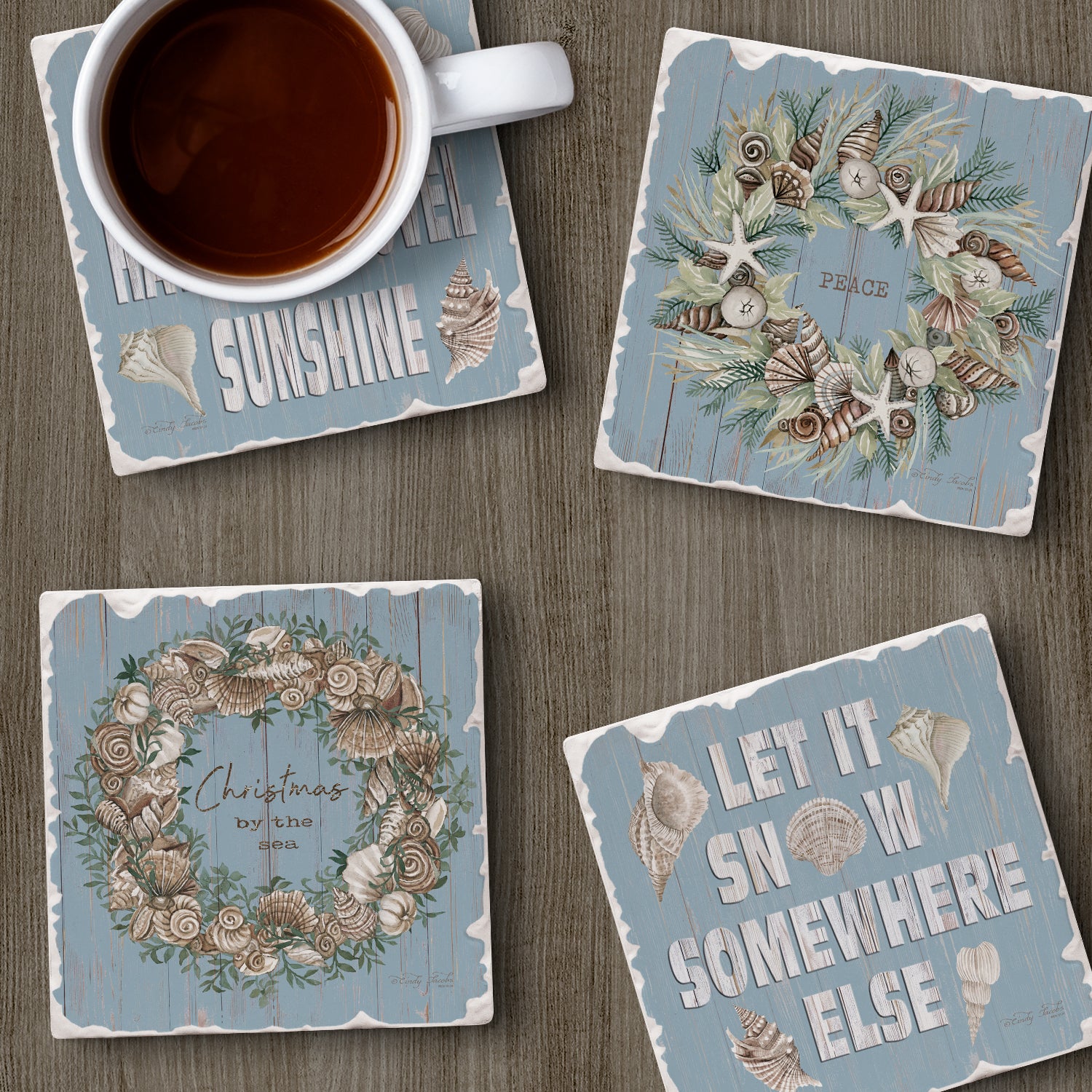 Thirstystone Let It Snow 4 Pack Assorted Tumbled Tile Stone Coasters 4" Square