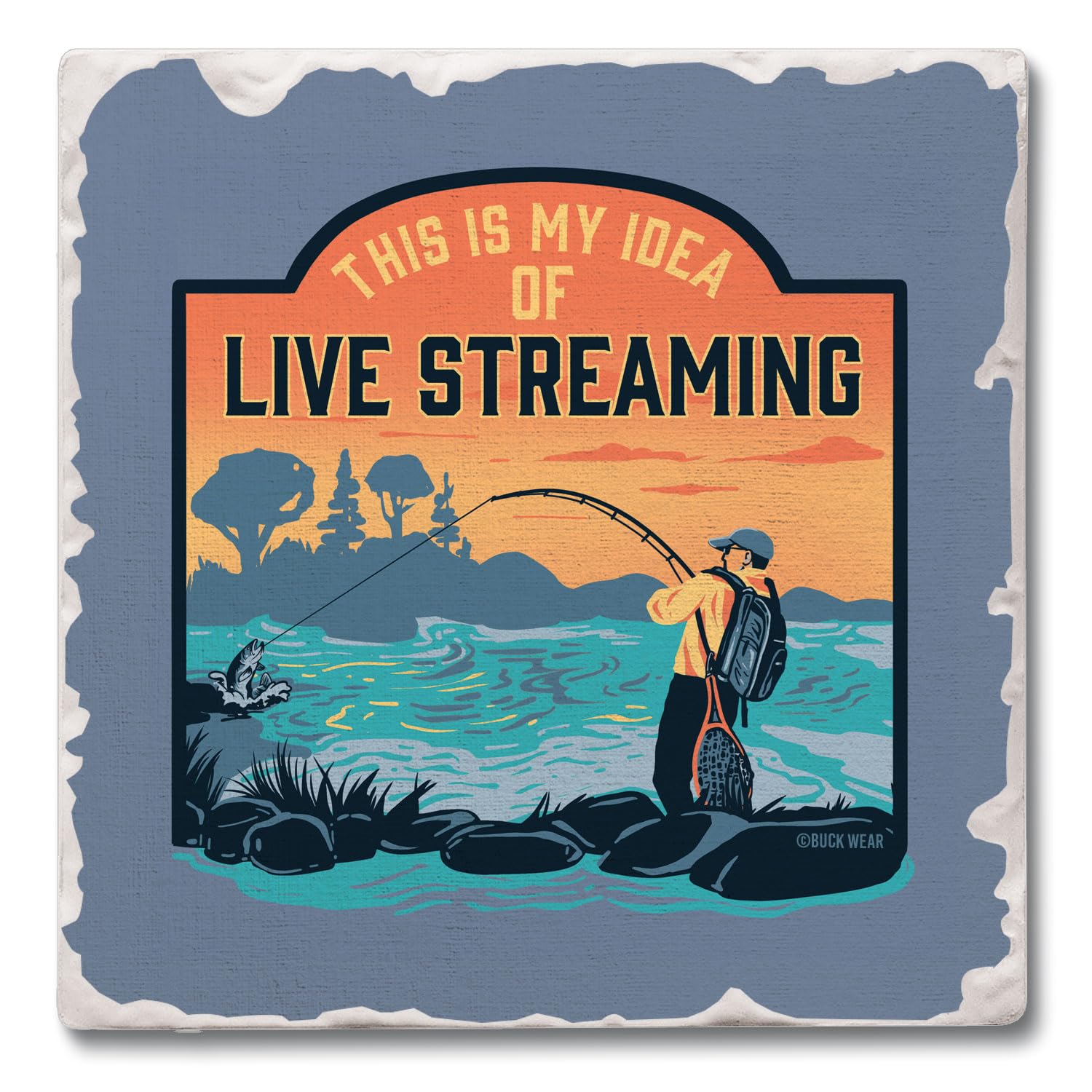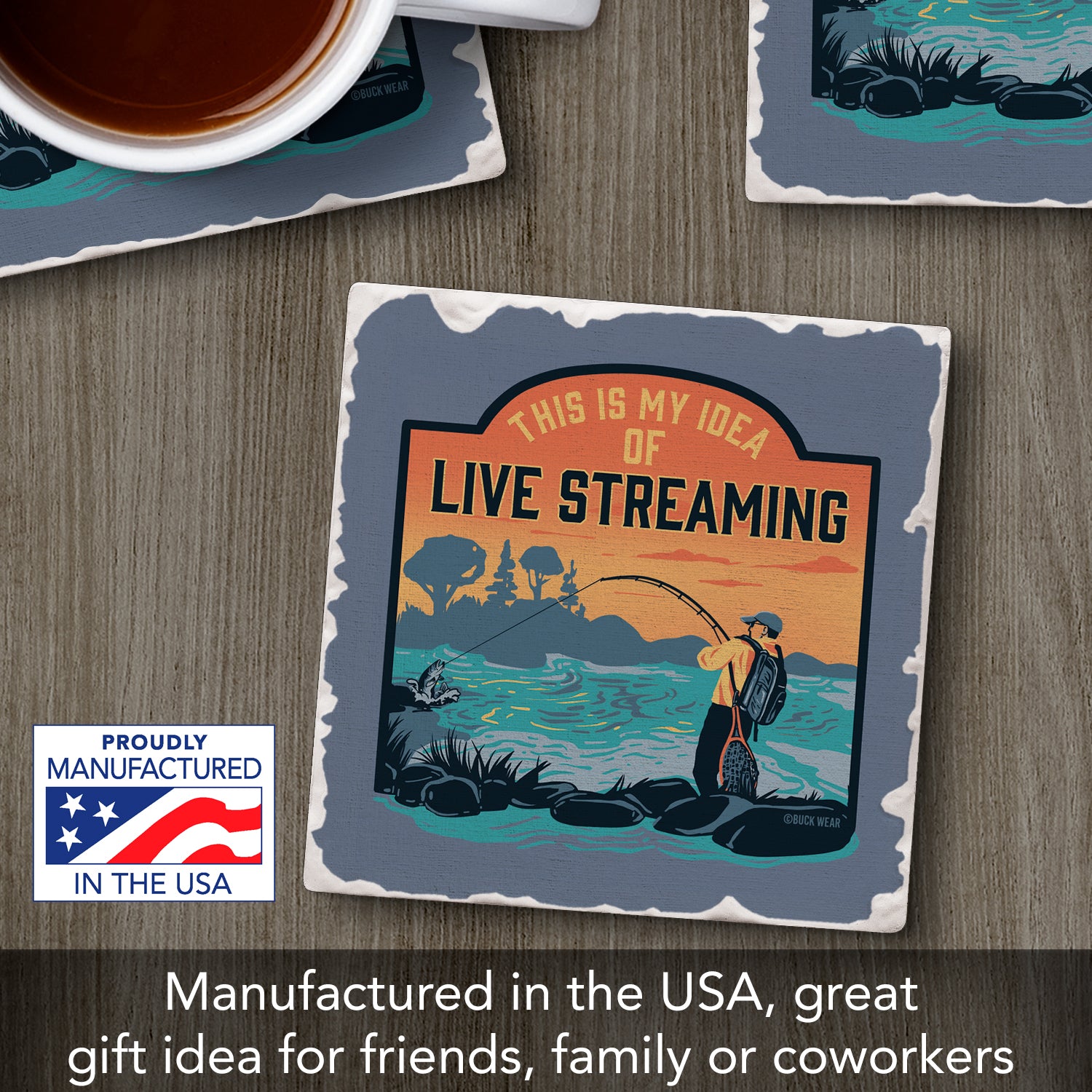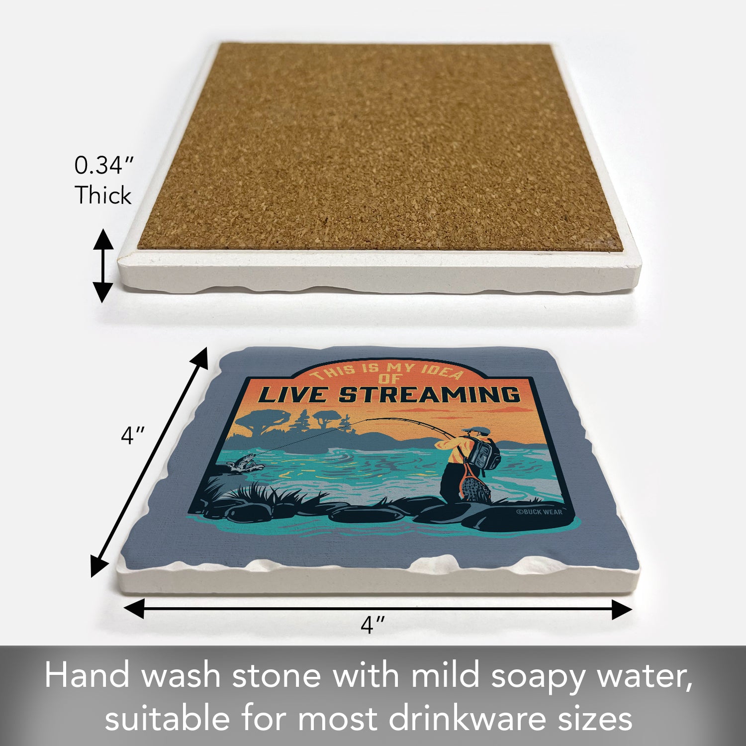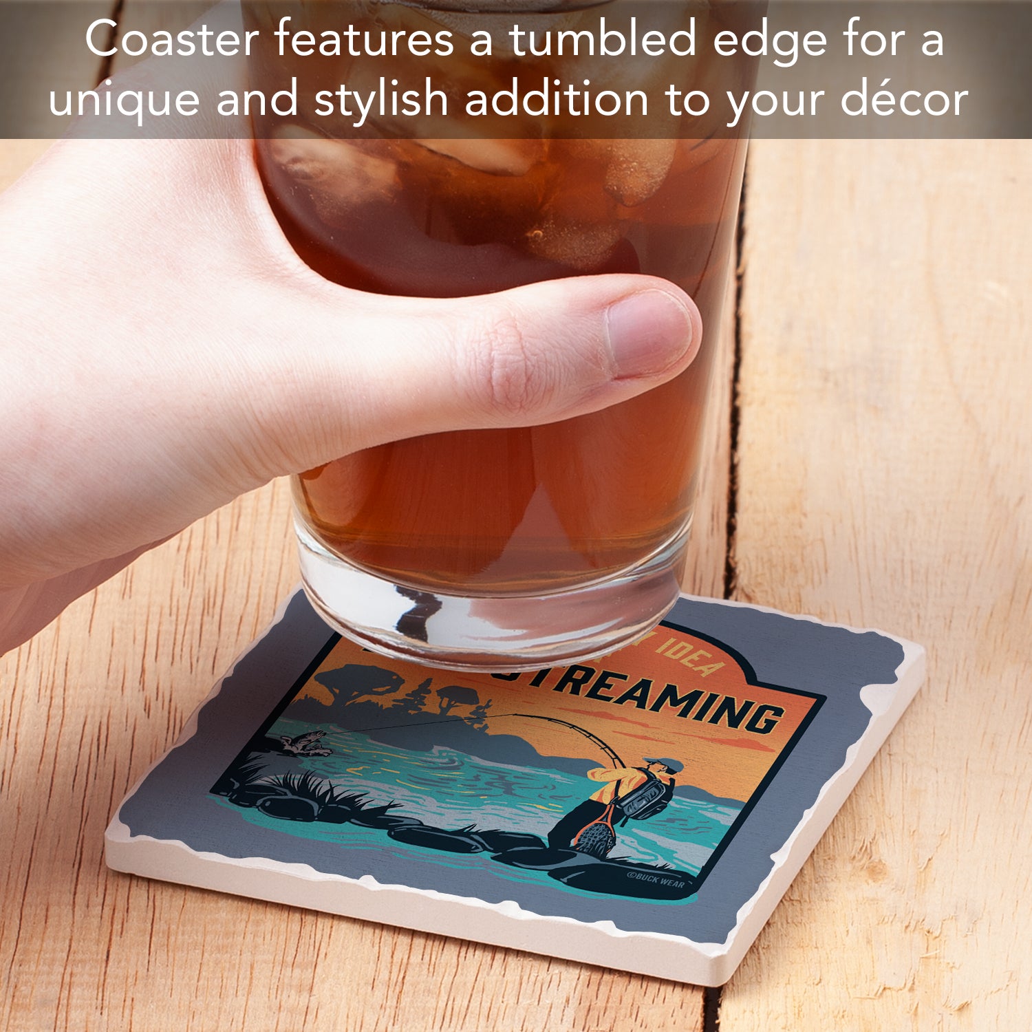 Thirstystone Live Streaming Single Tumbled Tile Stone Coaster with Protective Cork Backing Manufactured in The USA 4" Square