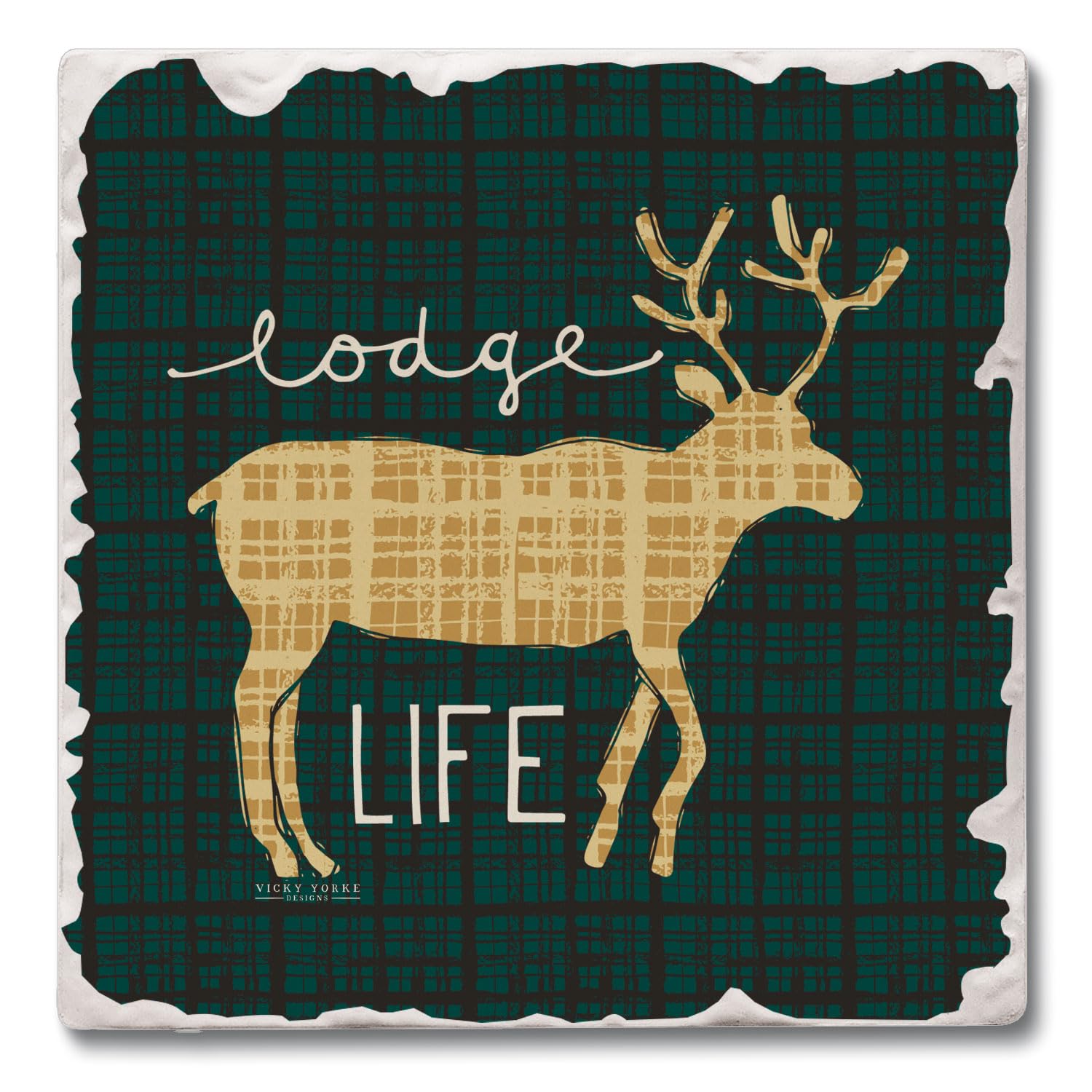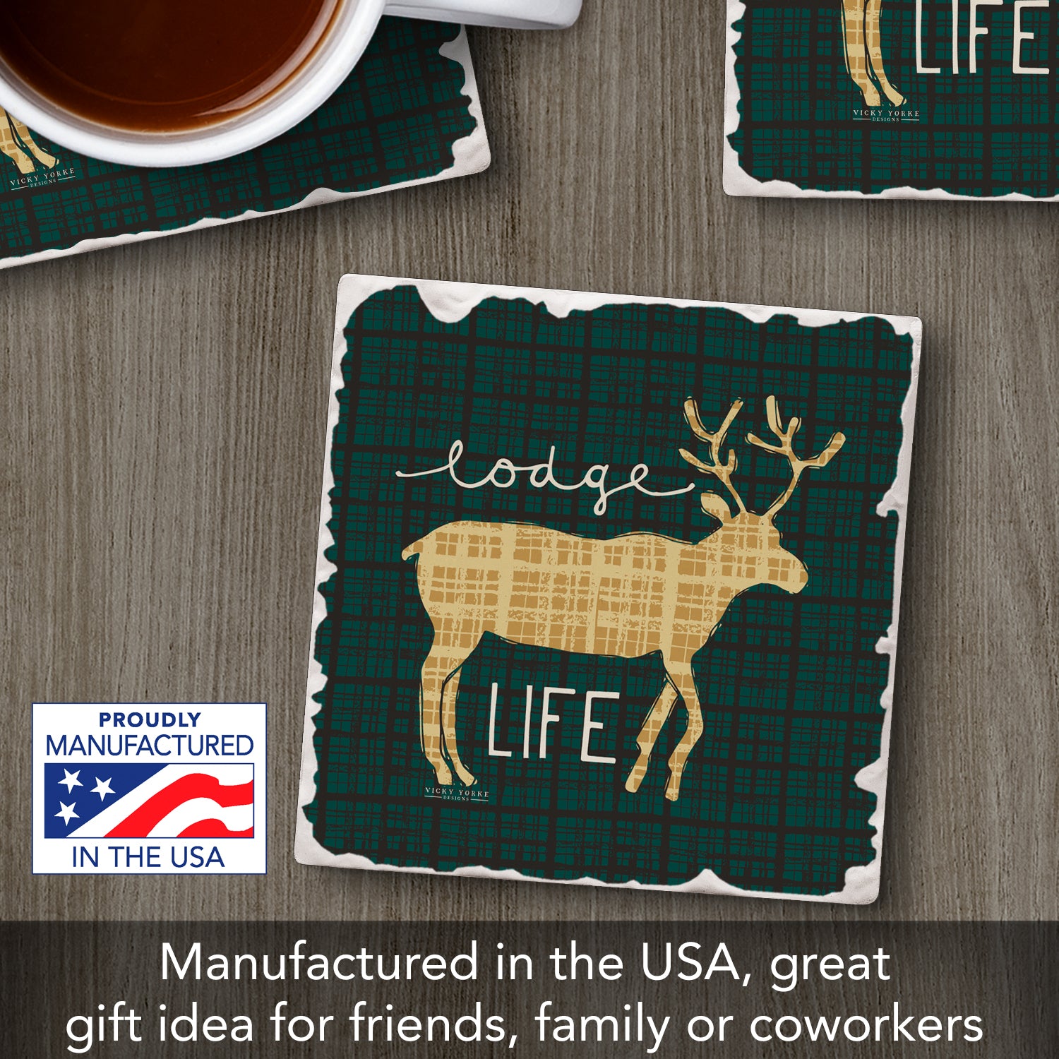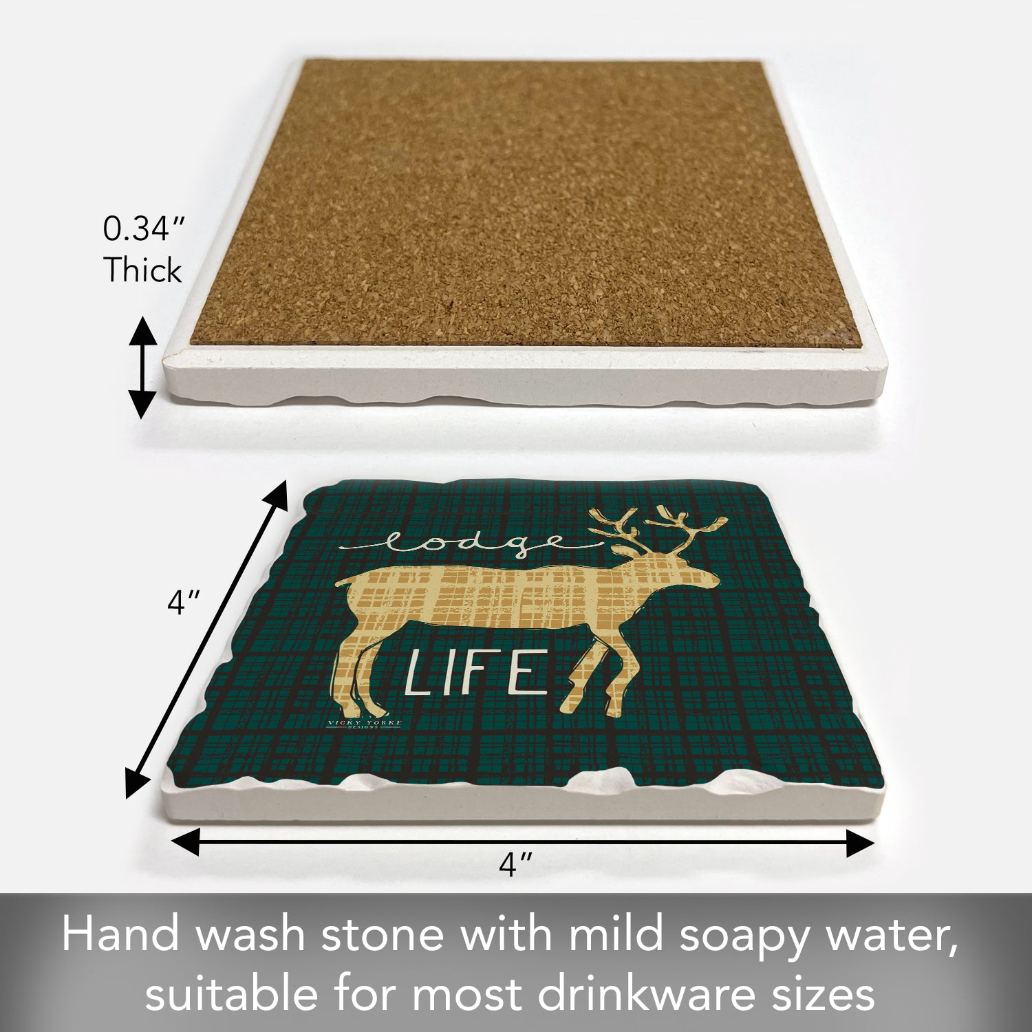 Thirstystone Lodge Life Single Absorbent Stone Coaster with Protective Cork Backing Manufactured in The USA 4" Square, Artistic, Easily Wipes Clean