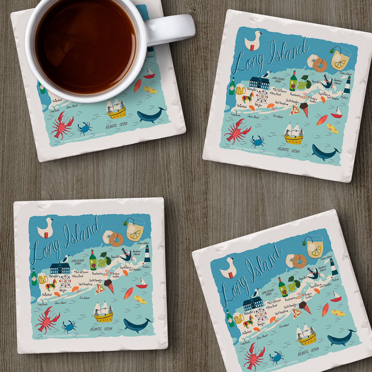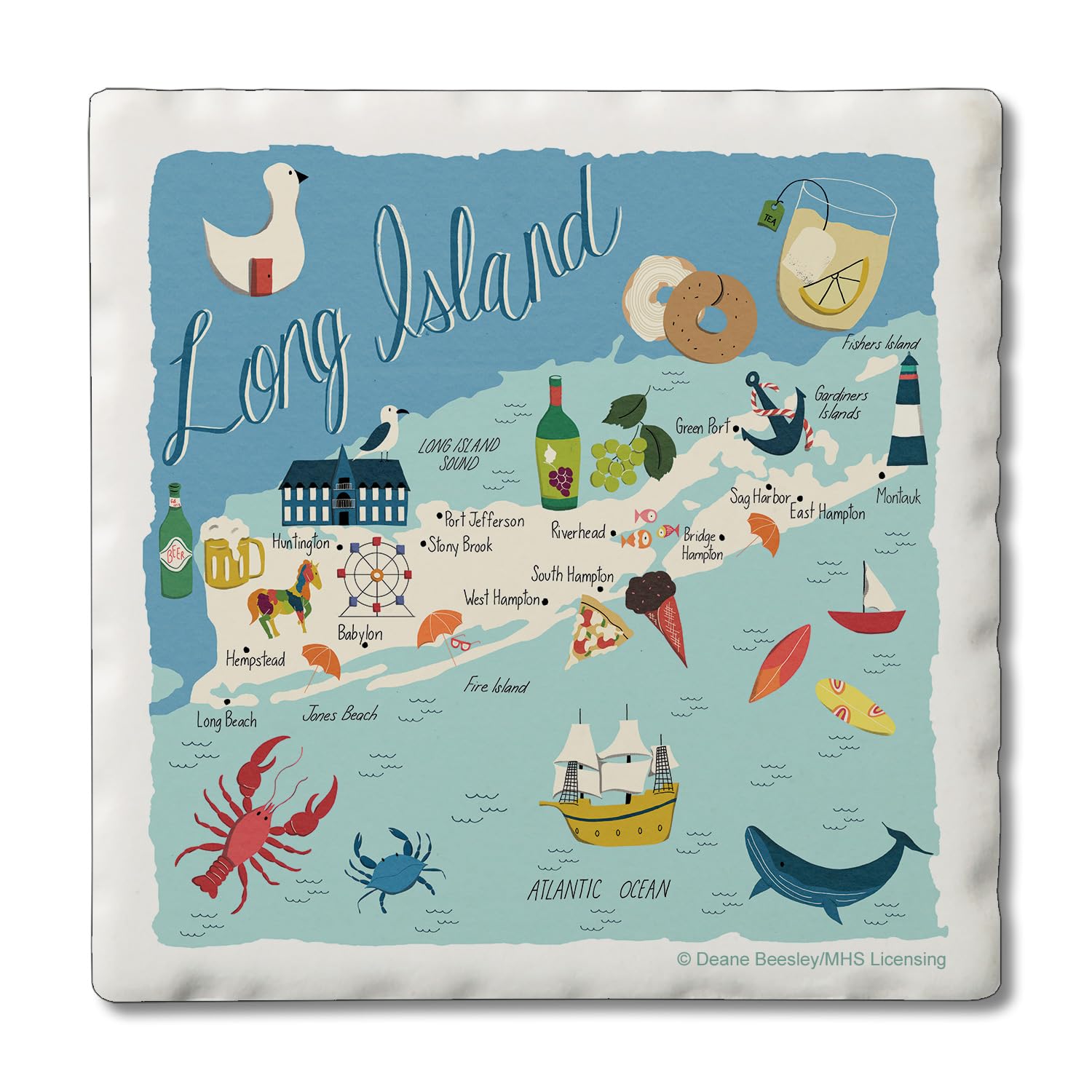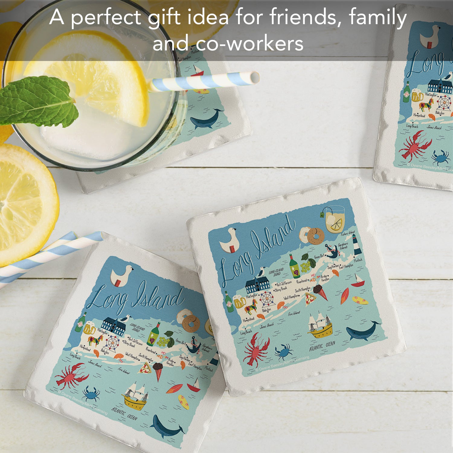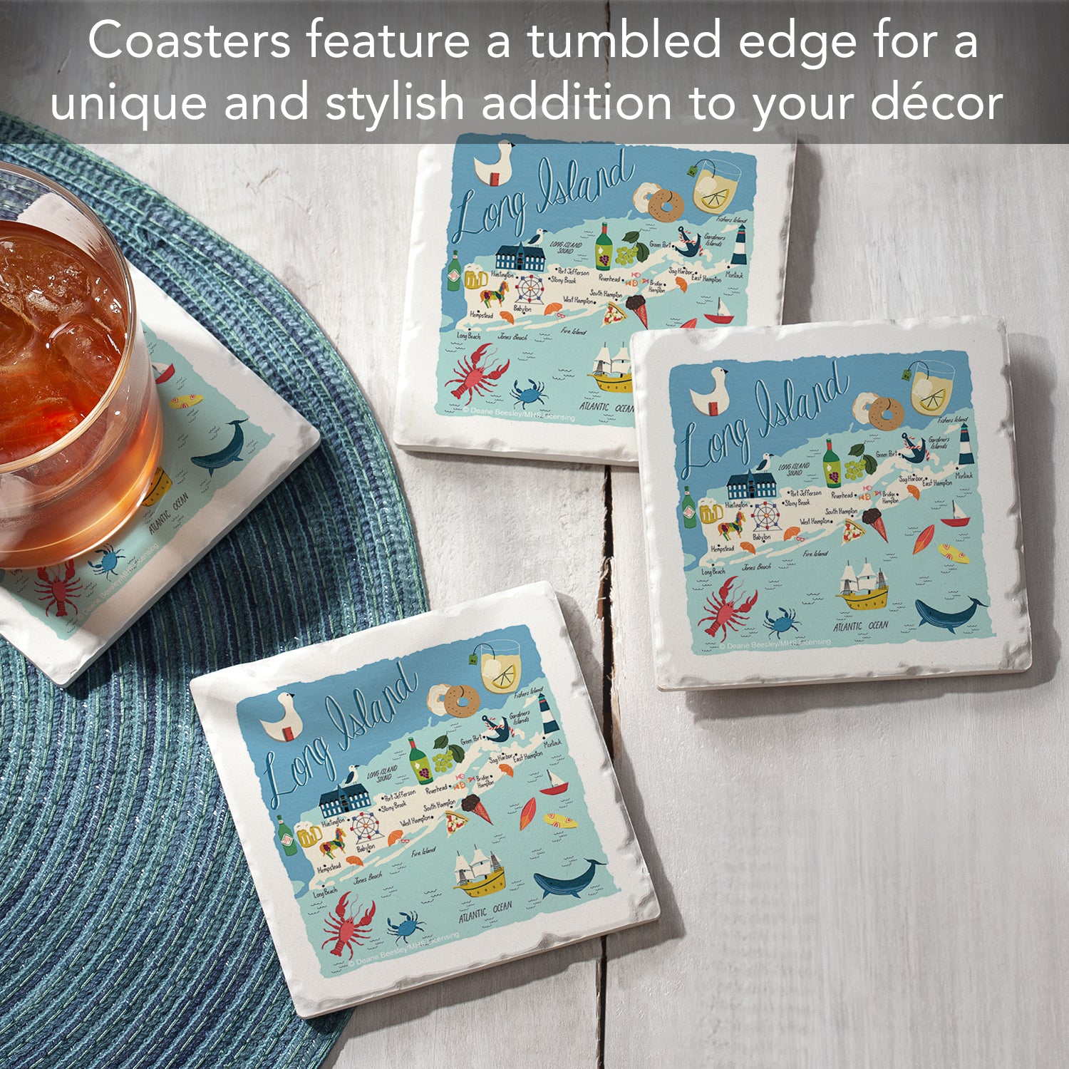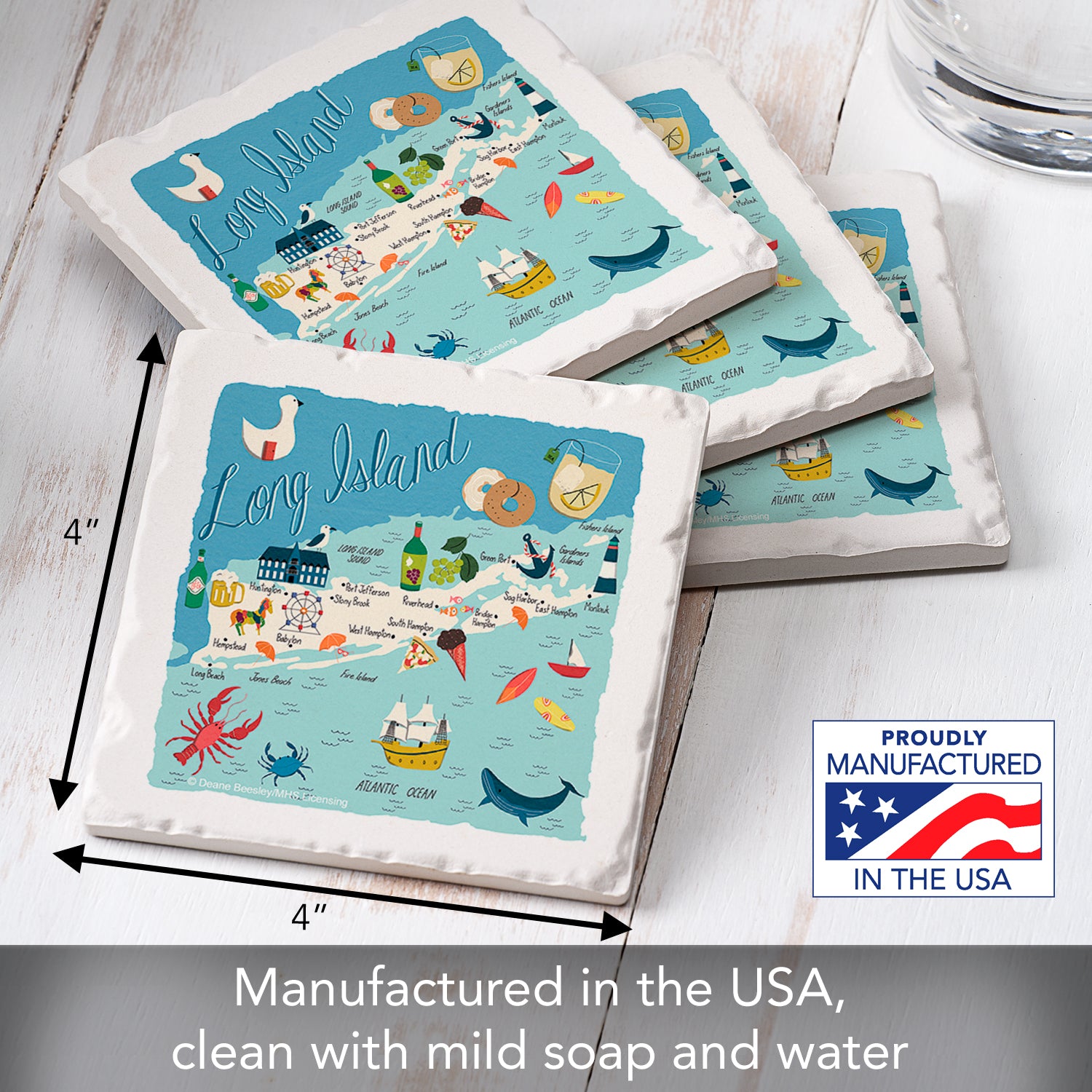 Thirstystone Long Island Home State 4 Pack Tumbled Tile Stone Coasters 4" Square Manufactured in the USA