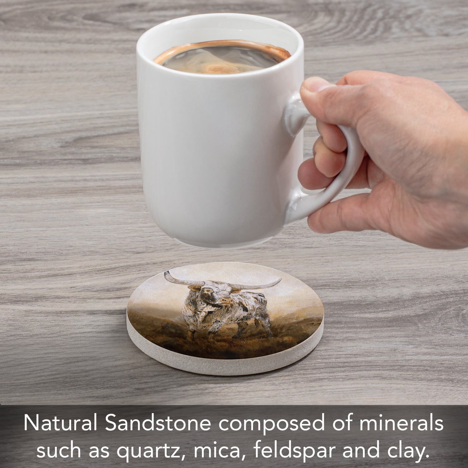 Longhorn Single Natural Sandstone Coaster 4" Round Create Your Own Set
