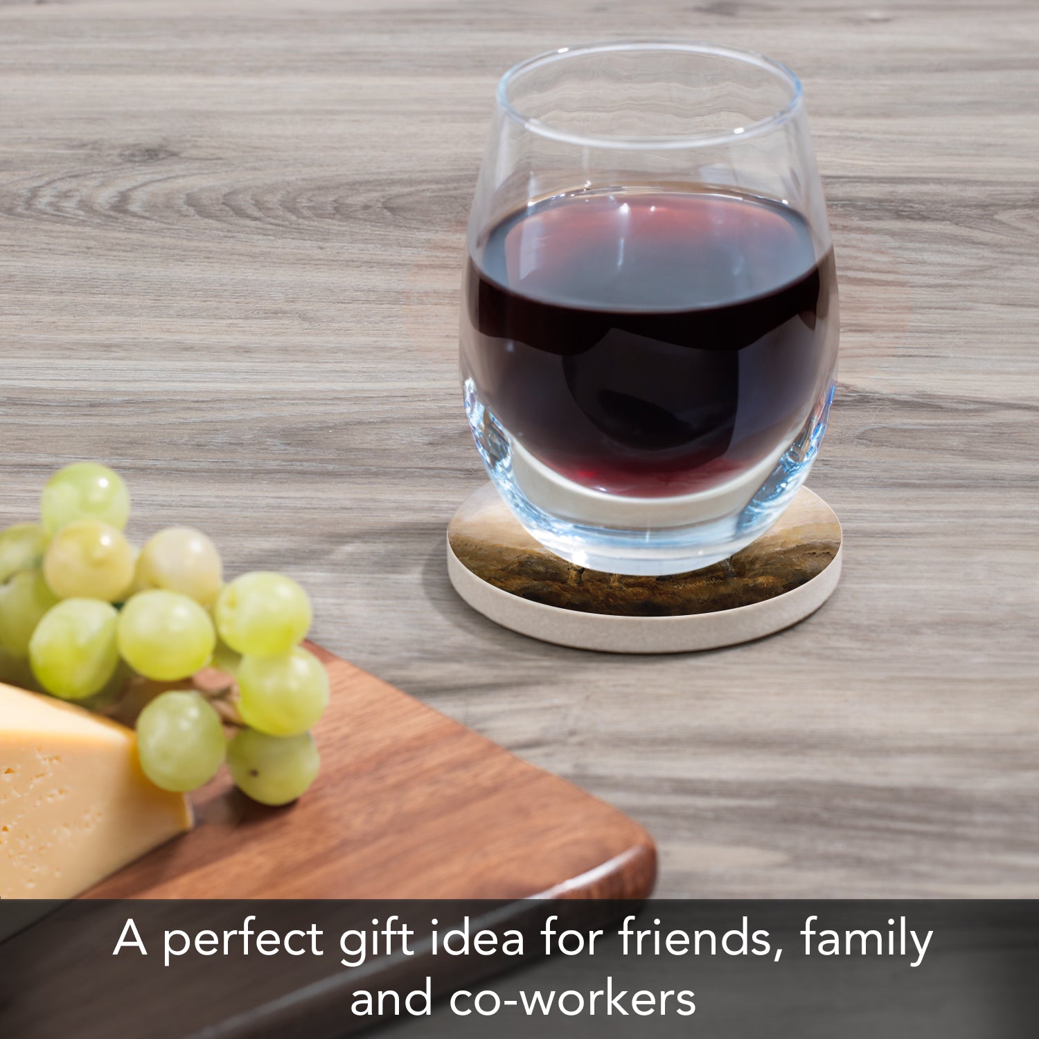 FUNCTIONAL ART-Beautiful artistic design allows the Coaster to remain displayed even when not in use. Each Coaster measures 4” x 4” x .31”. Sized to fit larger Mugs & Glasses.