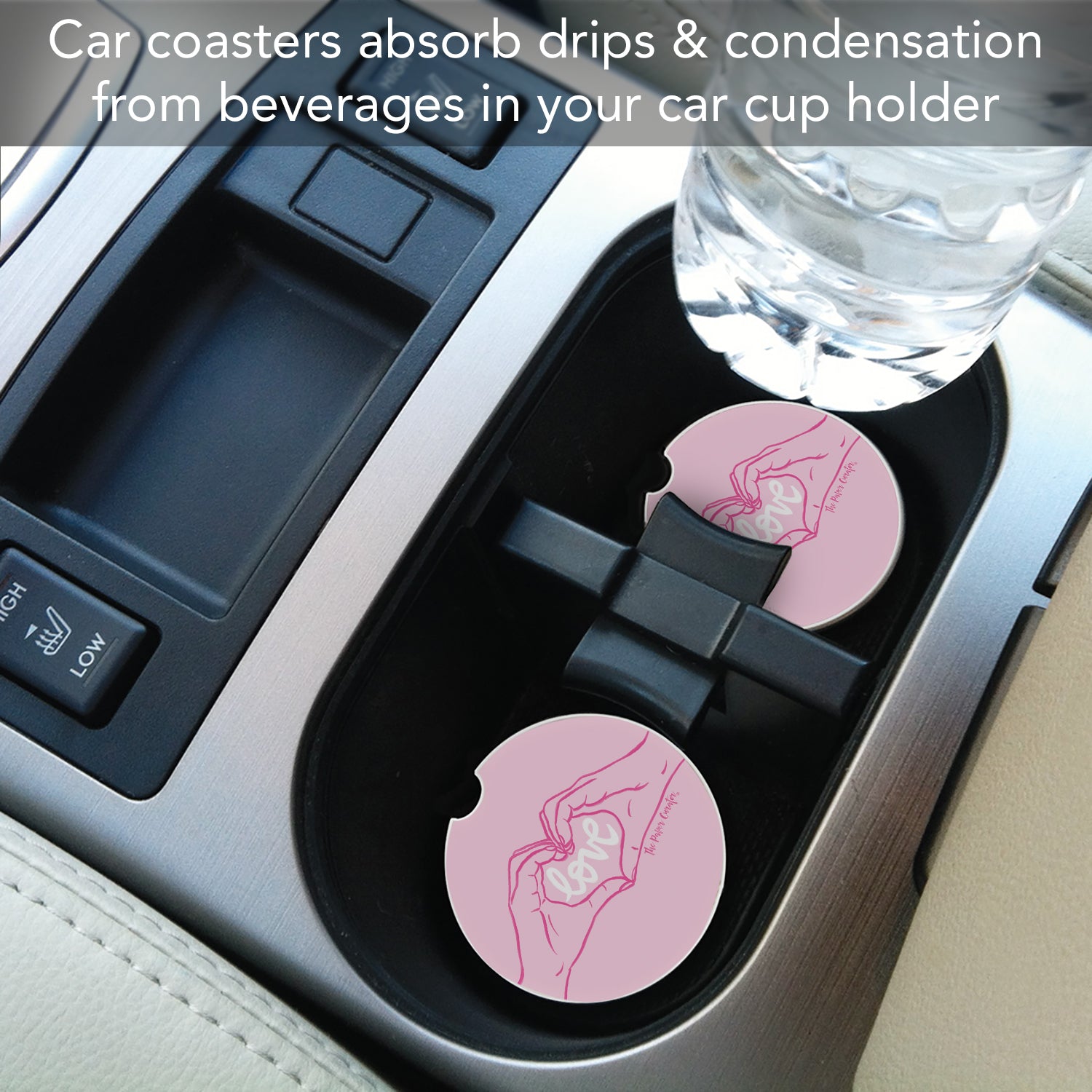 ABSORBENT STONE-Car Coaster is constructed of natural absorbent stone that absorbs drips and condensation from beverages in your vehicle’s cup holder.