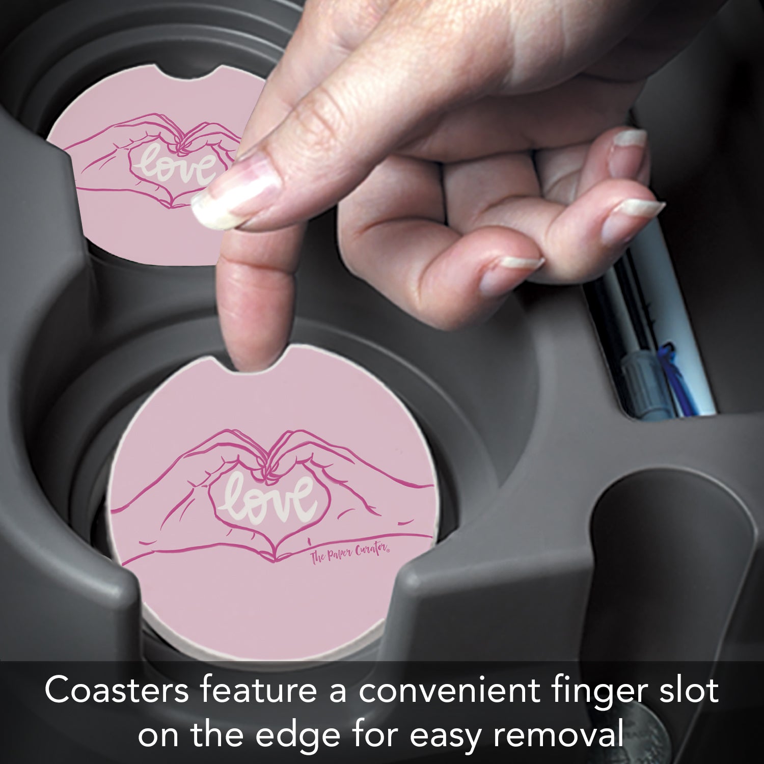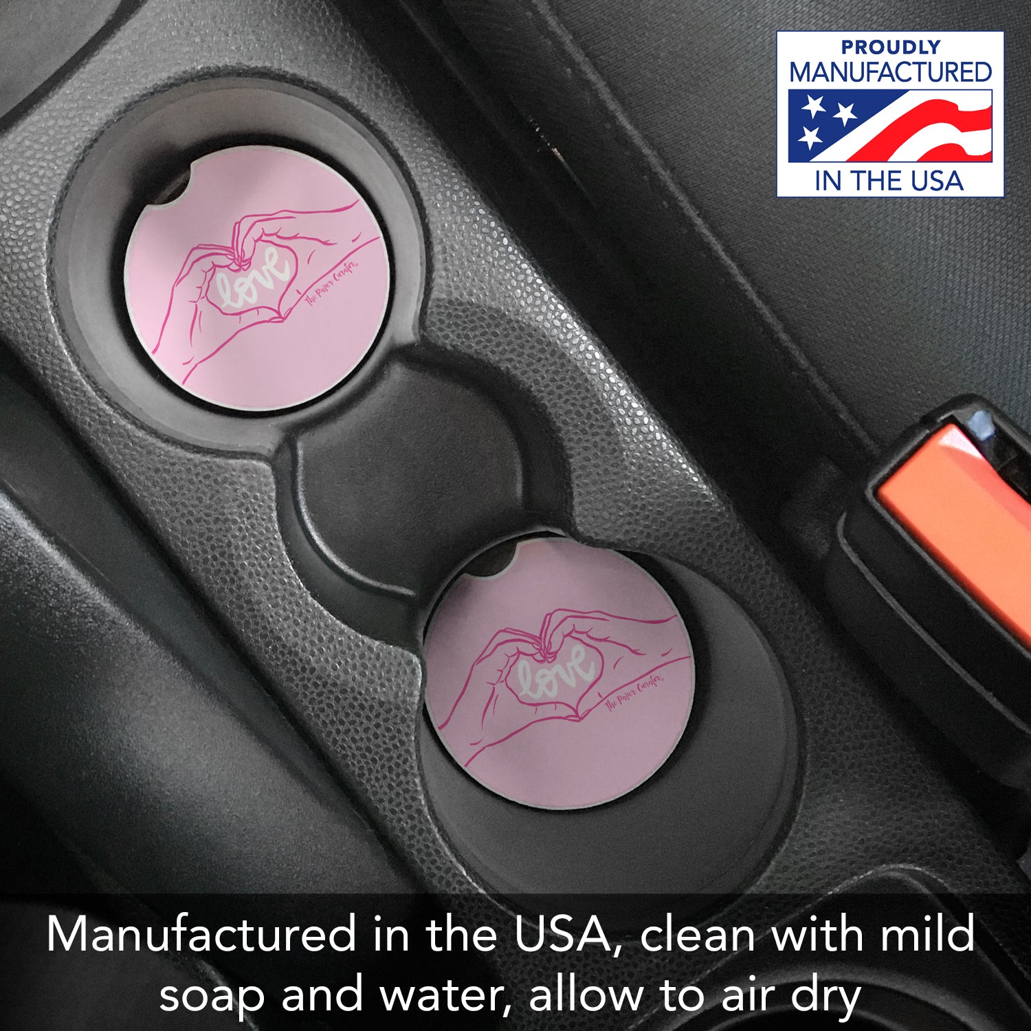Thirstystone Love Hands Single Absorbent Stone Car Coaster 2.6” Diameter Manufactured in the USA