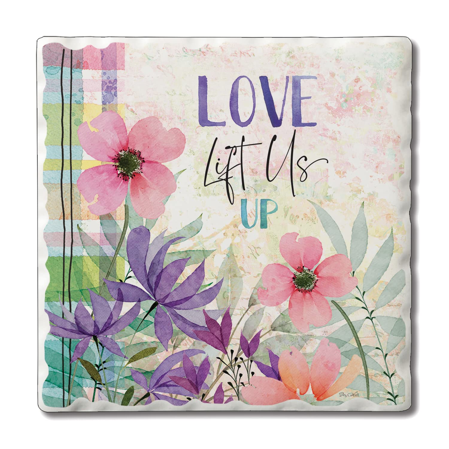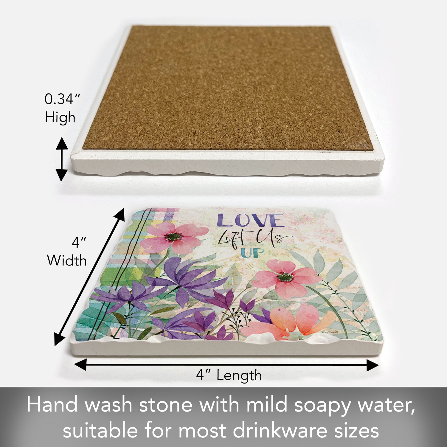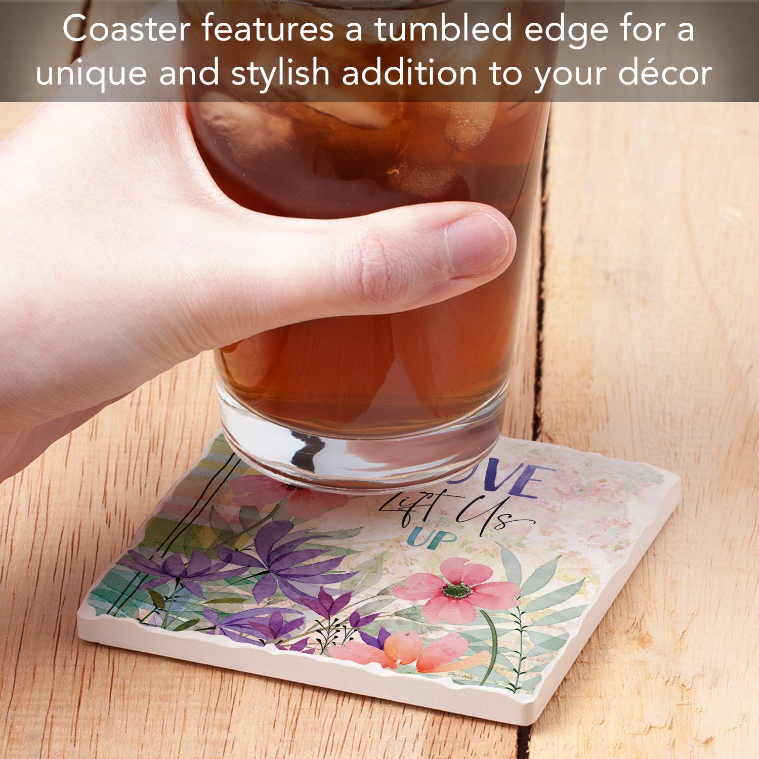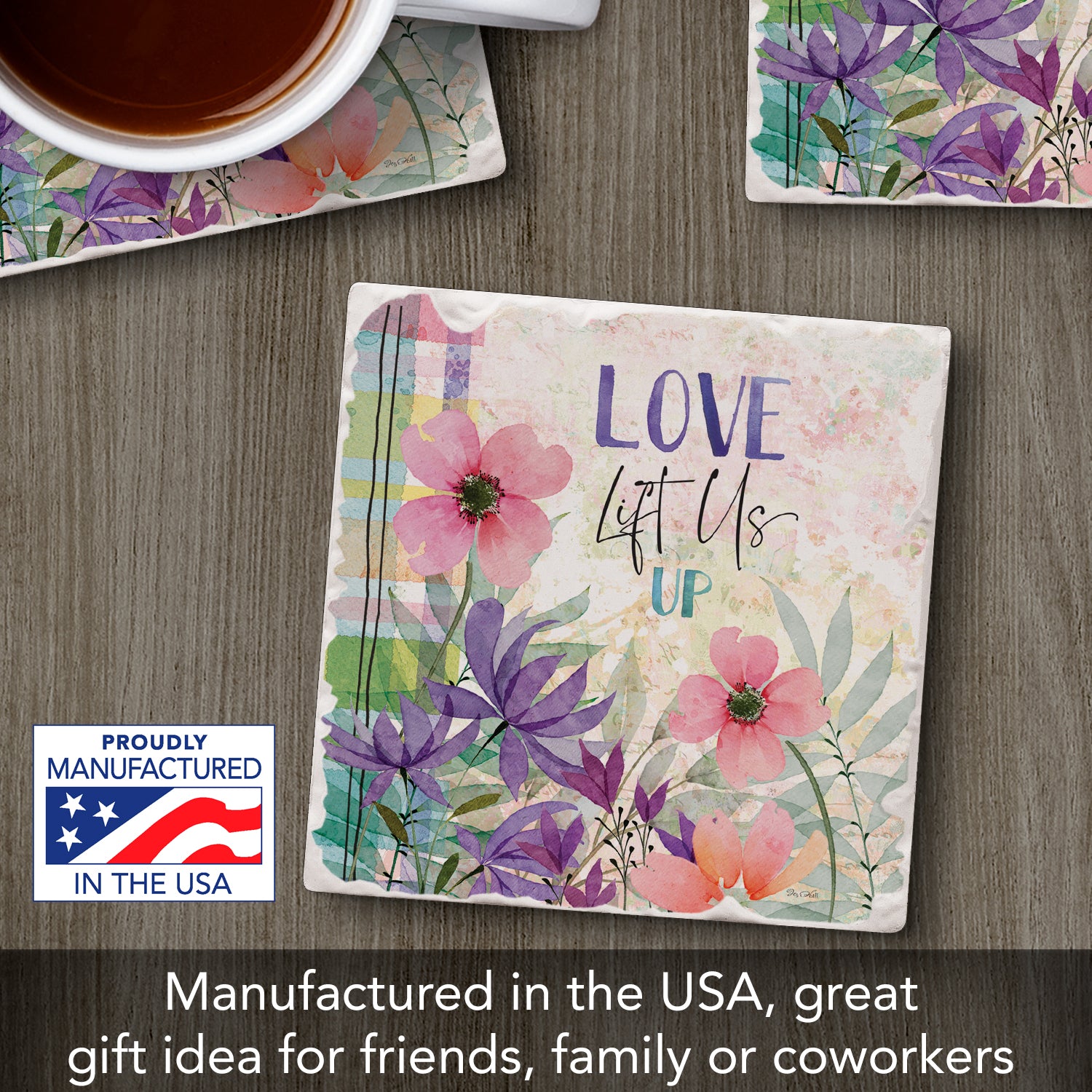 Thirstystone Love Lift Us Single Tumbled Tile Stone Coaster with Protective Cork Backing Manufactured in The USA 4" Square