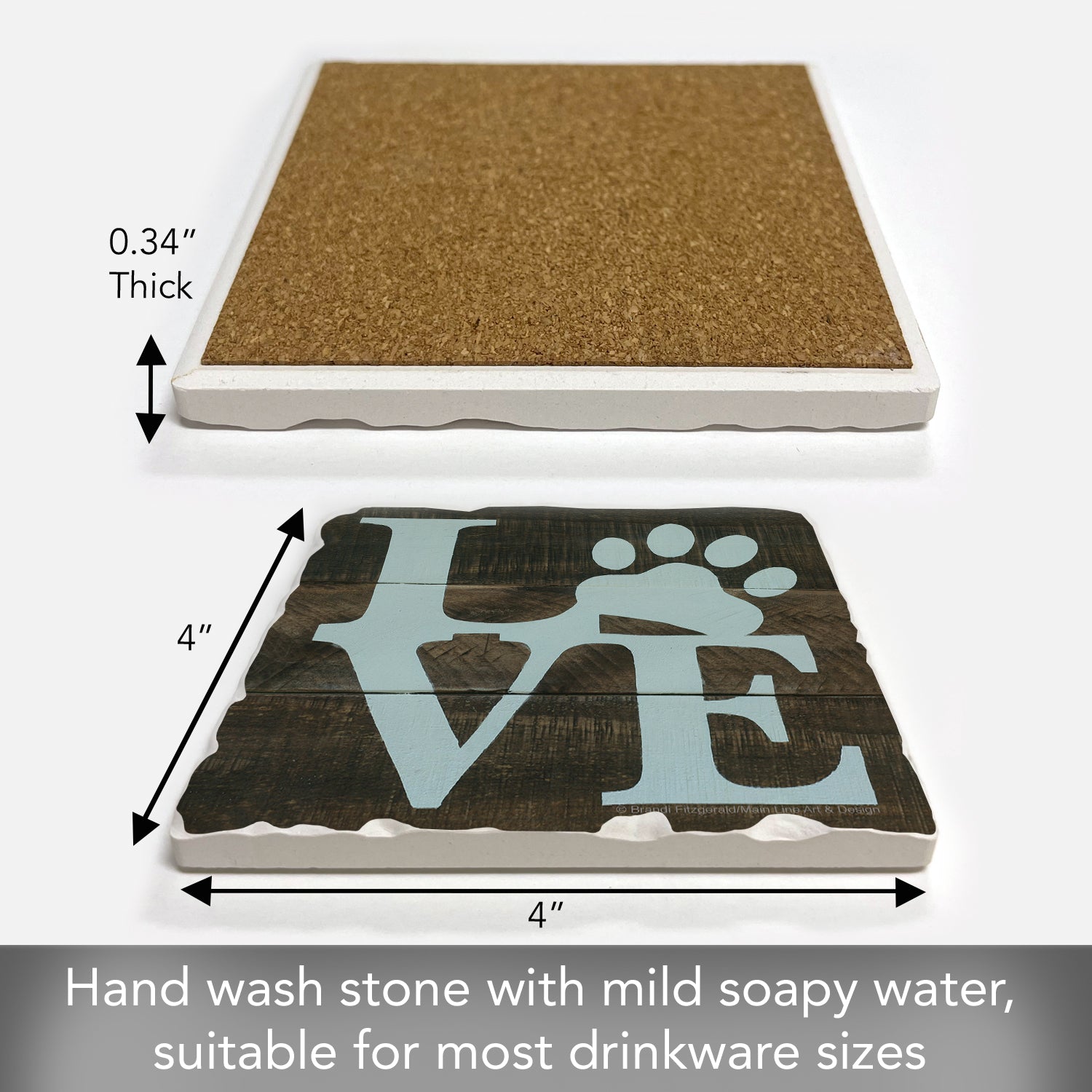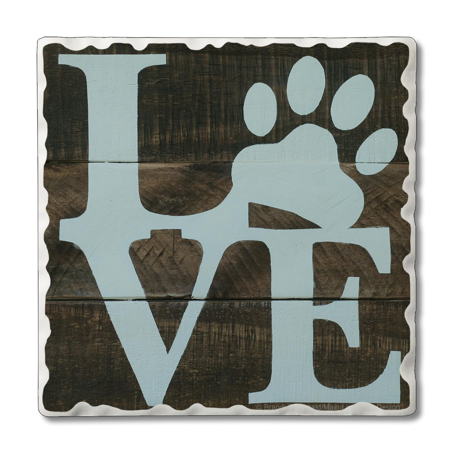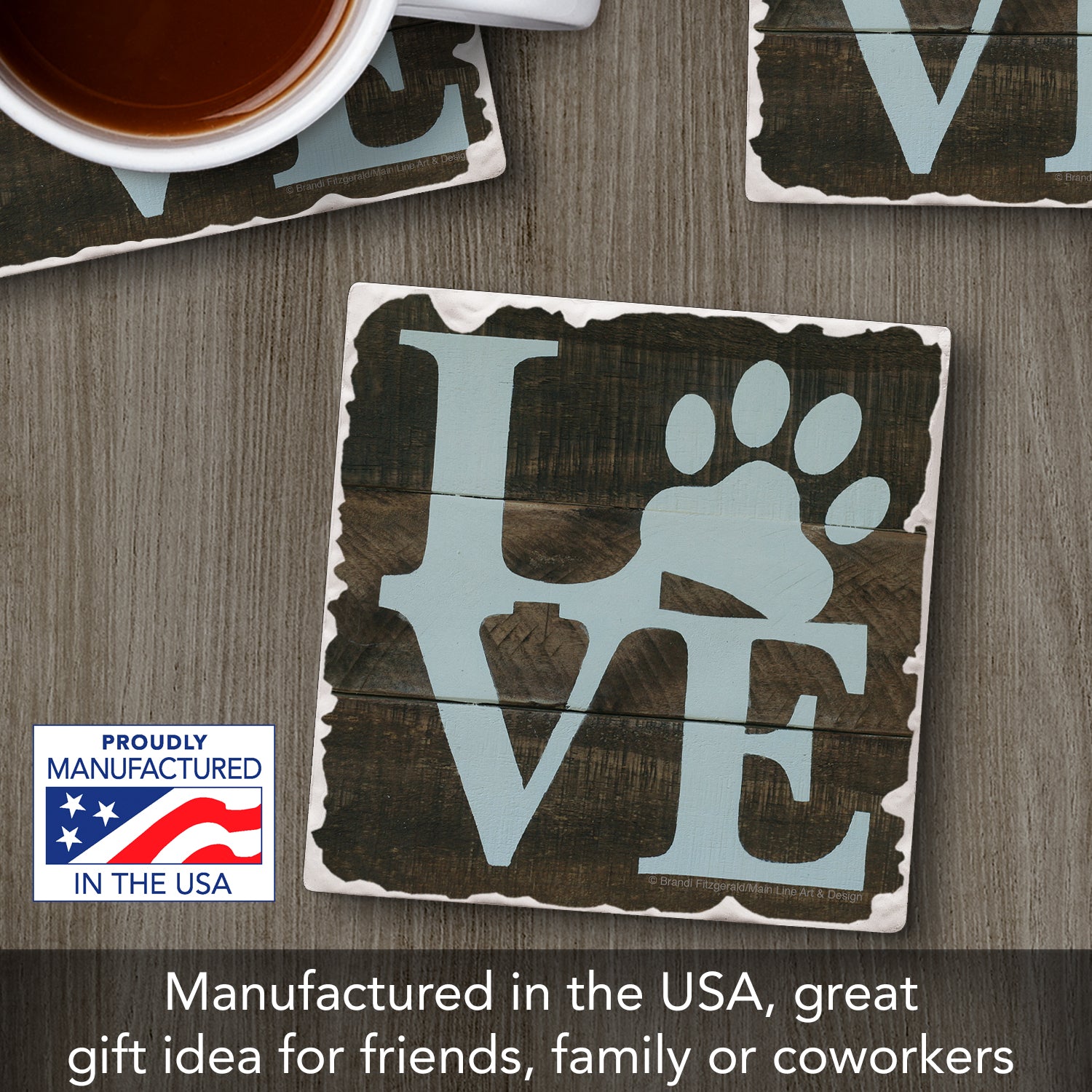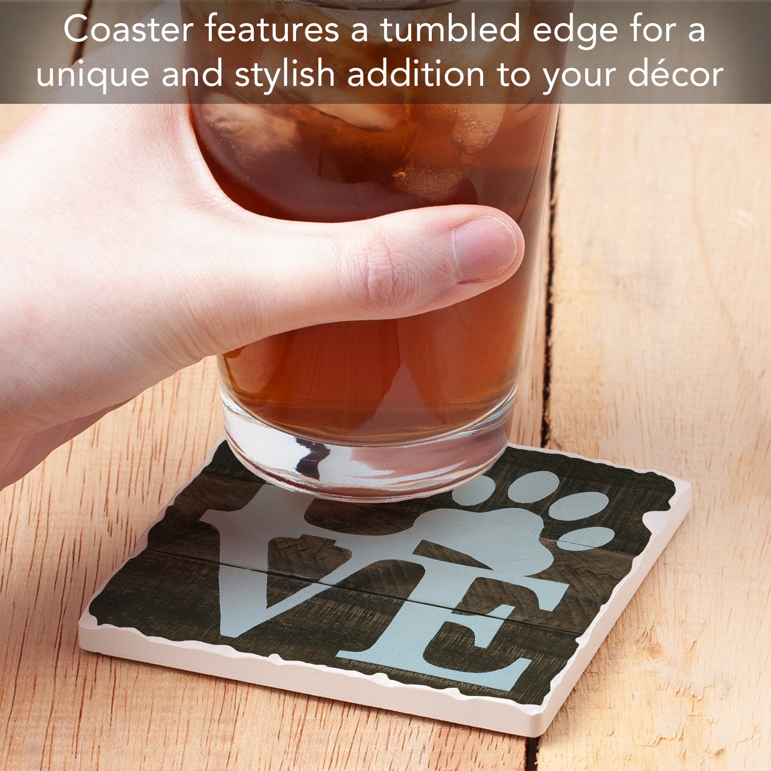 Thirstystone Love Paw Print Single Tumbled Tile Stone Coaster with Protective Cork Backing Manufactured in The USA 4" Square, Artistic, Easily Wipes Clean