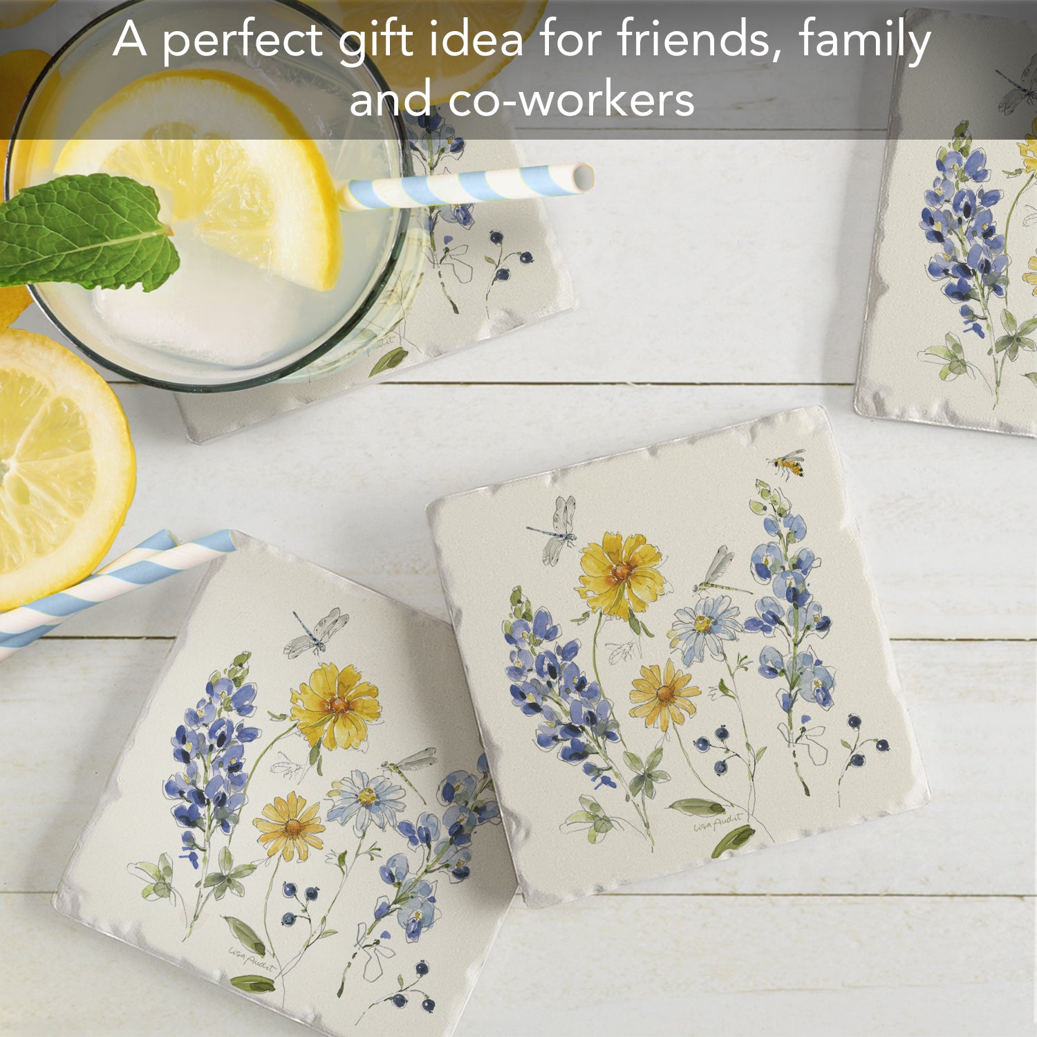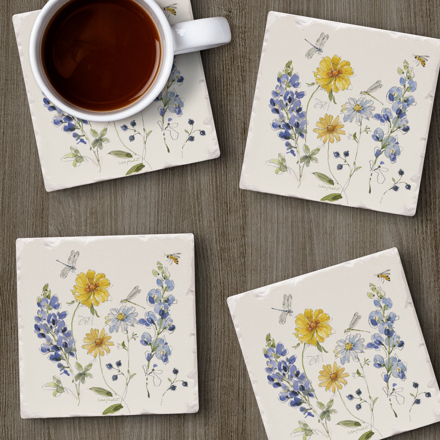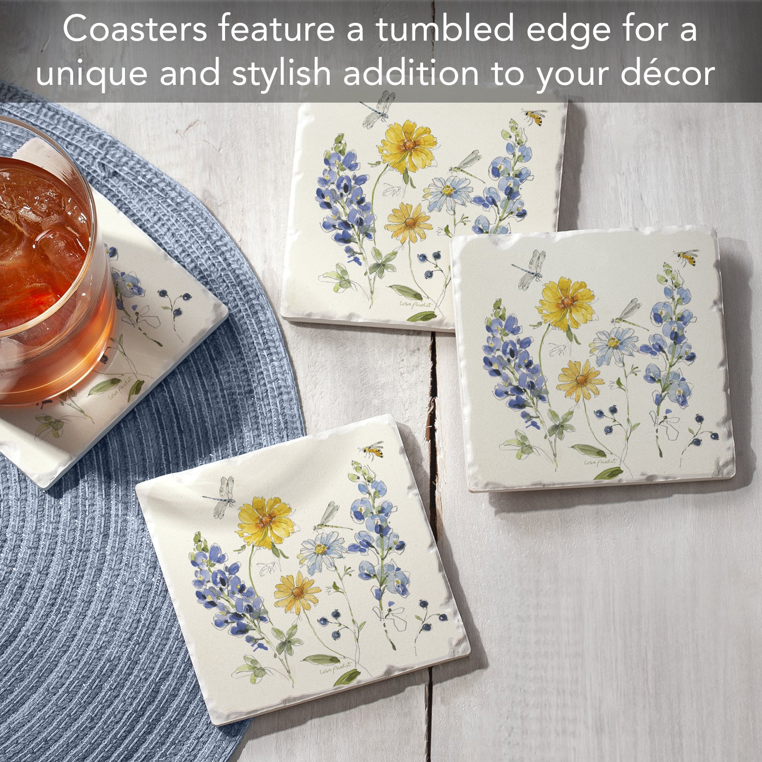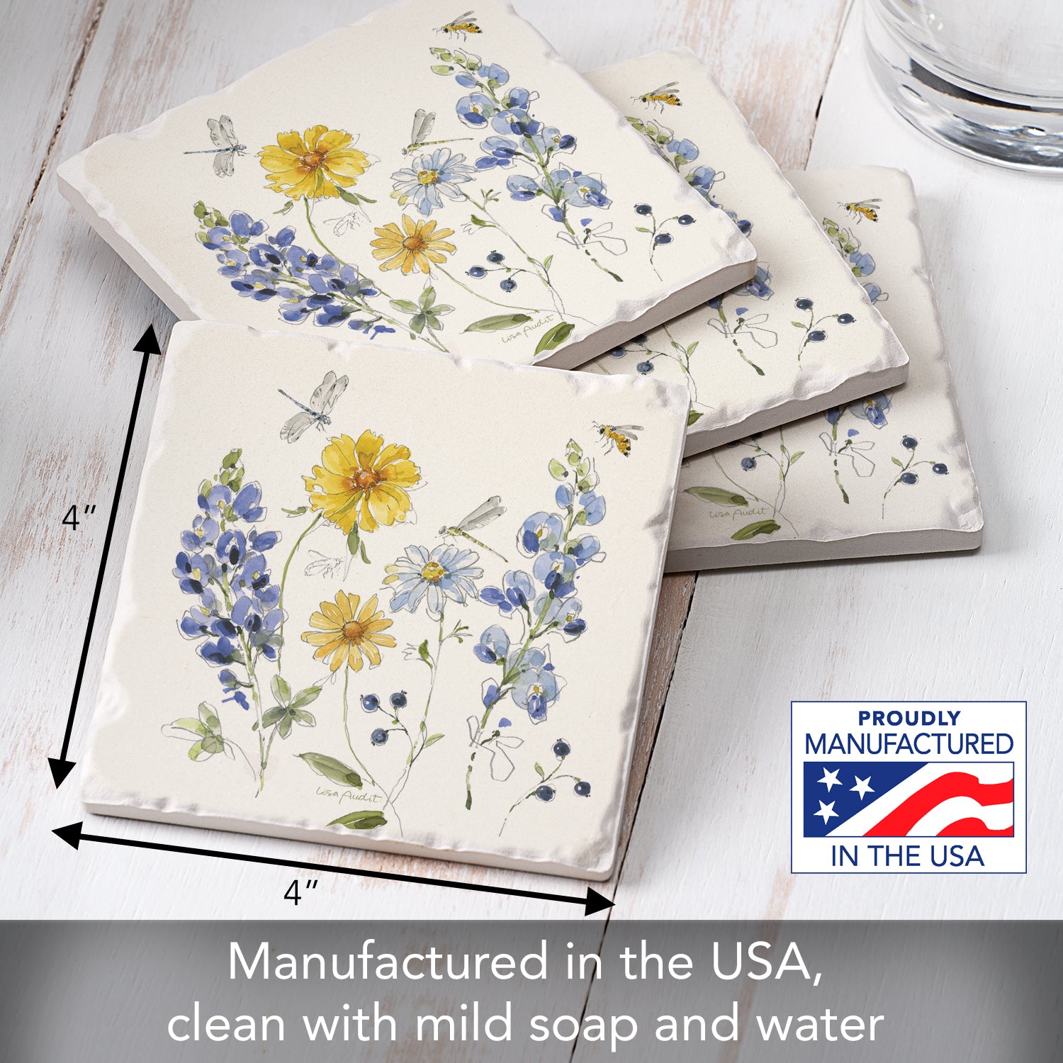 Thirstystone Lovely Blues 4 Pack Tumbled Tile Stone Coasters 4" Square Manufactured in the USA