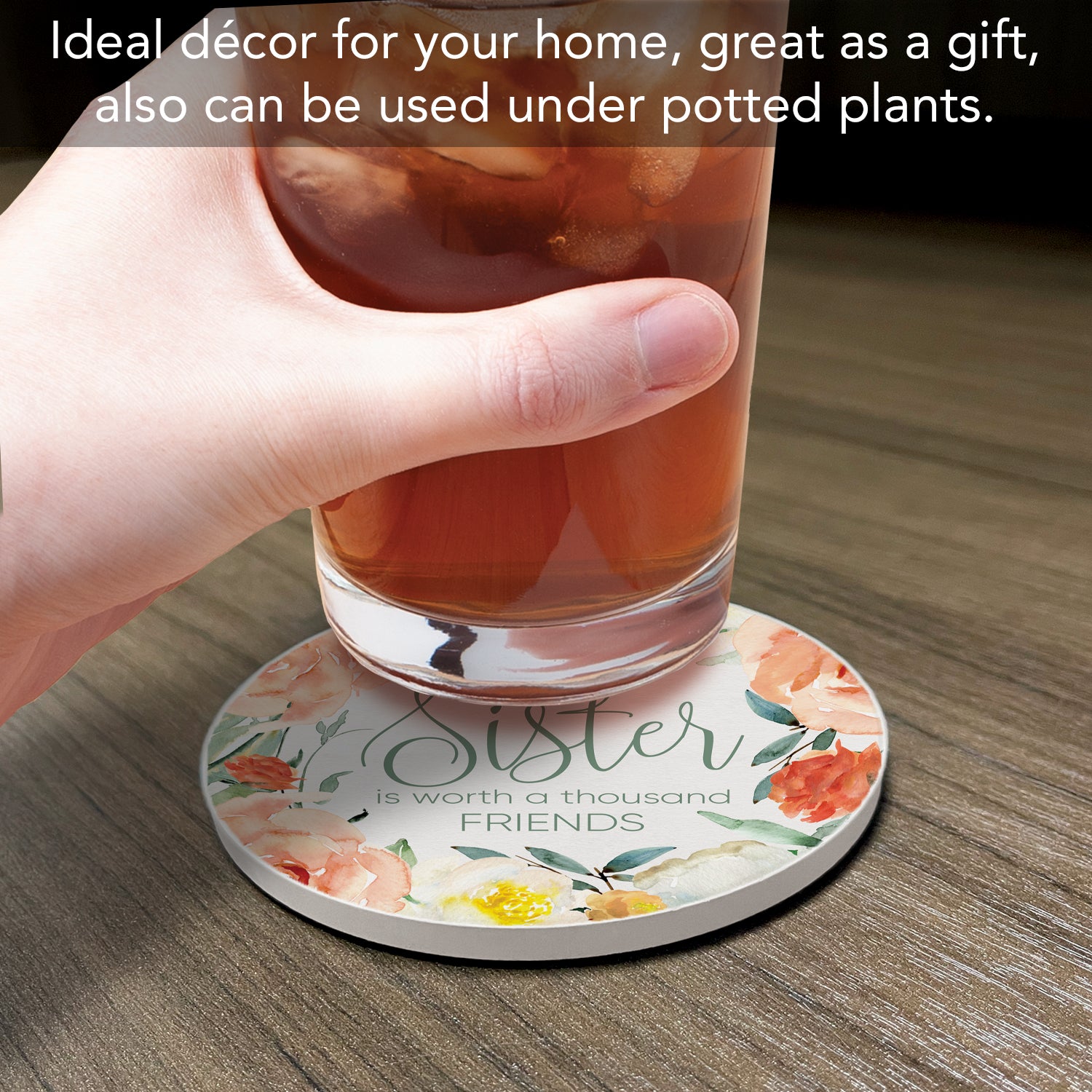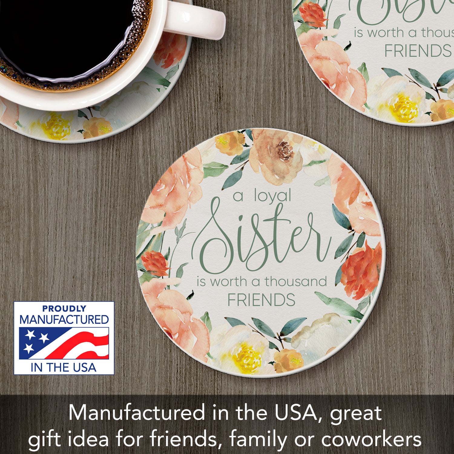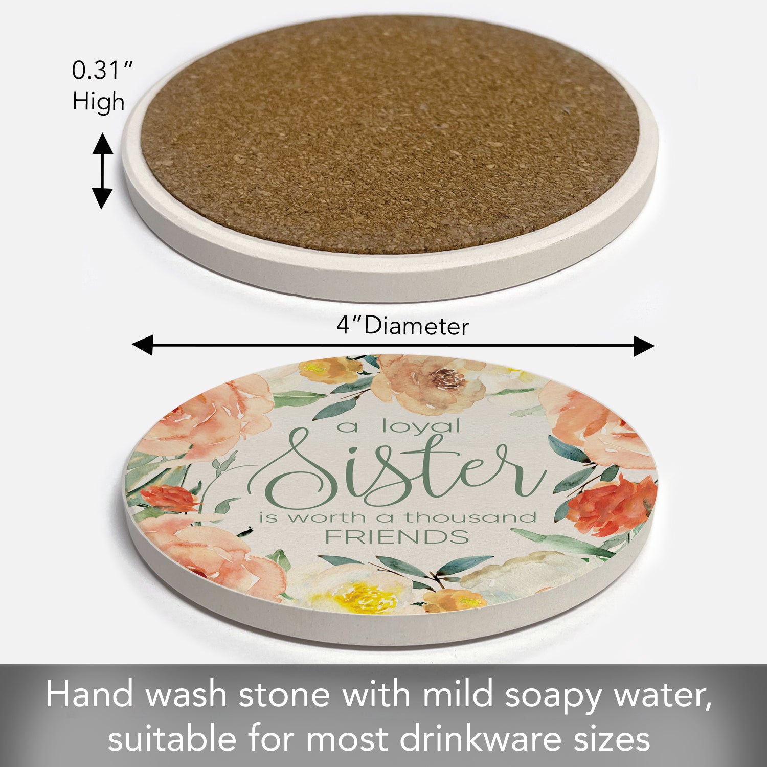 Thirstystone Loyal Sister Single Round Absorbent Stone Coaster with Protective Cork Backing Manufactured in The USA 4" Diameter