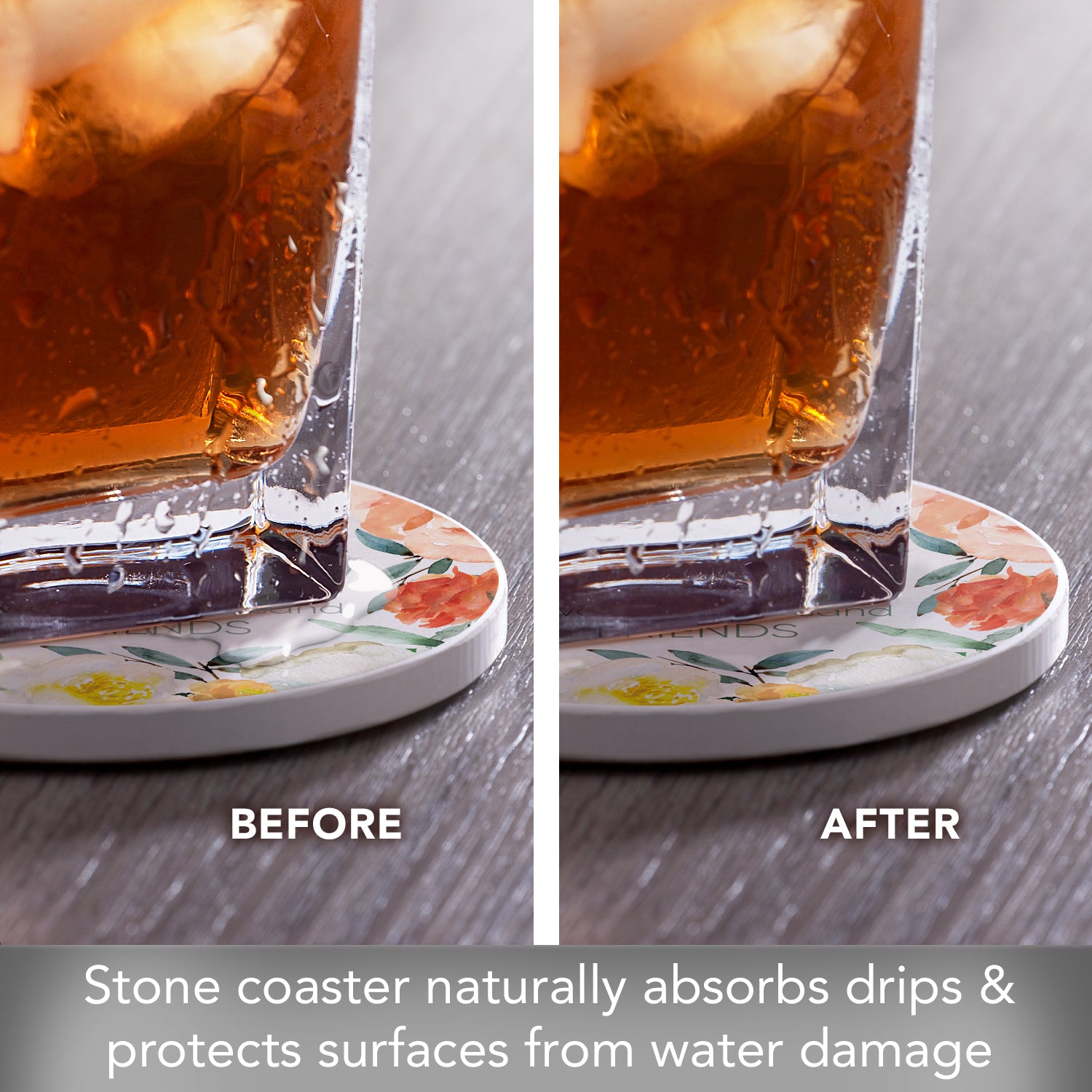 ABSORBENT STONE-Coaster is constructed from absorbent stone to absorb excess condensation from beverages. This is a 1 Coaster Pack to allow you to choose from our other coordinating Coaster Designs and complete your own personal set.