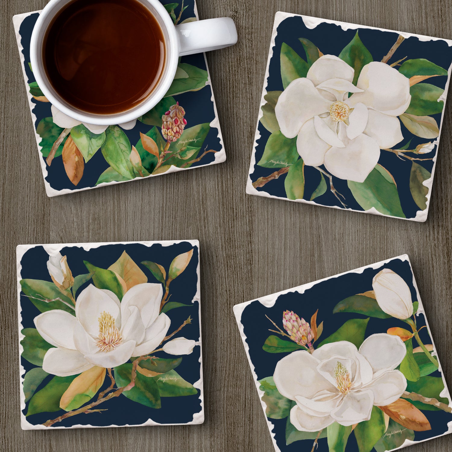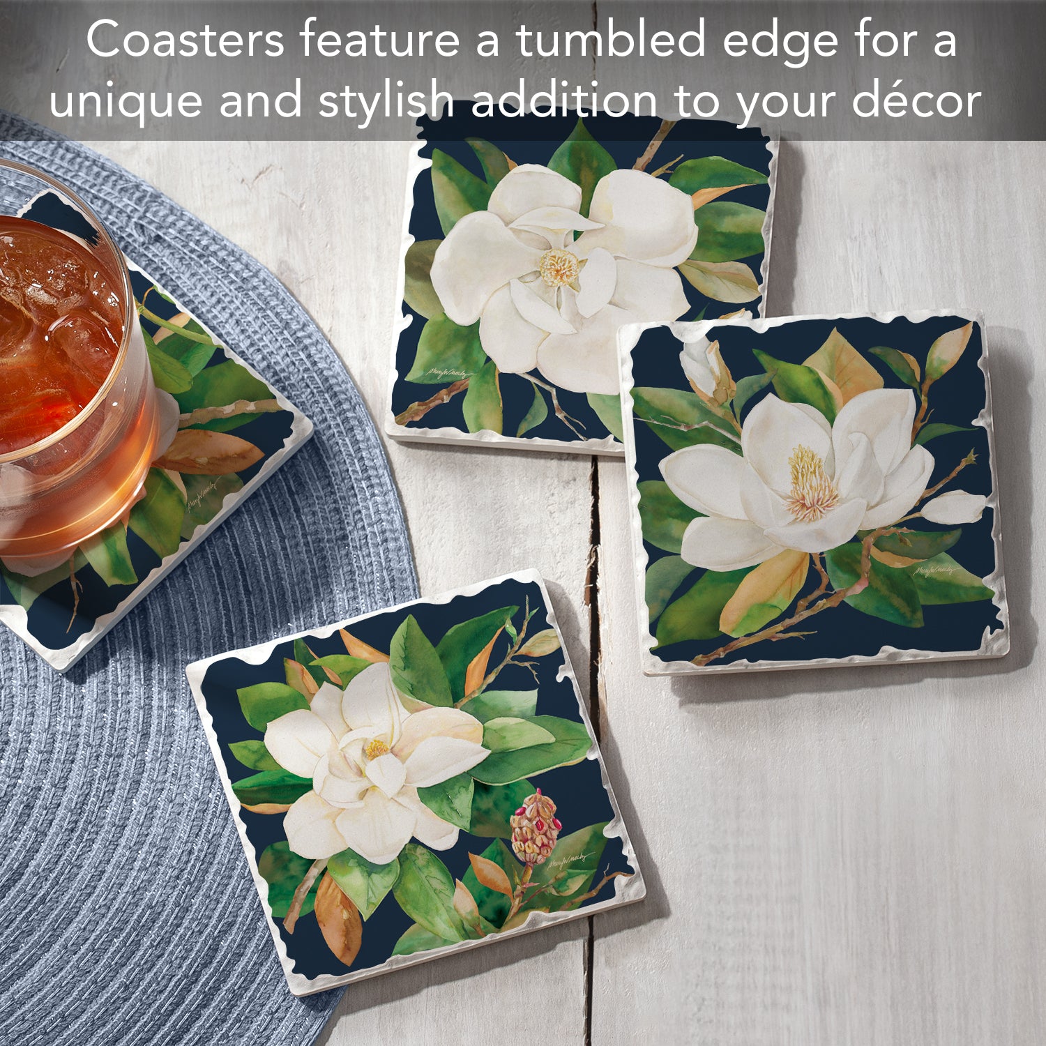 Thirstystone Magnolia Motifs 4 Pack Assorted Tumbled Tile Stone Coasters 4" Square