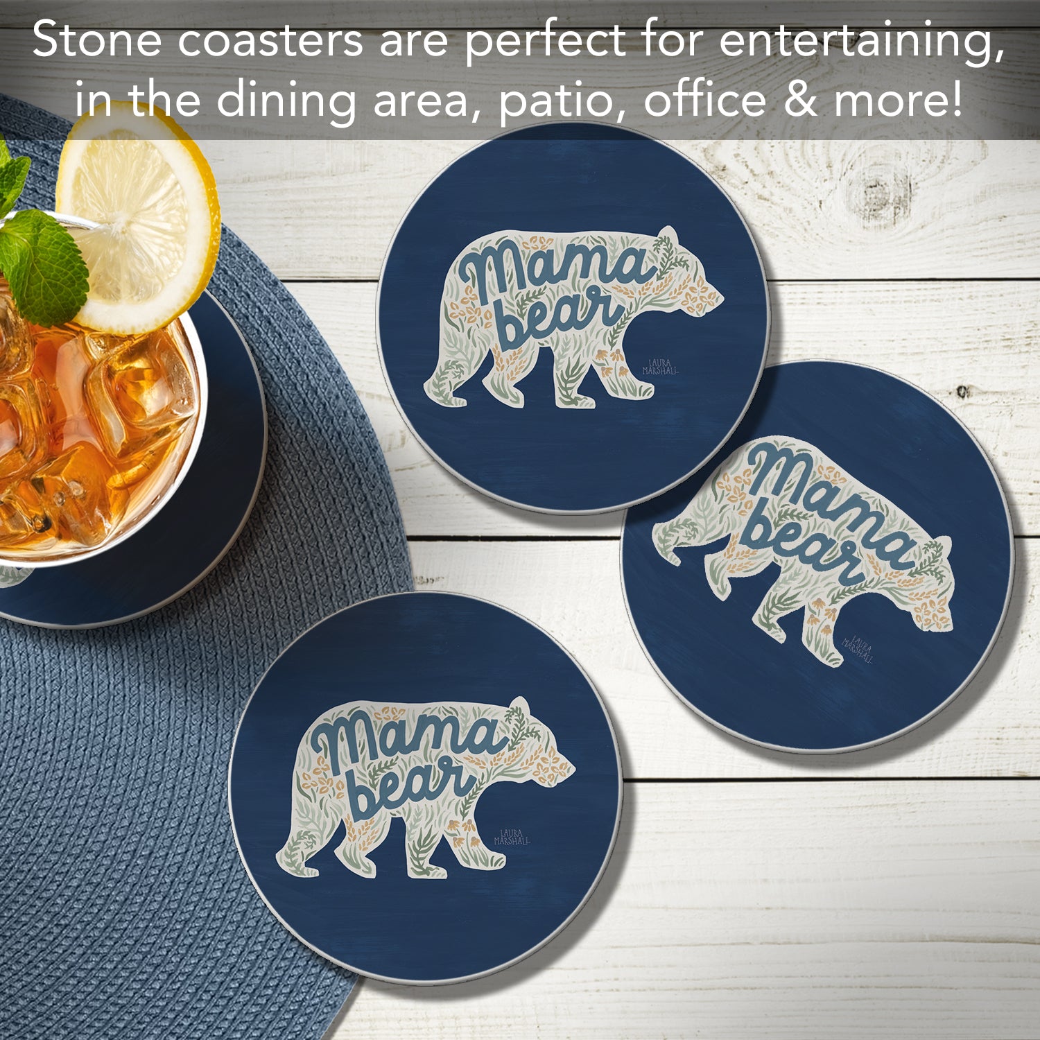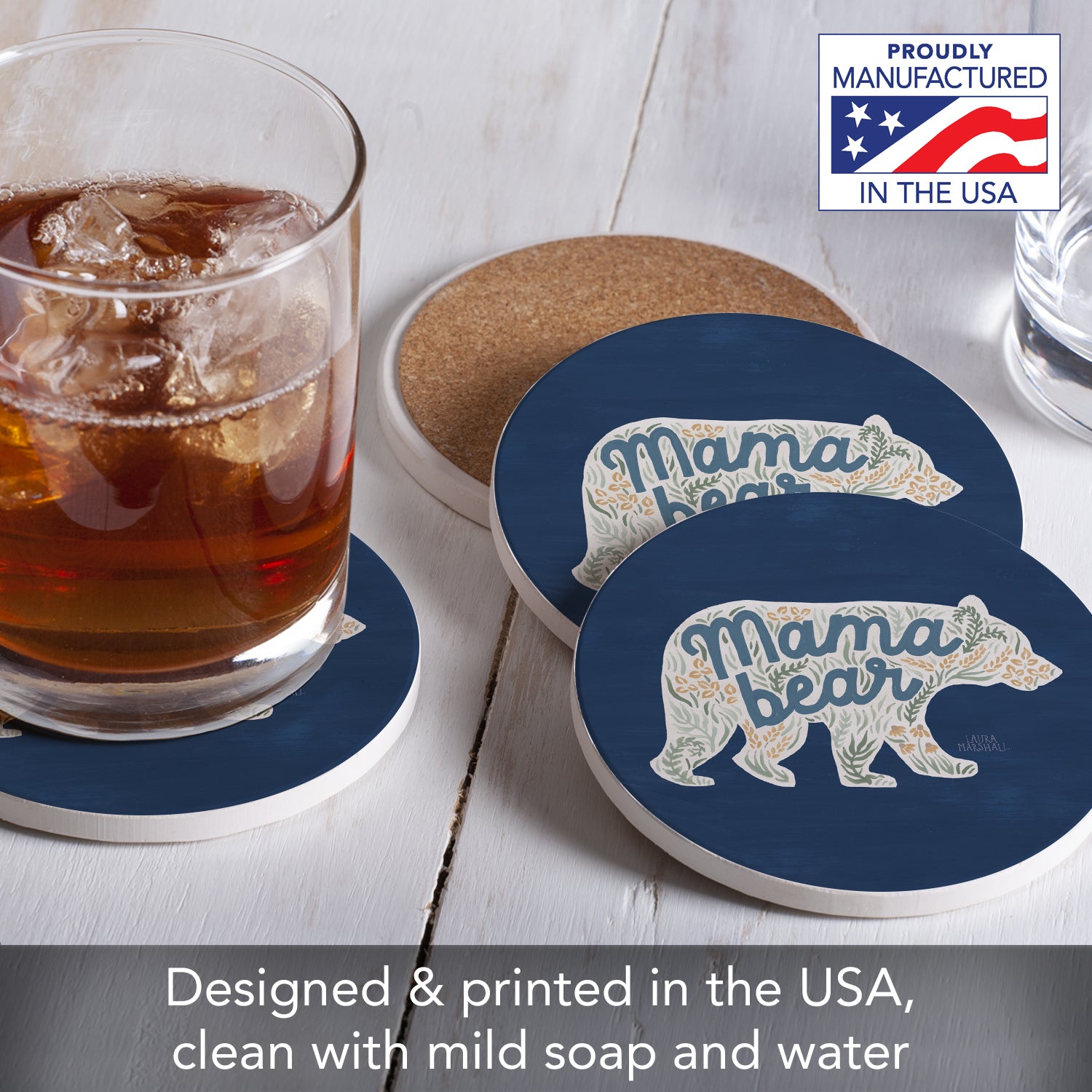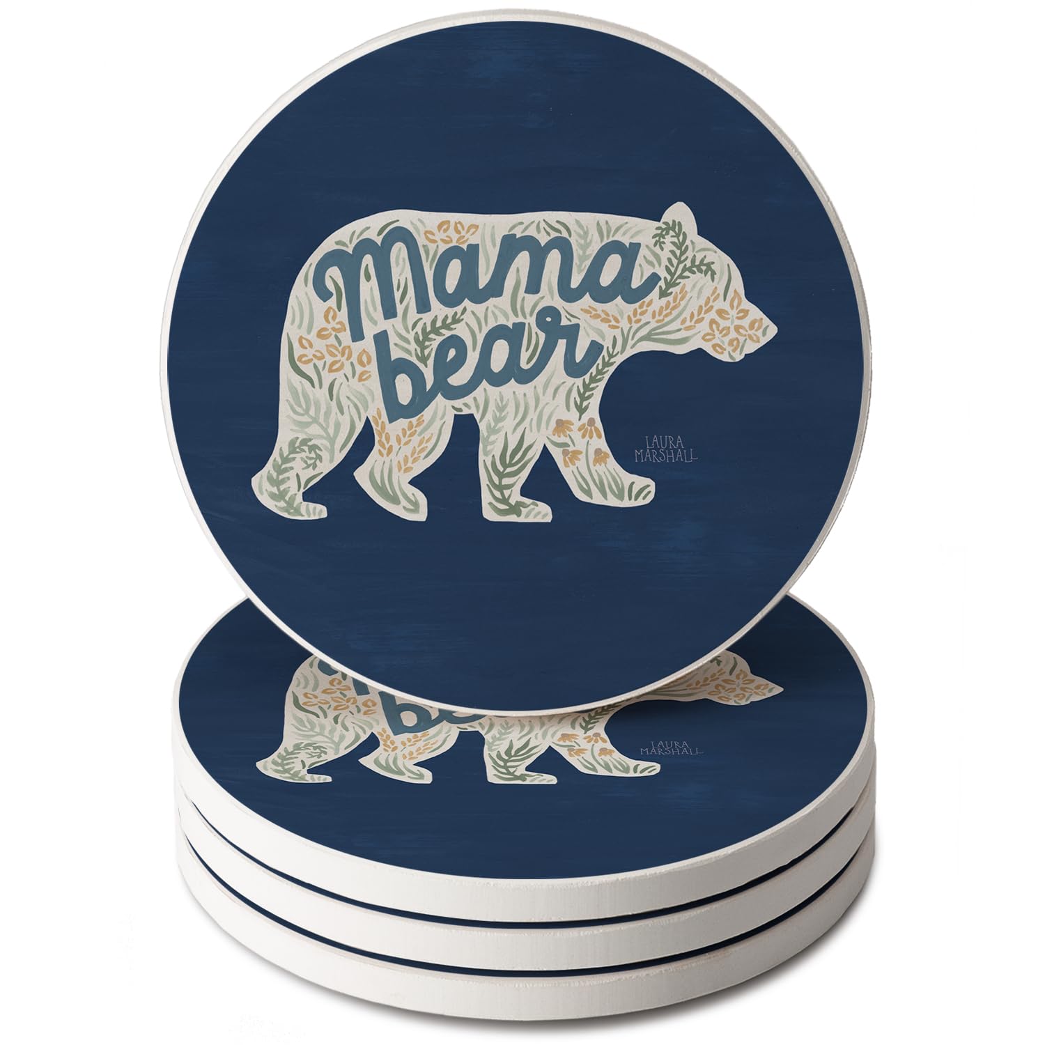 Thirstystone Mama Bear 4 Pack Round Absorbent Stone Coasters 4" Diameter