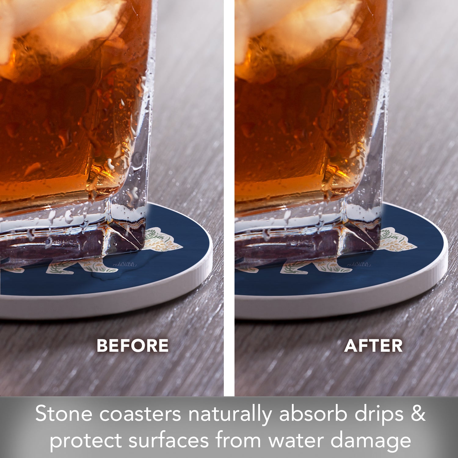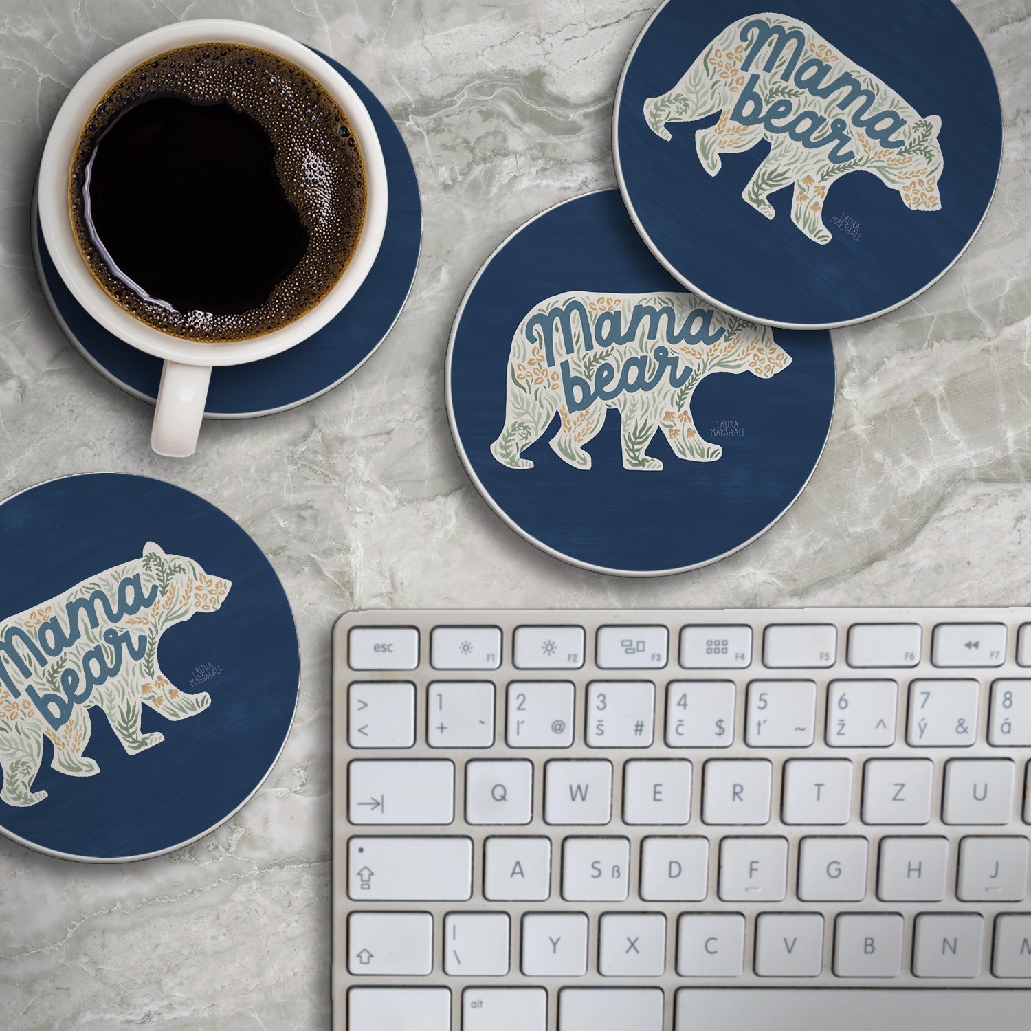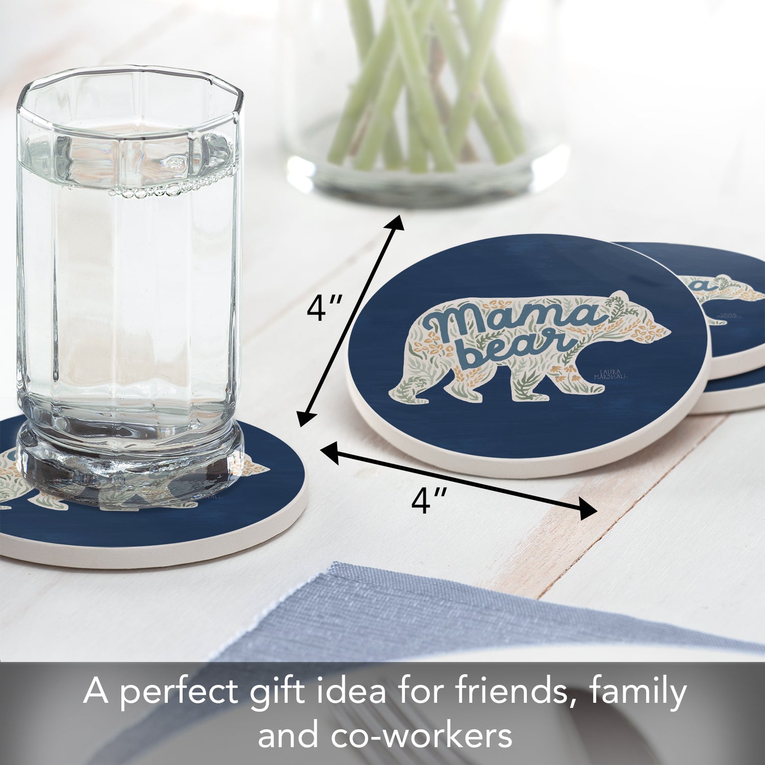 Thirstystone Mama Bear 4 Pack Round Absorbent Stone Coasters 4" Diameter