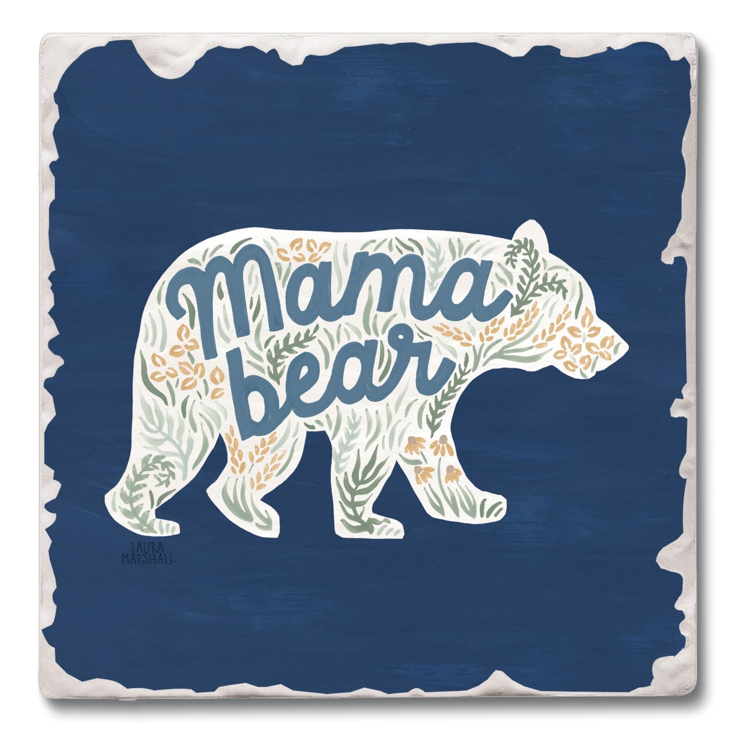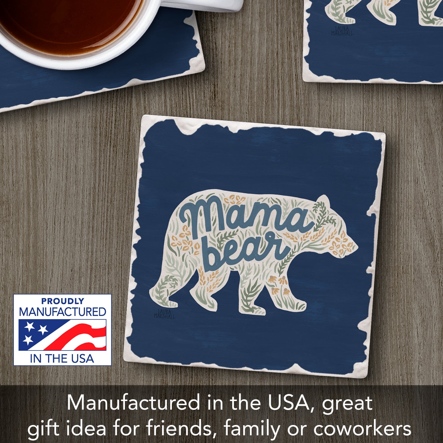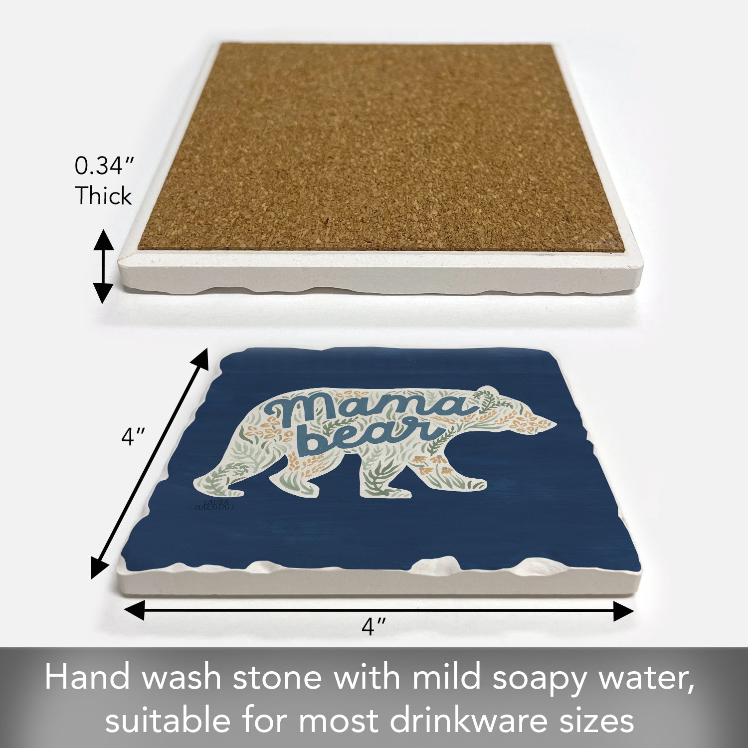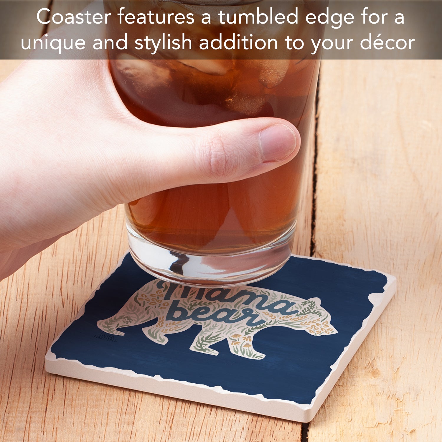 Thirstystone Mama Bear Single Tumbled Tile Stone Coaster with Protective Cork Backing Manufactured in The USA 4" Square