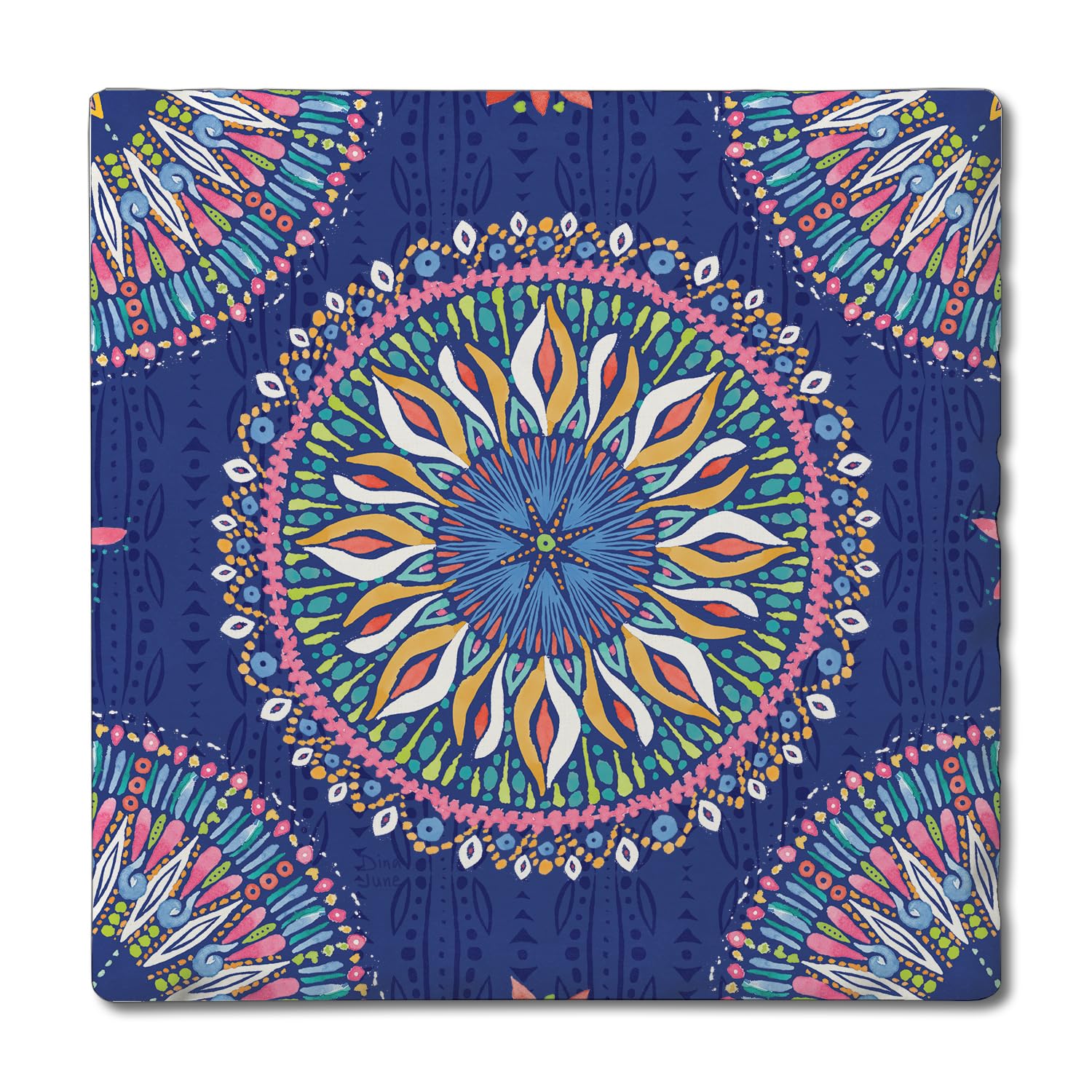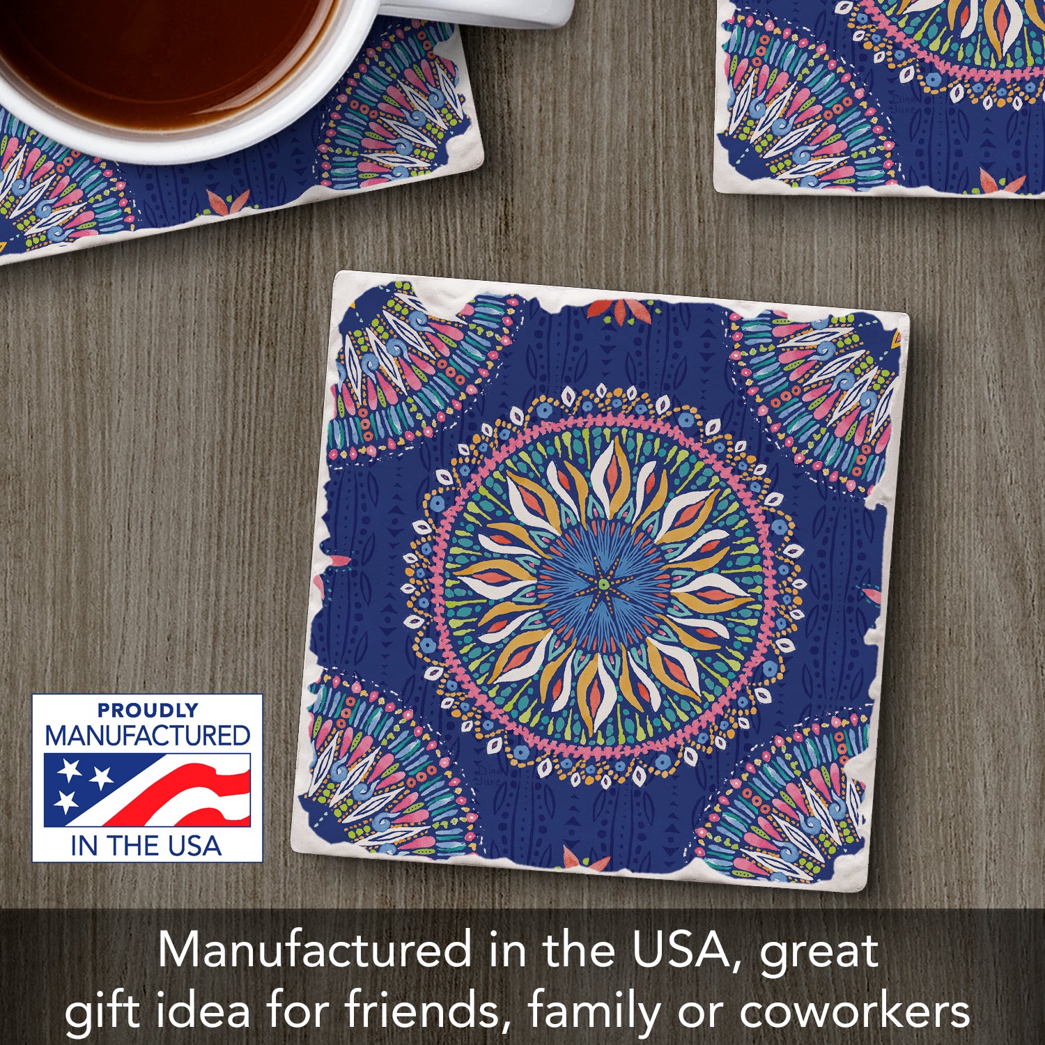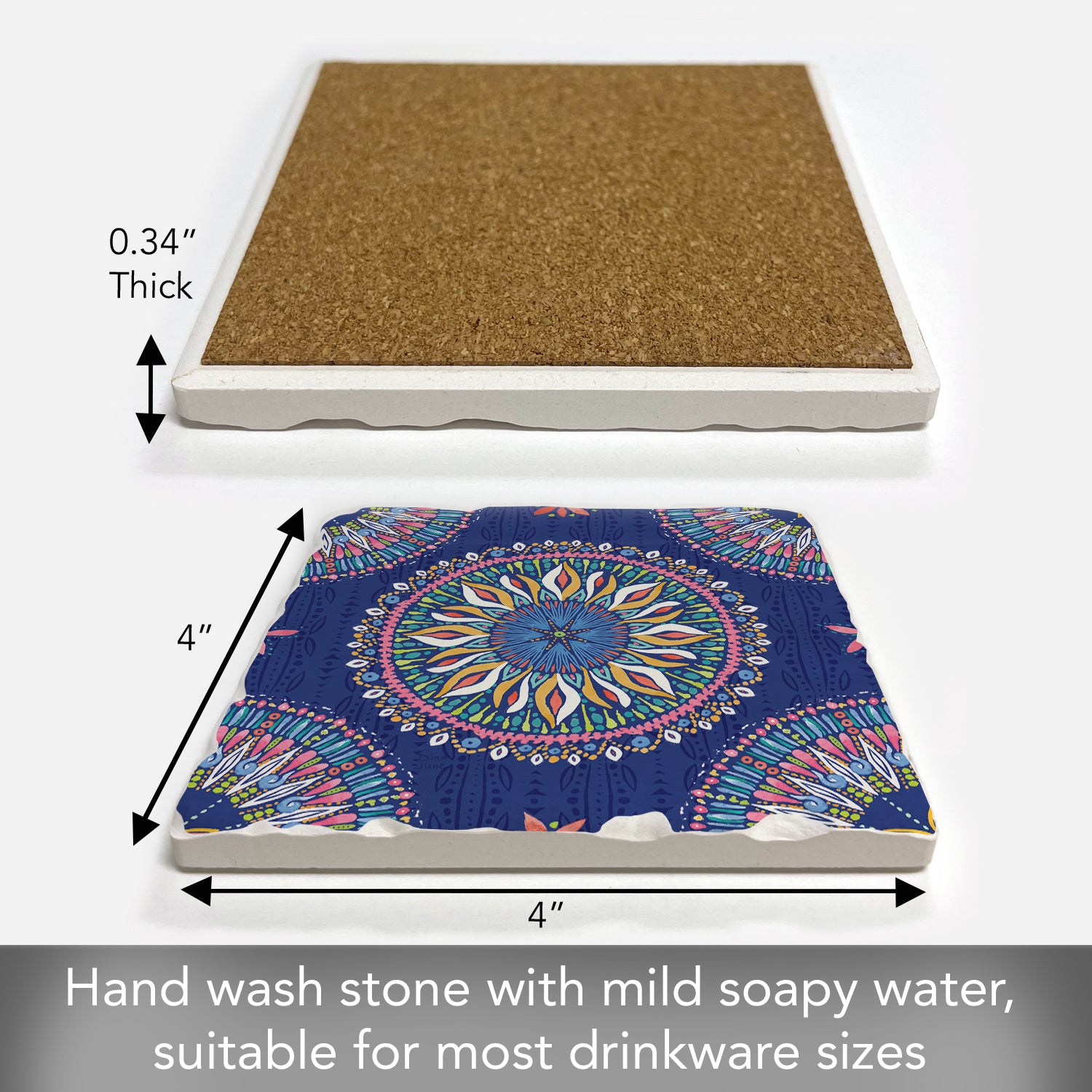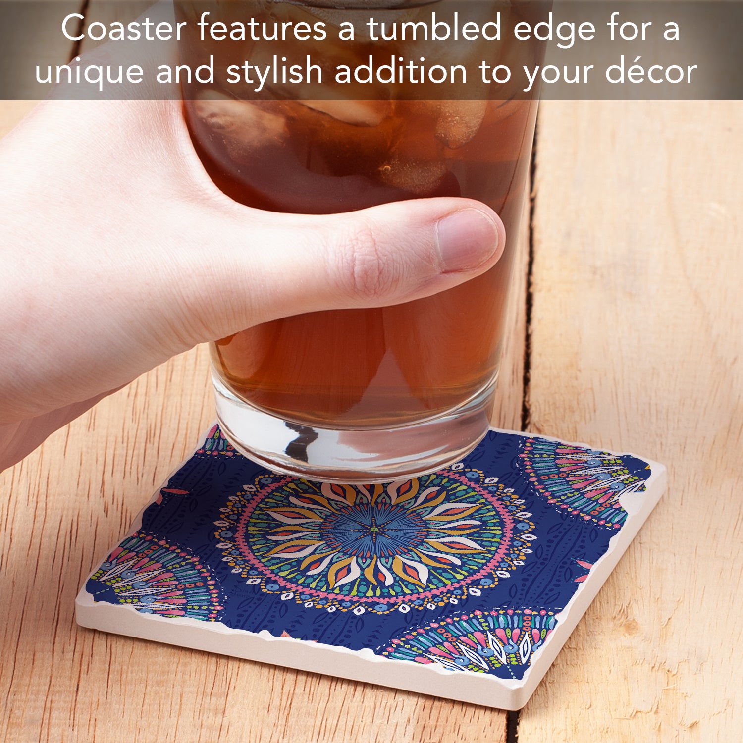 Thirstystone Mandala Seas Single Tumbled Tile Stone Coaster with Protective Cork Backing Manufactured in The USA 4" Square, Colorful, Artistiic, Easily Wipes Clean