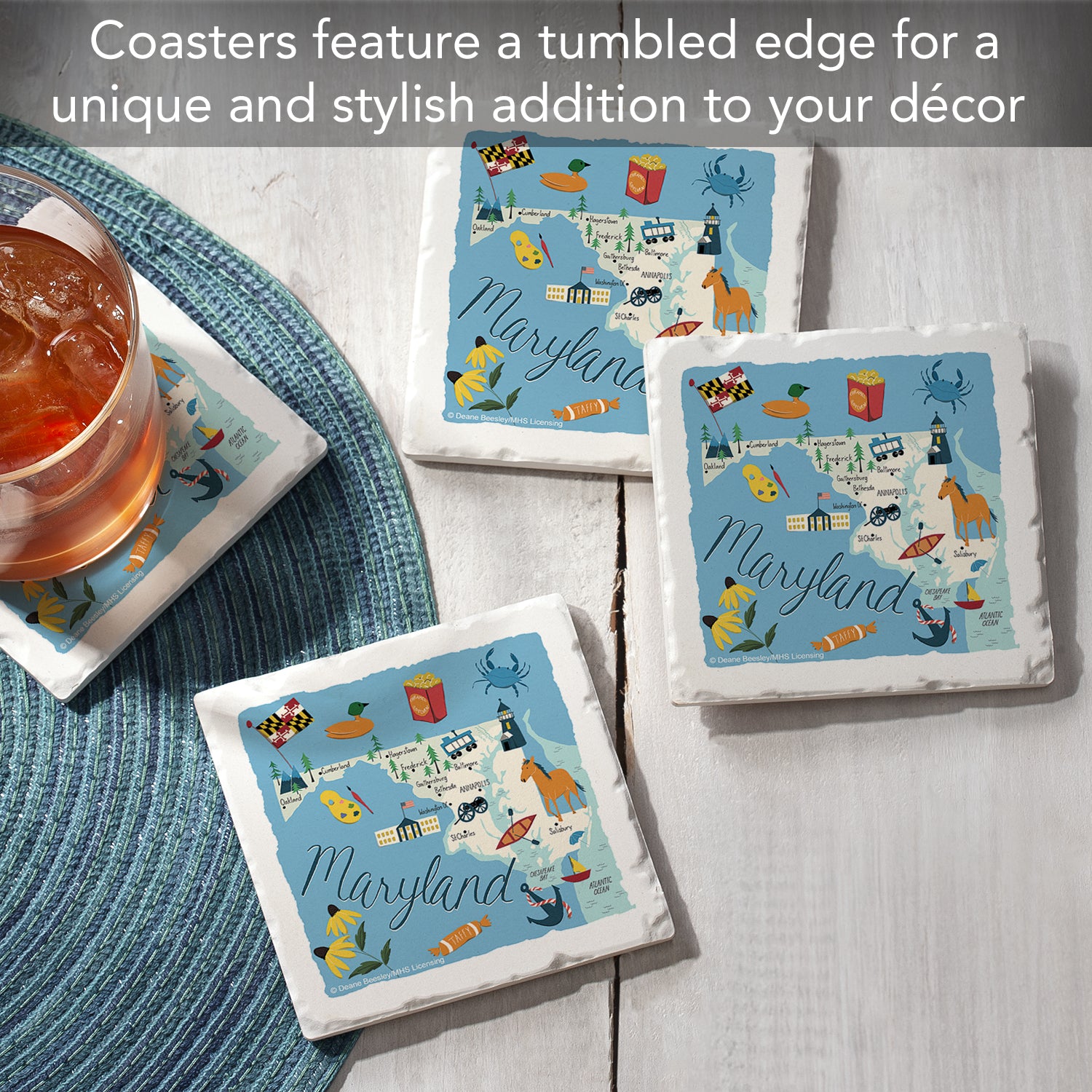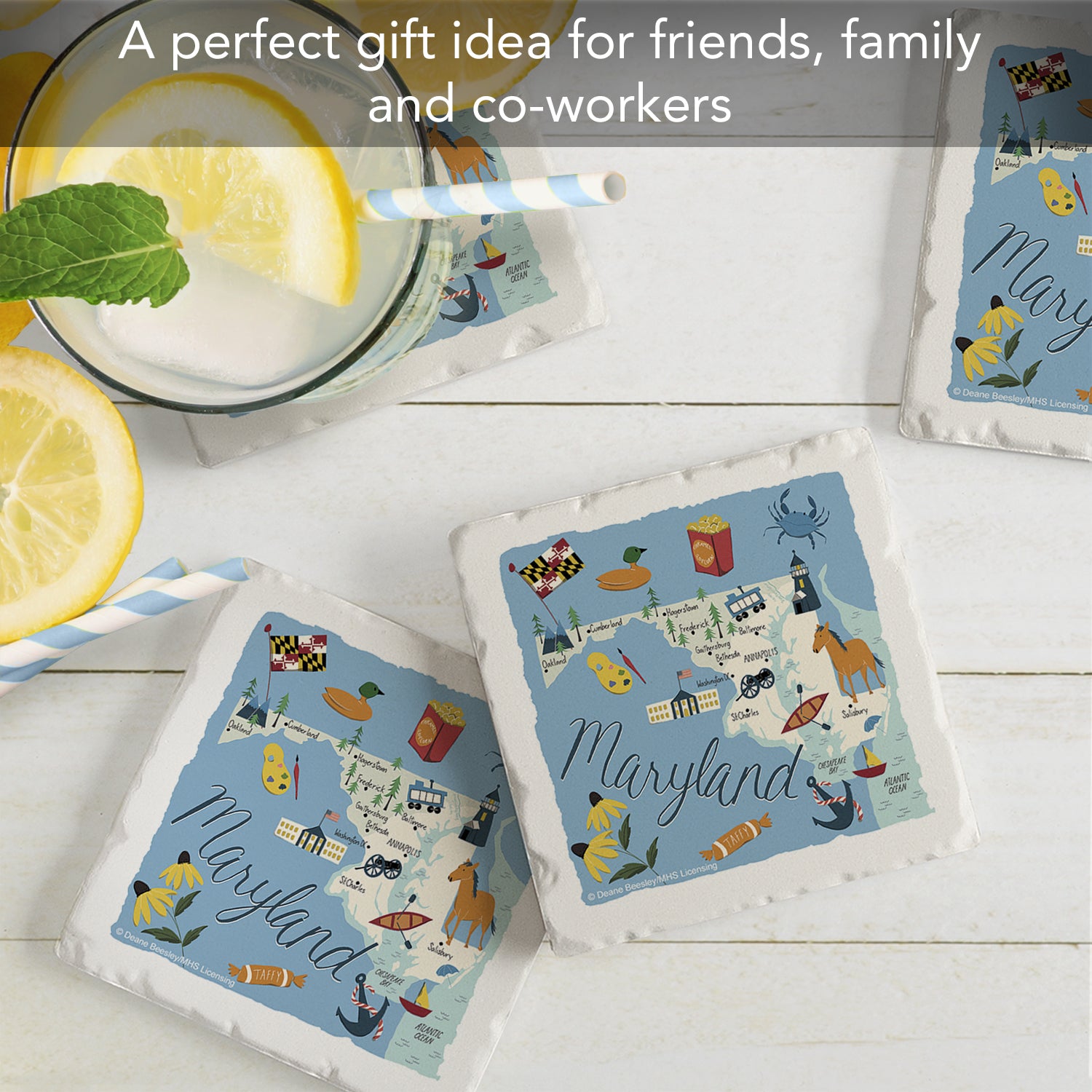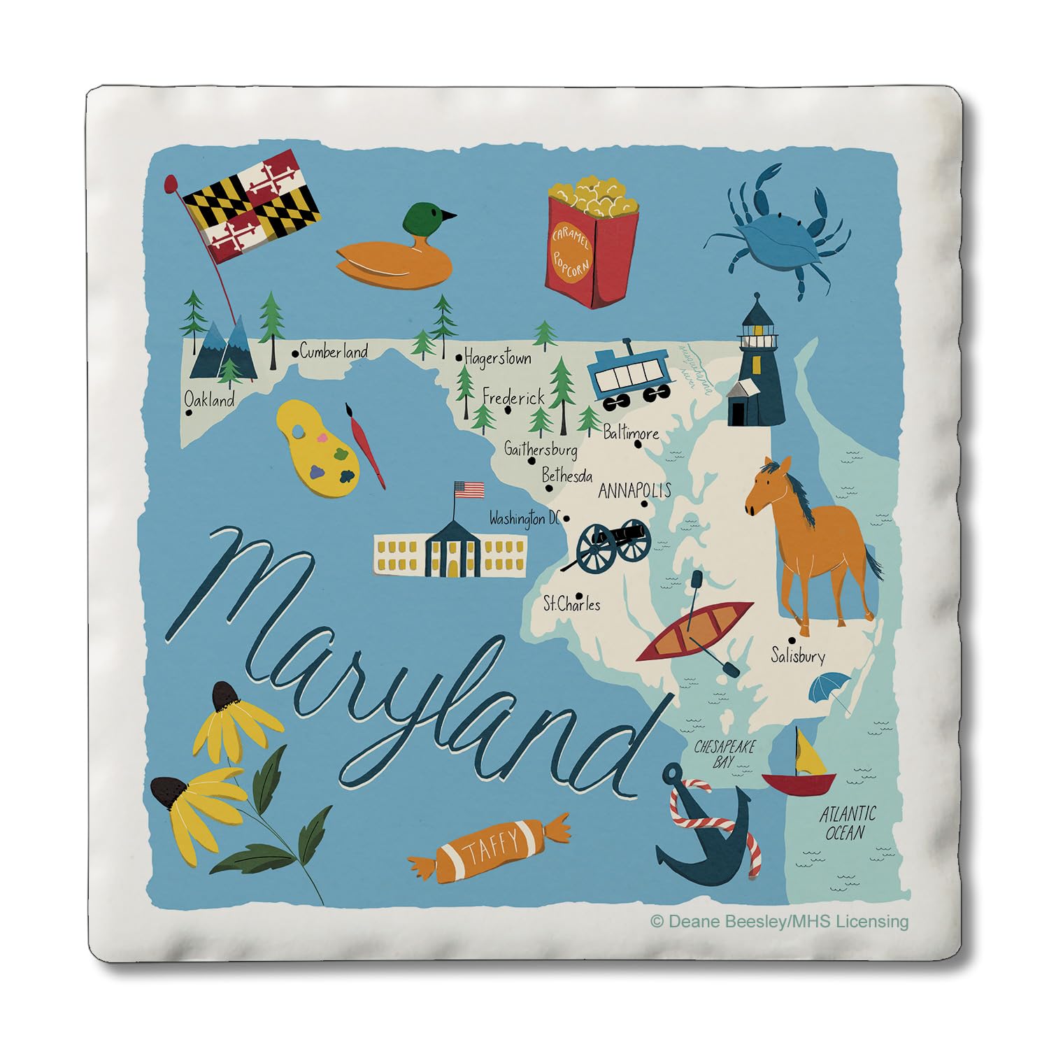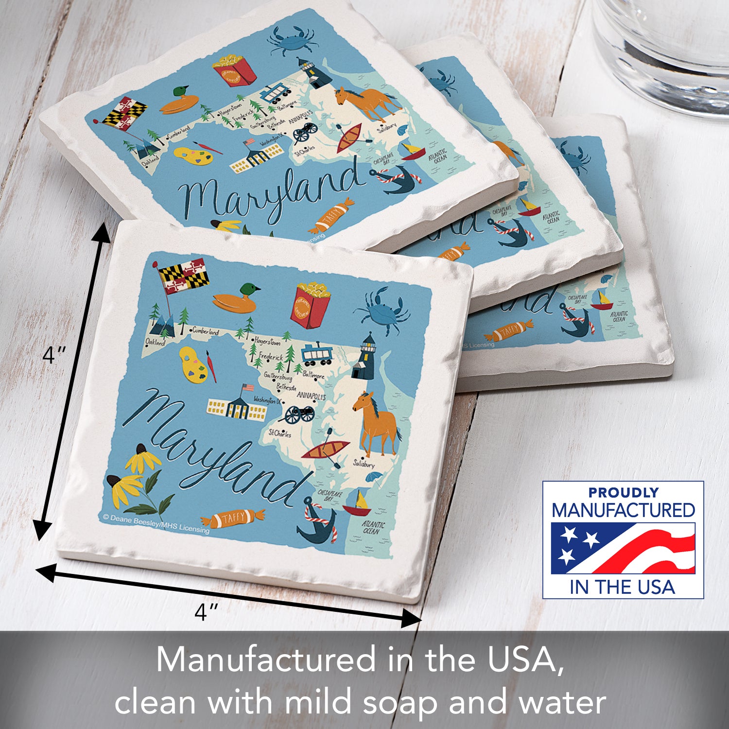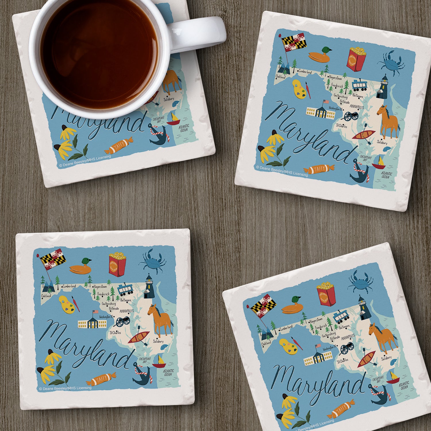 Thirstystone Maryland Home State 4 Pack Tumbled Tile Stone Coasters 4" Square Manufactured in the USA