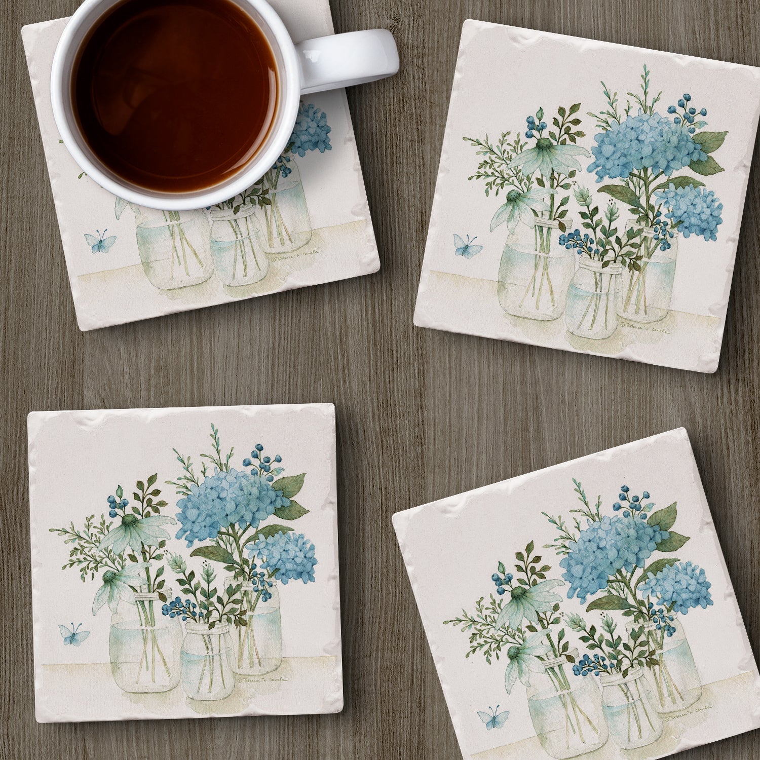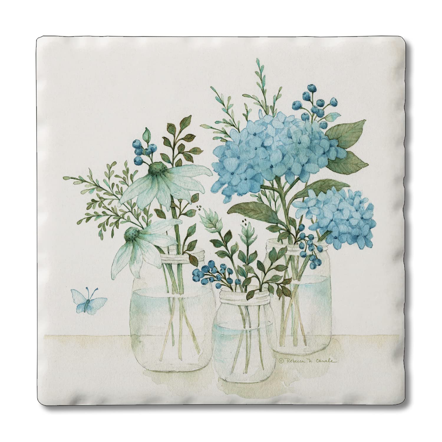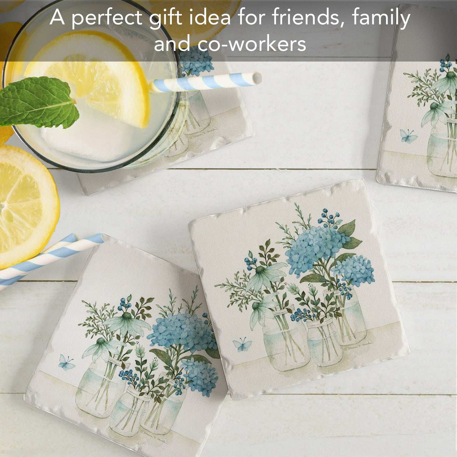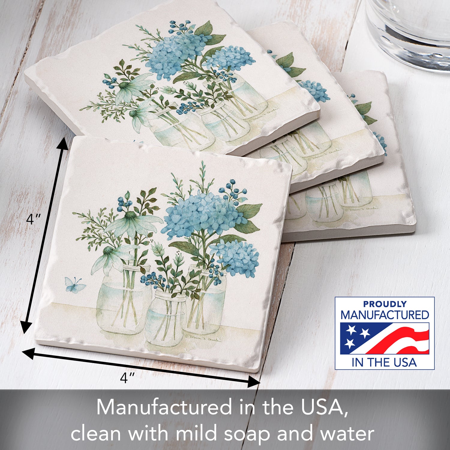 Thirstystone Mason Jar Florals 4 Pack Tumbled Tile Stone Coasters 4" Square Manufactured in the USA