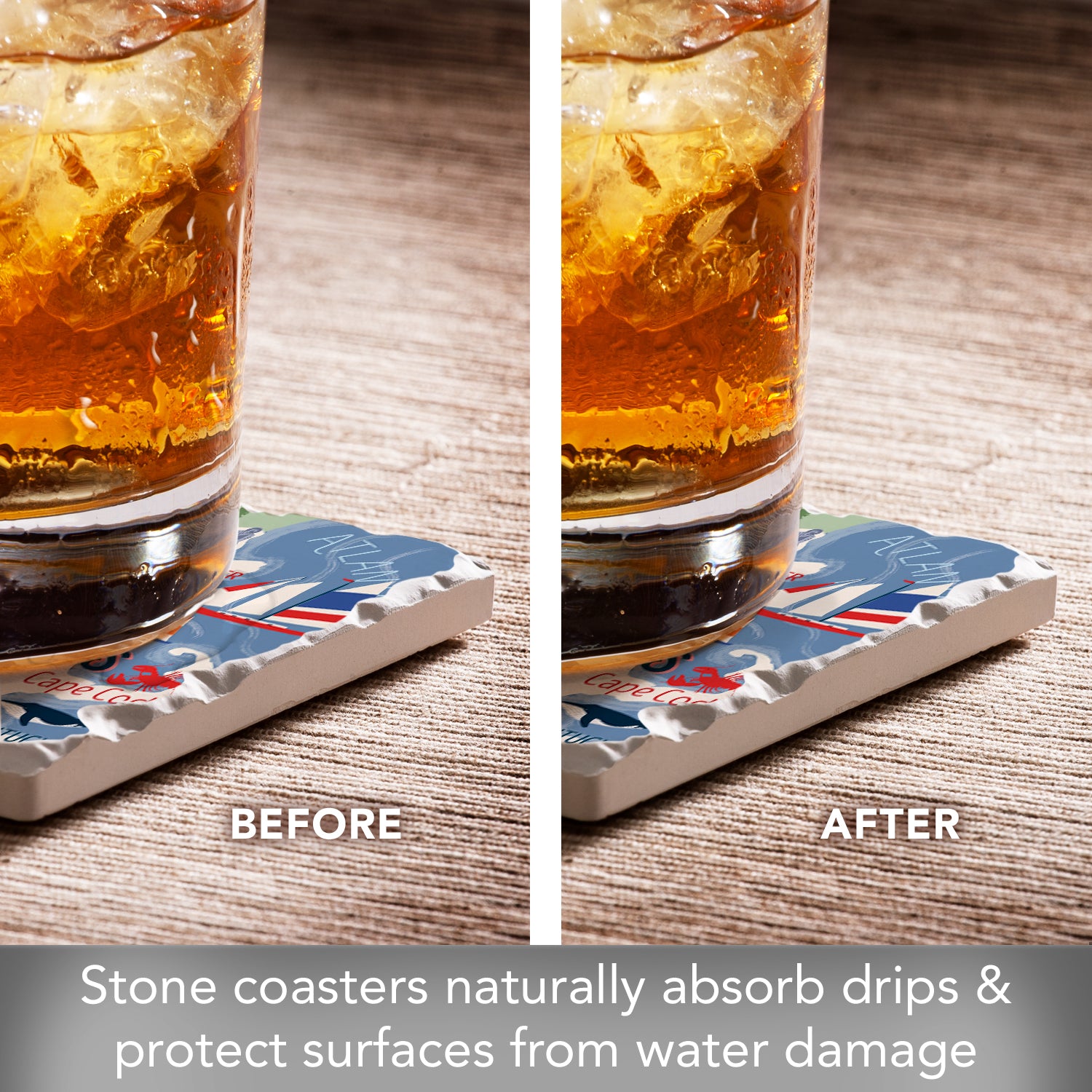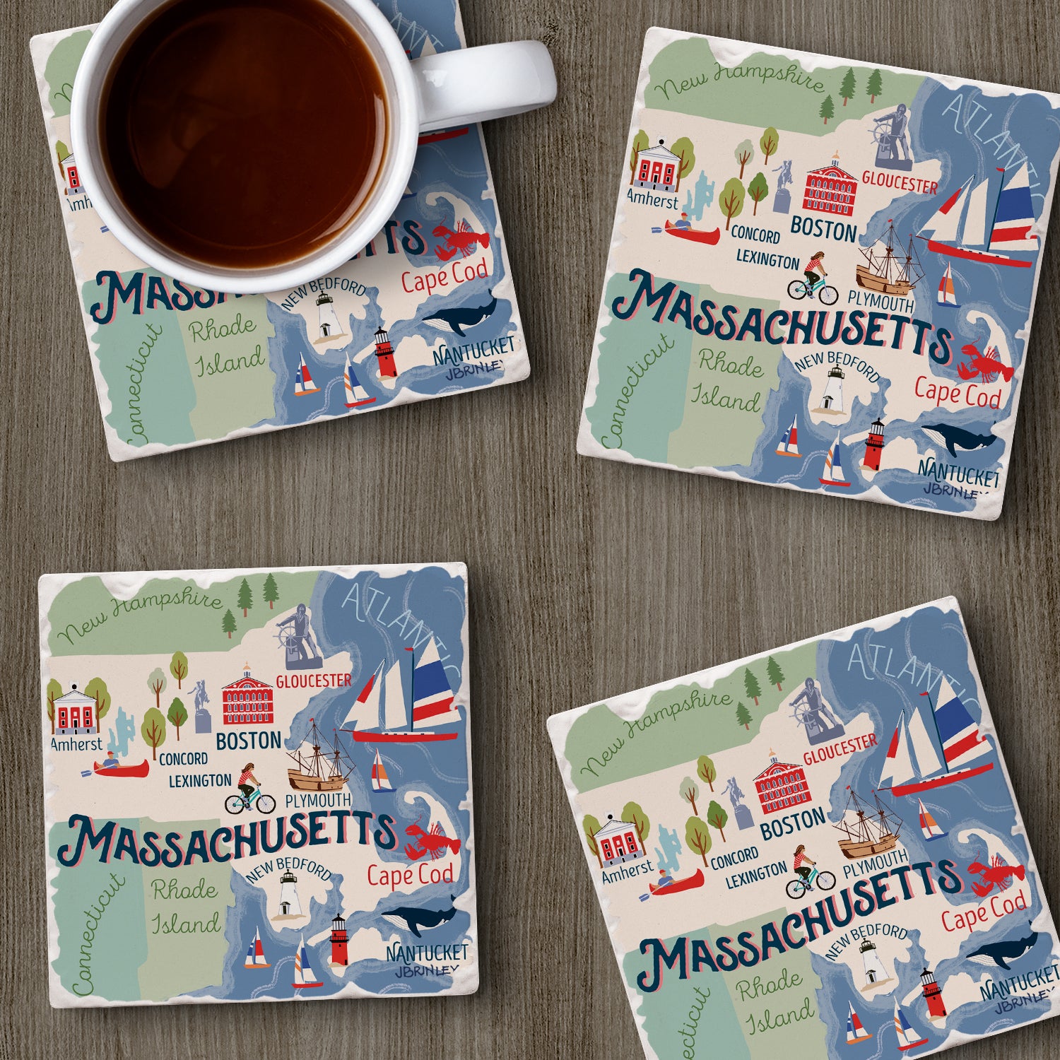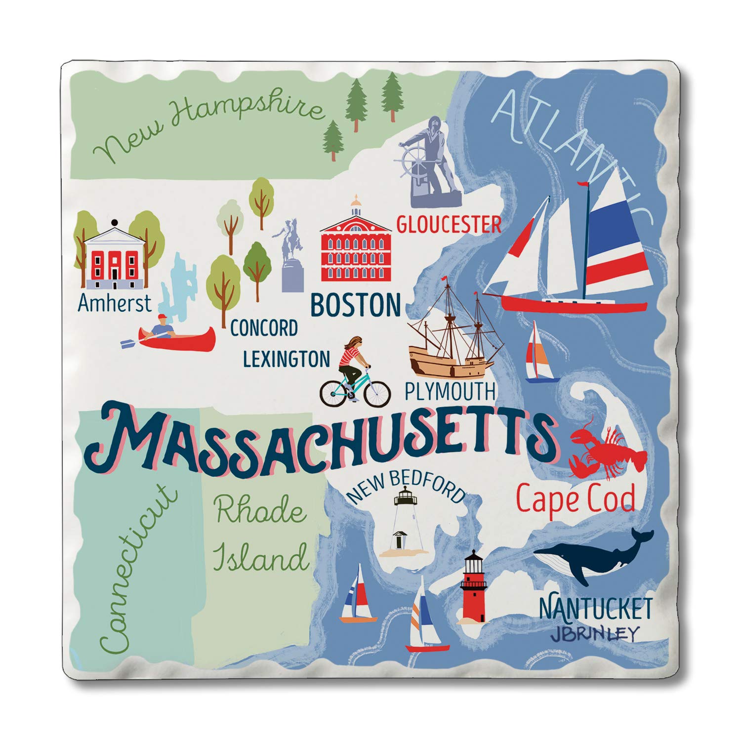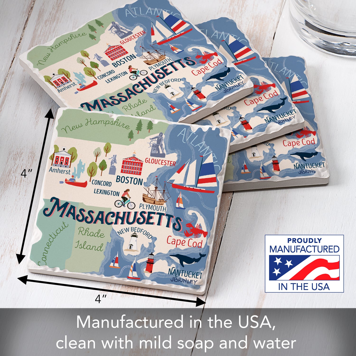 Thirstystone Massachusetts Attractions 4 Pack Tumbled Tile Stone Coasters 4" Square Manufactured in the USA