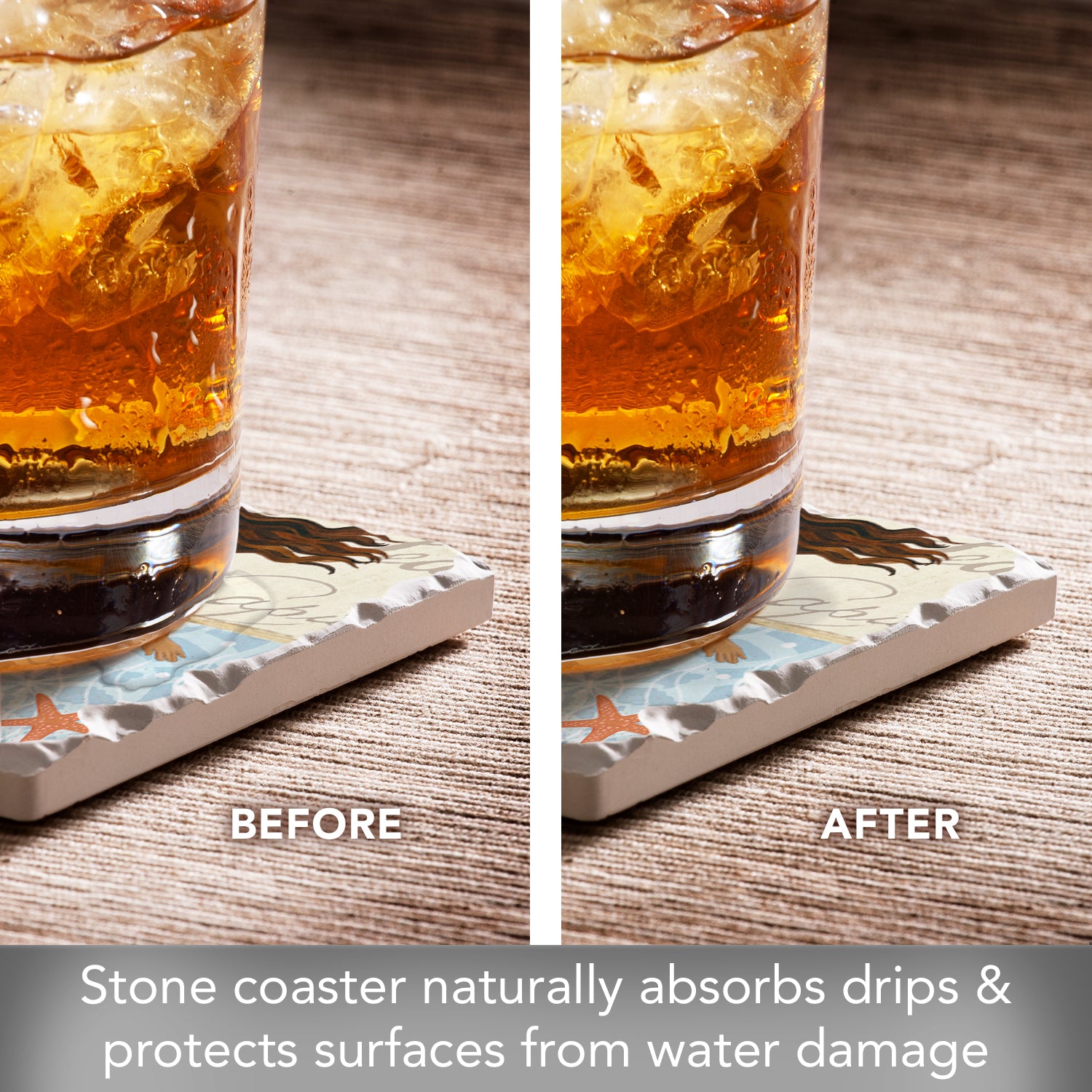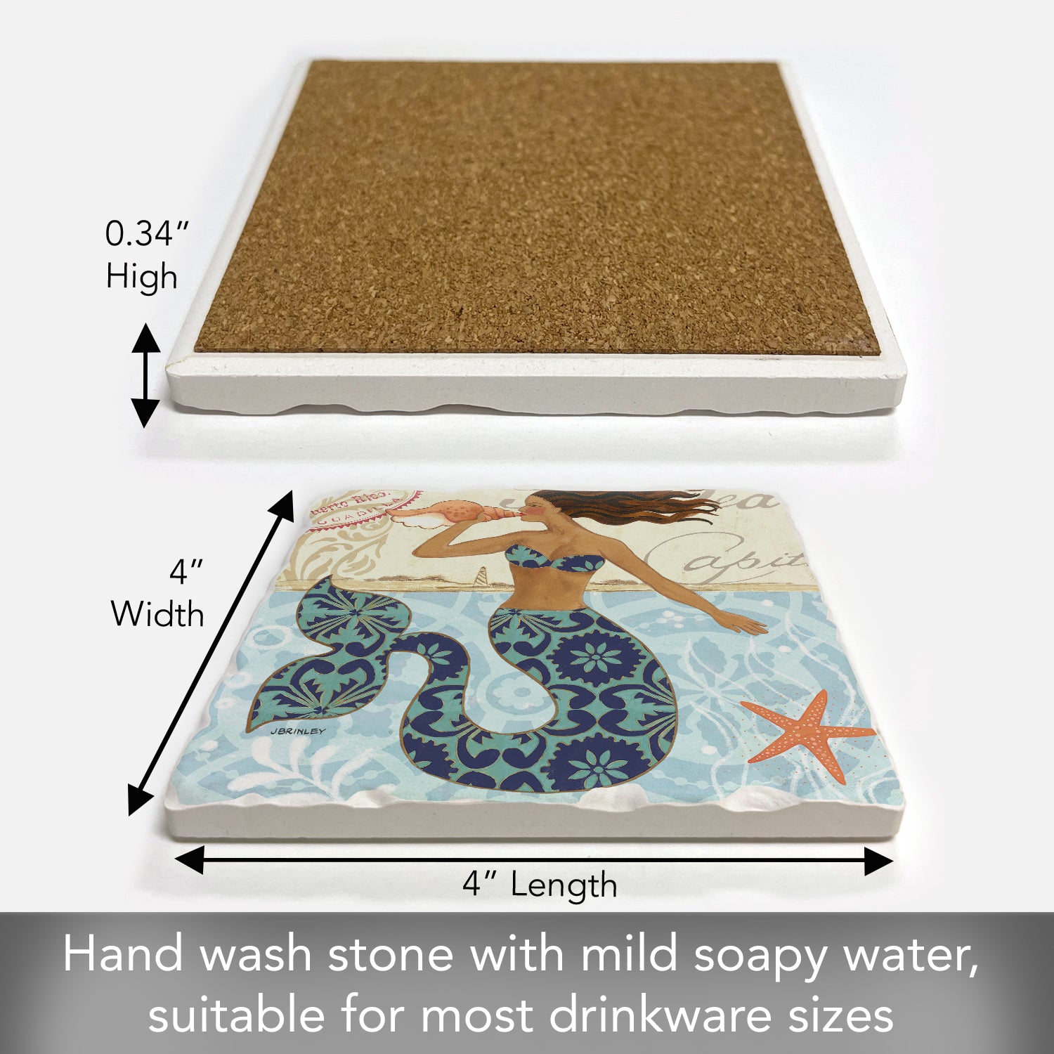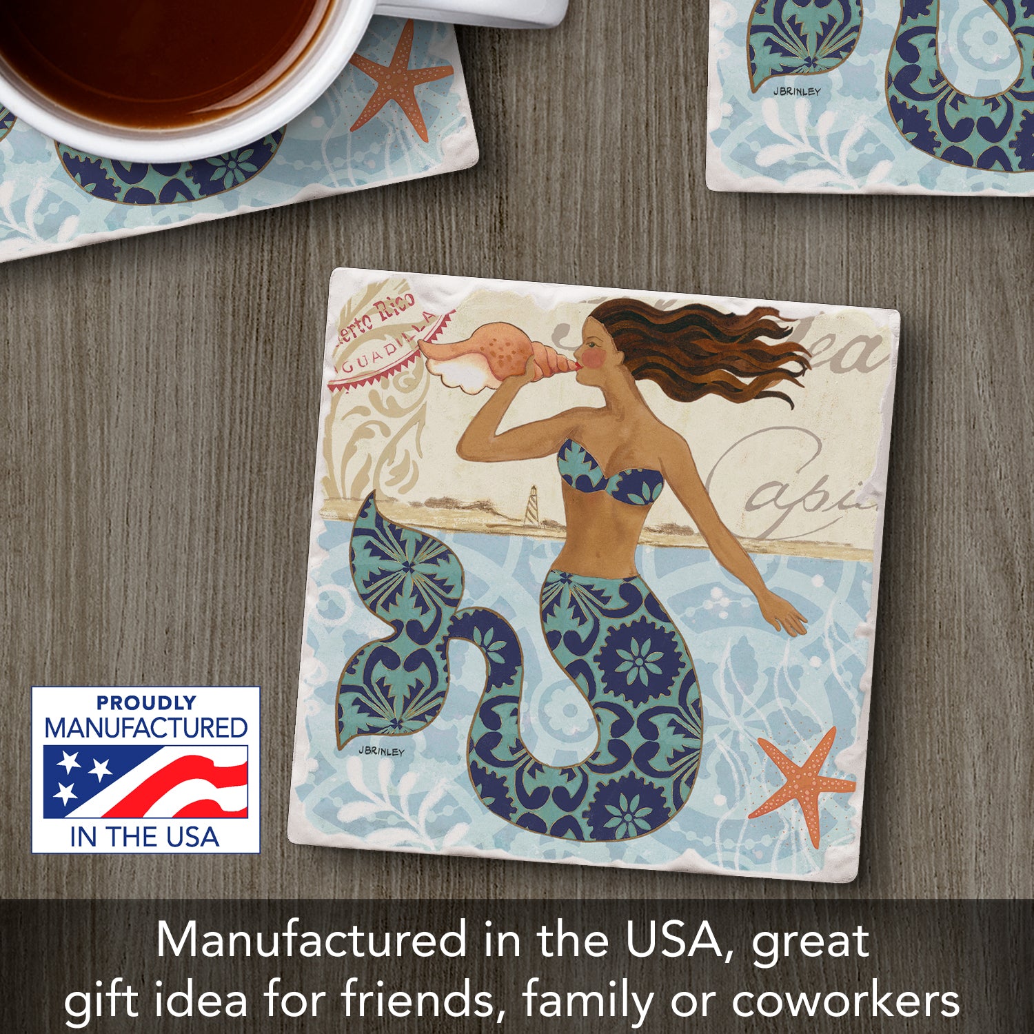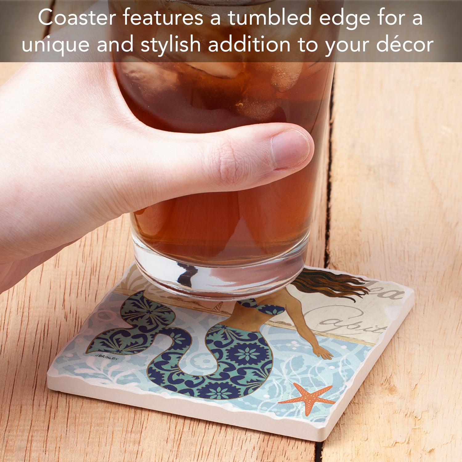 Thirstystone Mermaid Call Single Tumbled Tile Stone Coaster with Protective Cork Backing Manufactured in The USA 4" Square, Colorful, Artistiic, Easily Wipes Clean