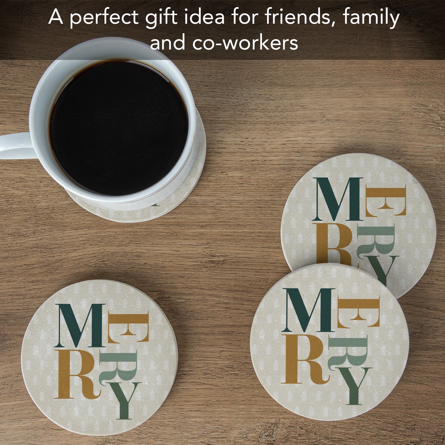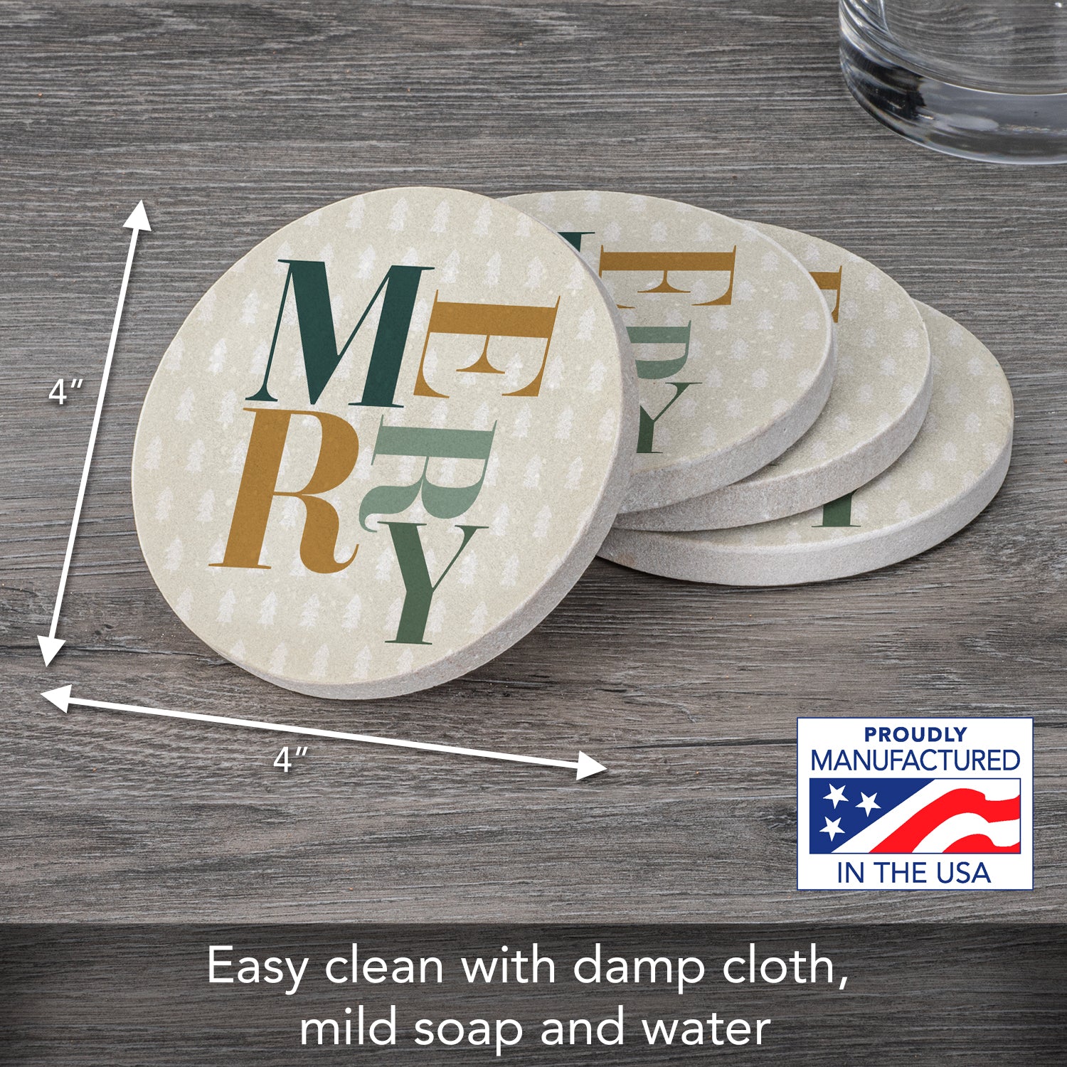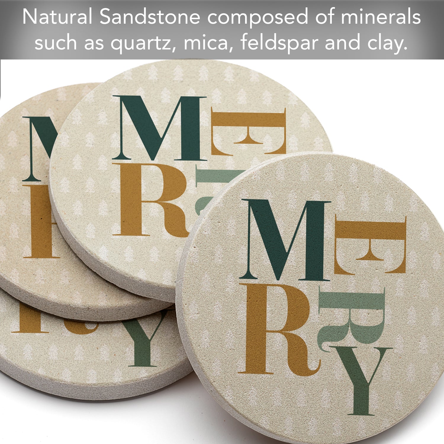 Thirstystone Merry 4 Pack Natural Sandstone Coasters 4" Round
