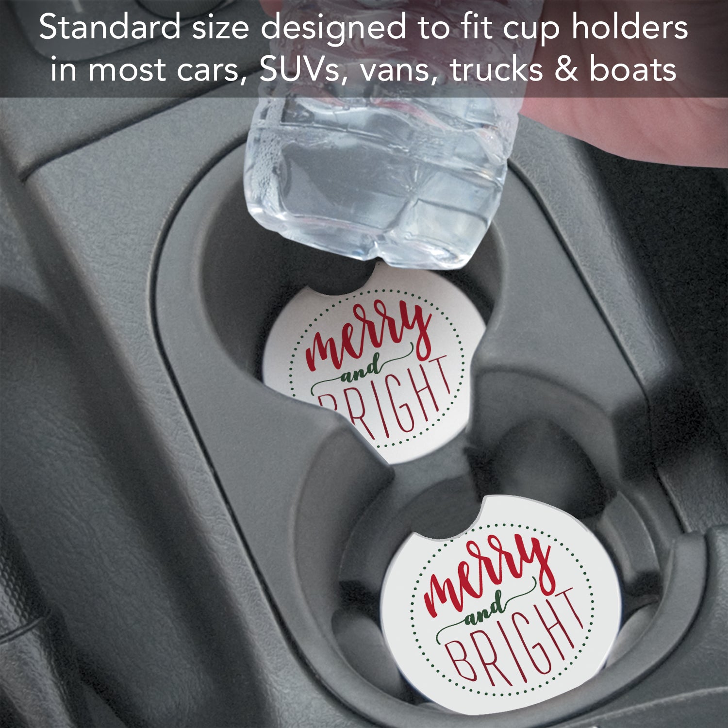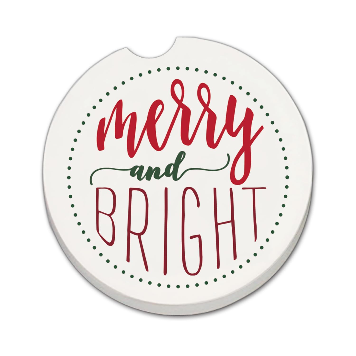Merry & Bright Single Absorbent Stone Car Coaster 2.6” Diameter Manufactured in the USA