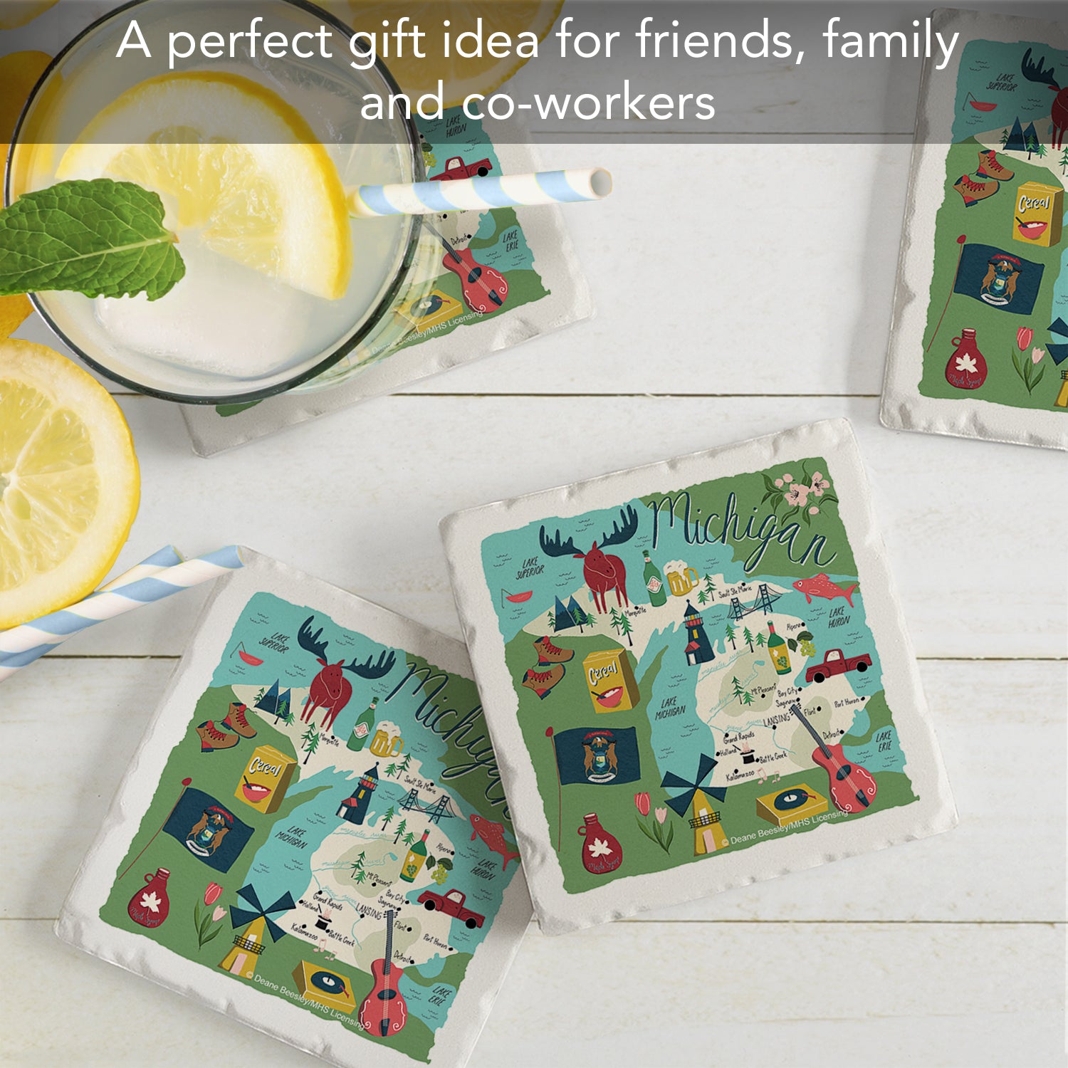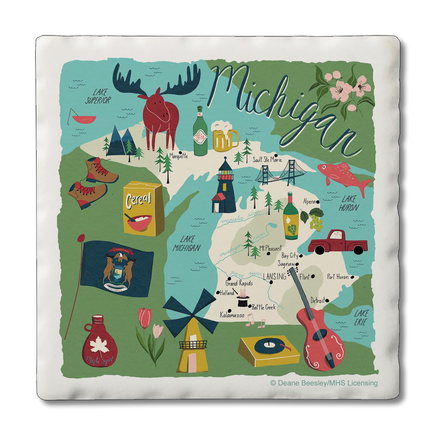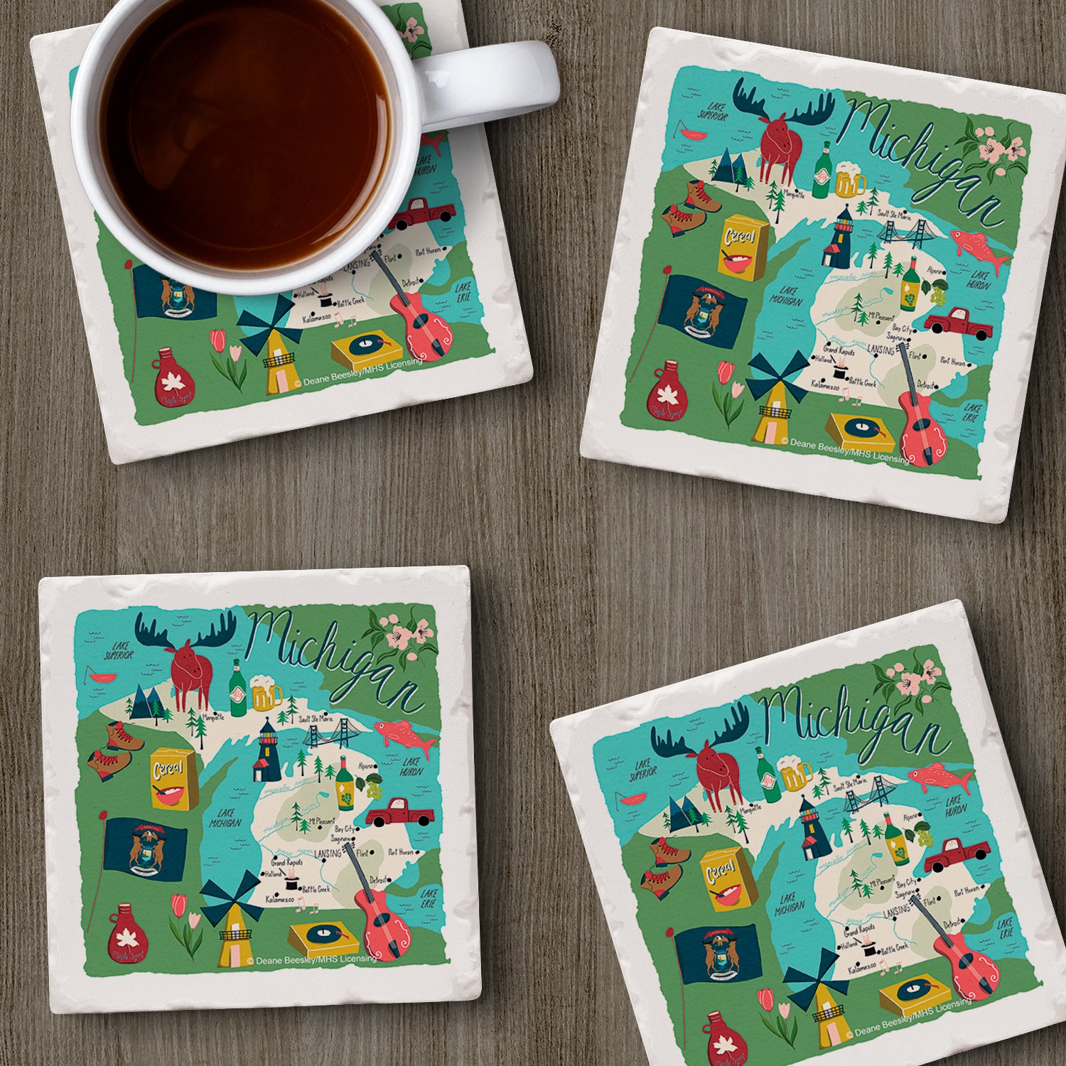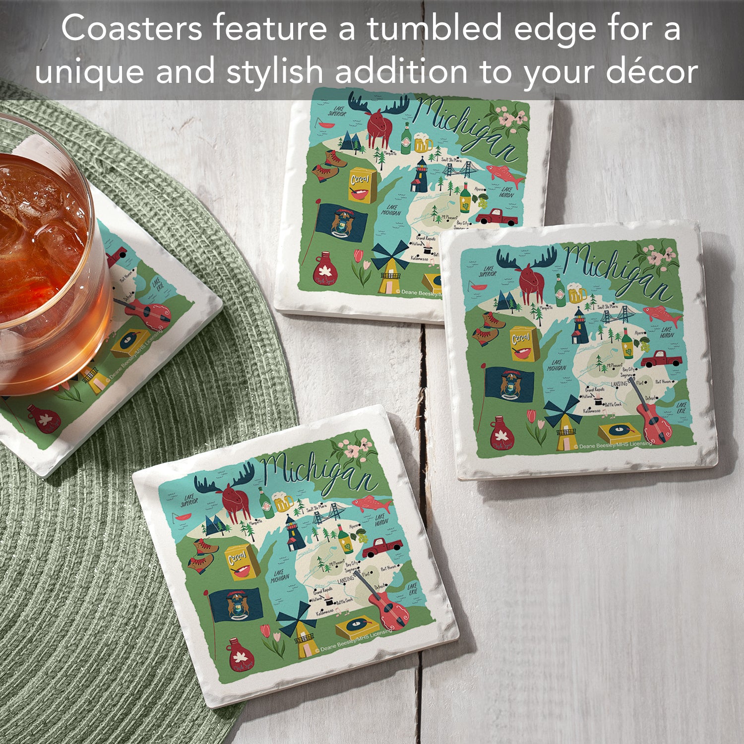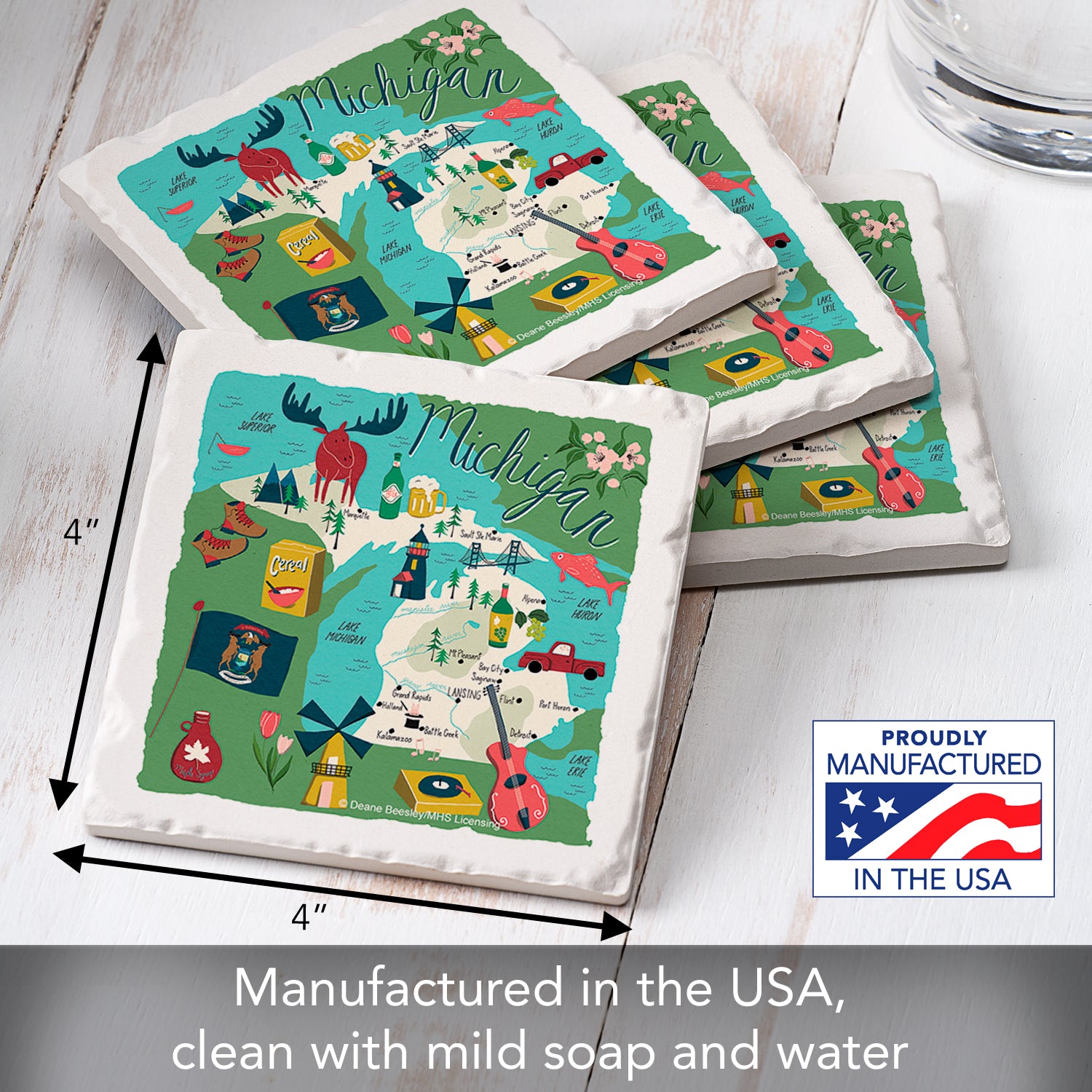 Thirstystone Michigan Home State 4 Pack Tumbled Tile Stone Coasters 4" Square Manufactured in the USA
