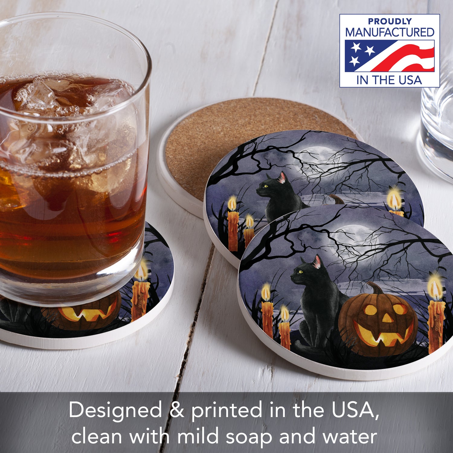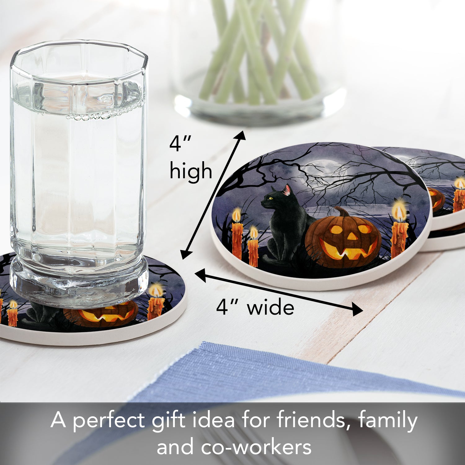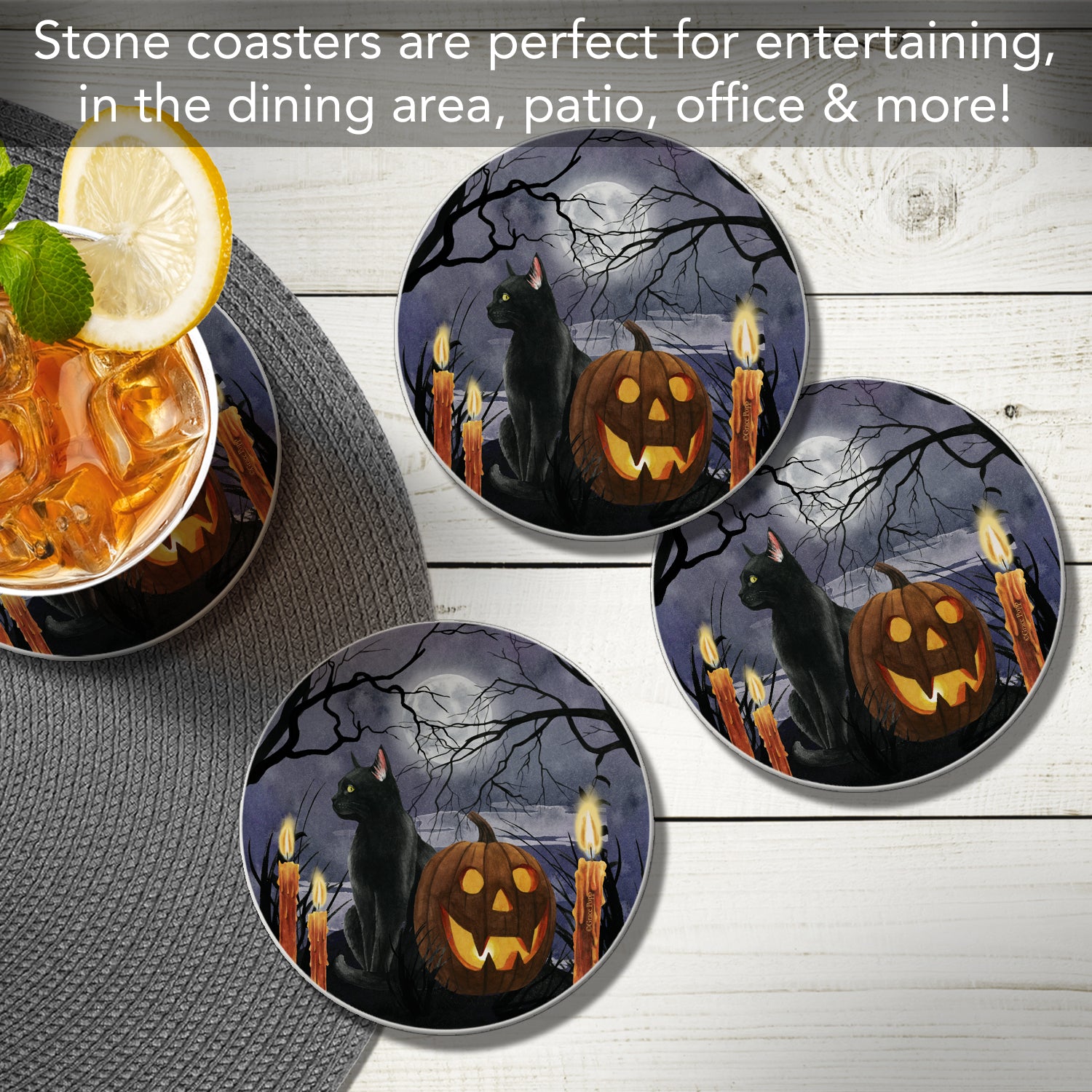 Thirstystone Midnight Magic Halloween 4 Pack Round Absorbent Stone Coasters 4" Diameter
