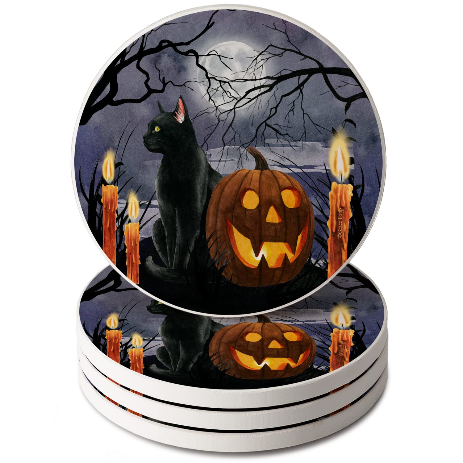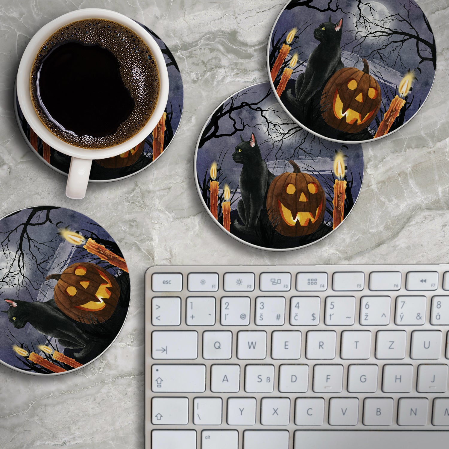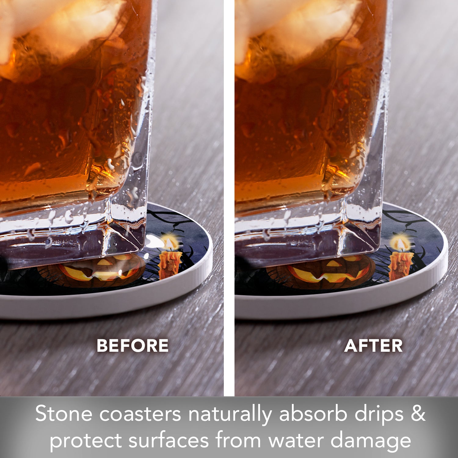 Thirstystone Midnight Magic Halloween 4 Pack Round Absorbent Stone Coasters 4" Diameter