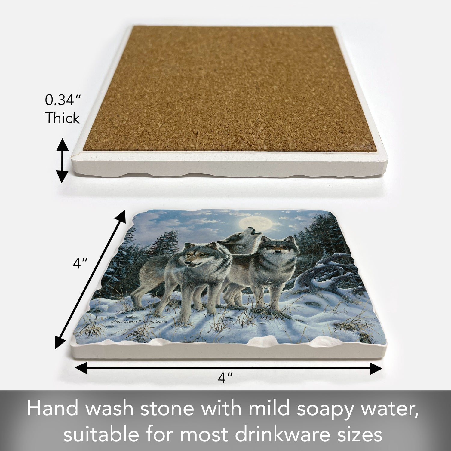 Thirstystone Midnight Wolves Single Tumbled Tile Stone Coaster with Protective Cork Backing Manufactured in The USA 4" Square