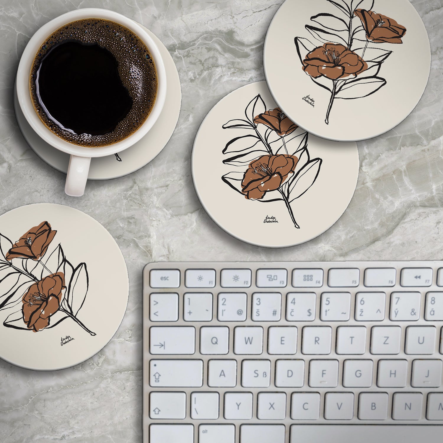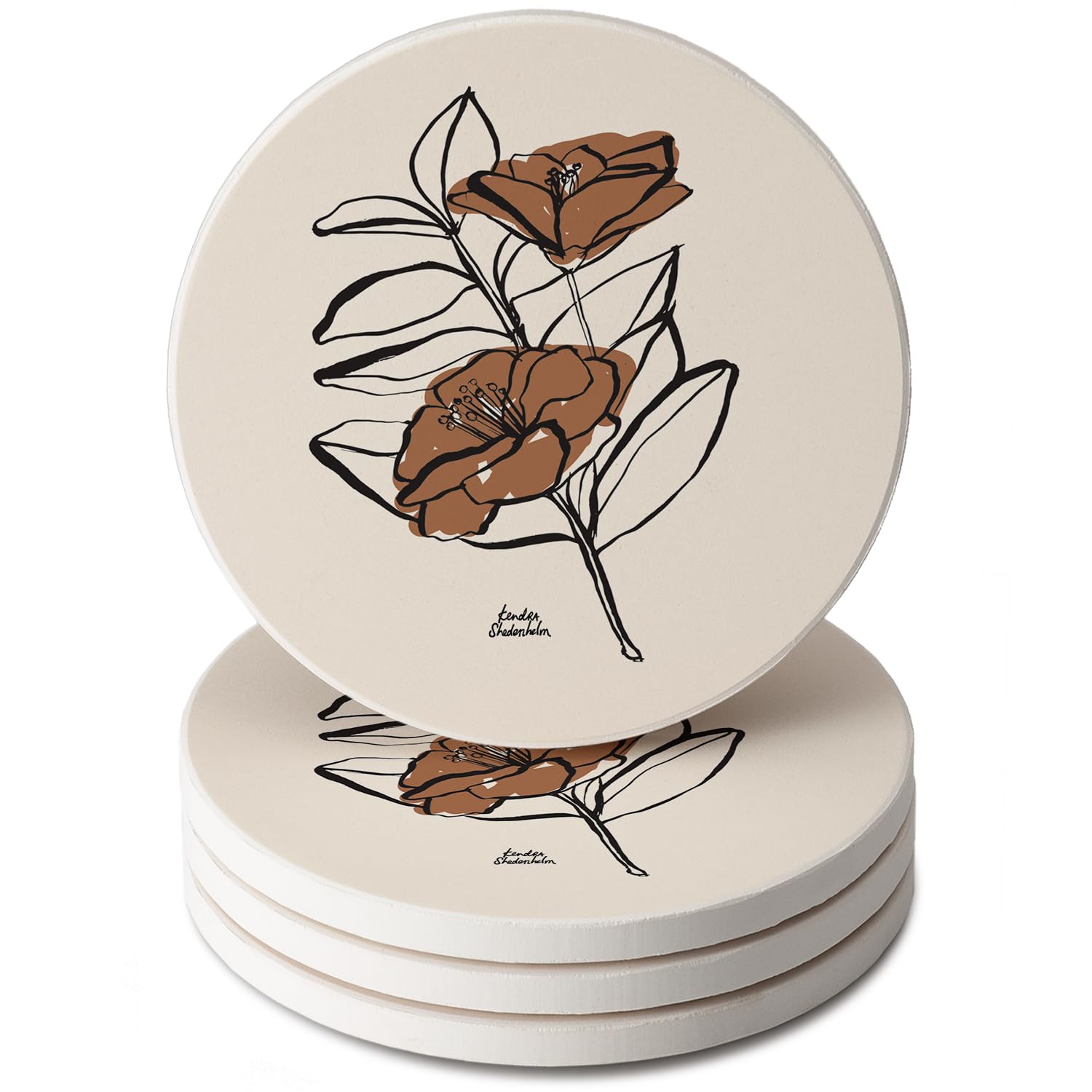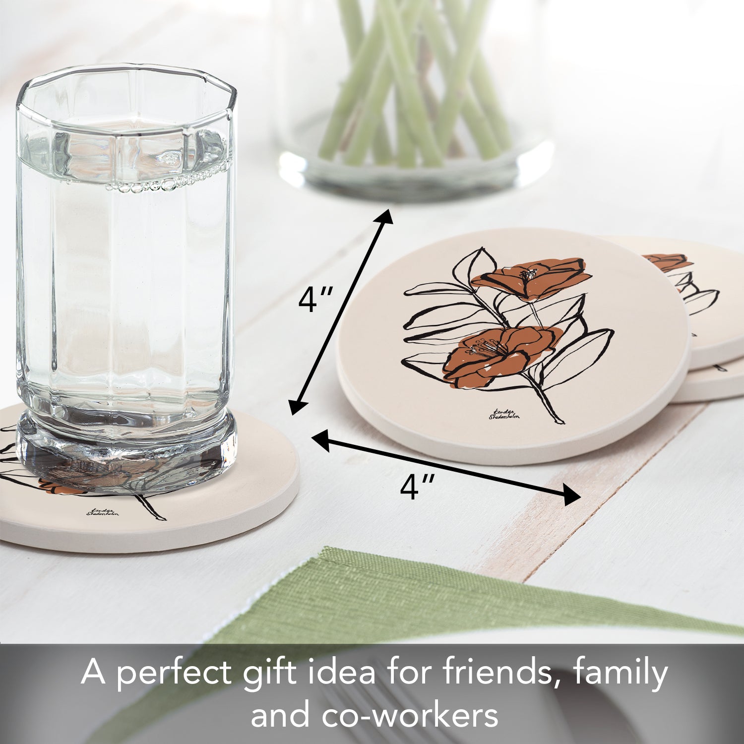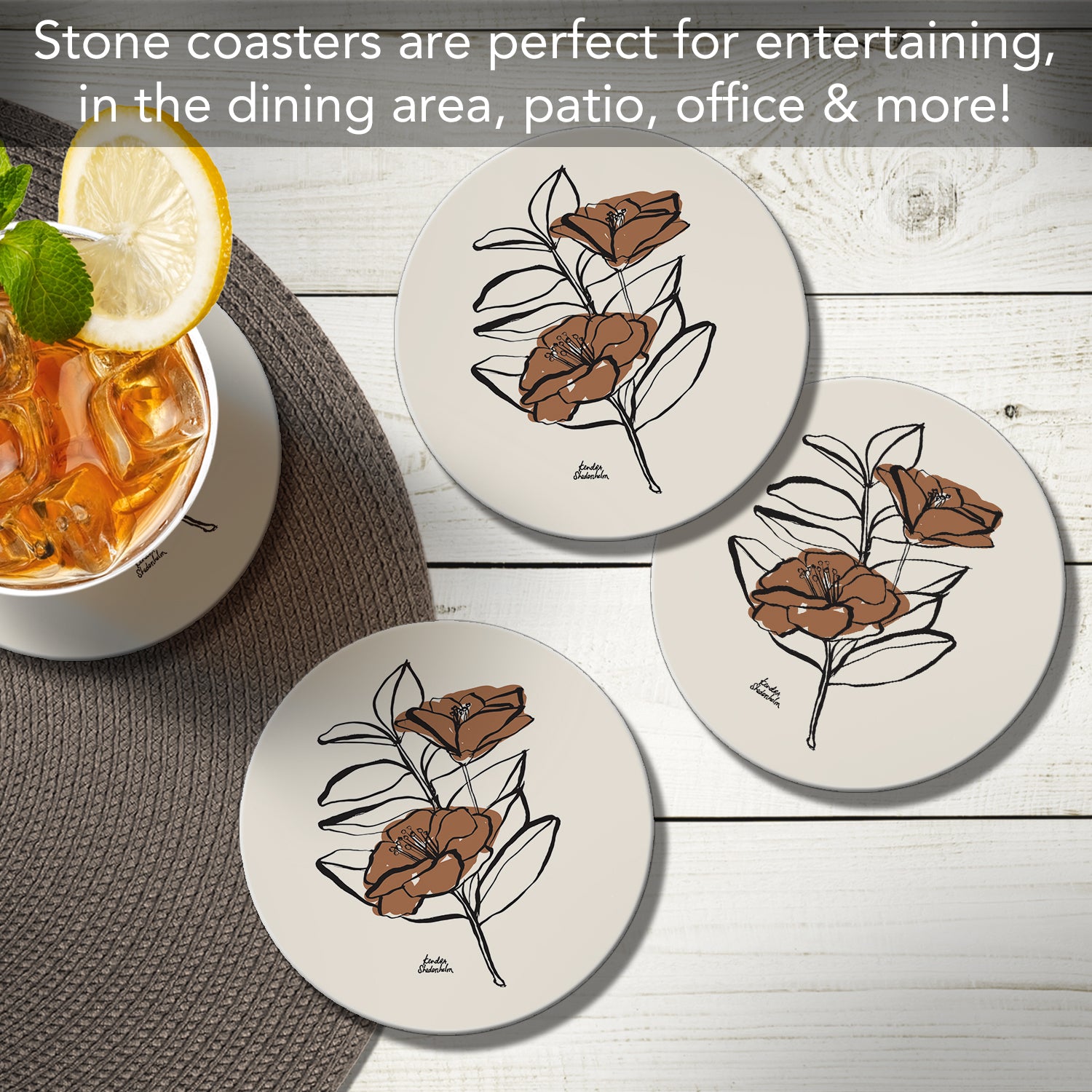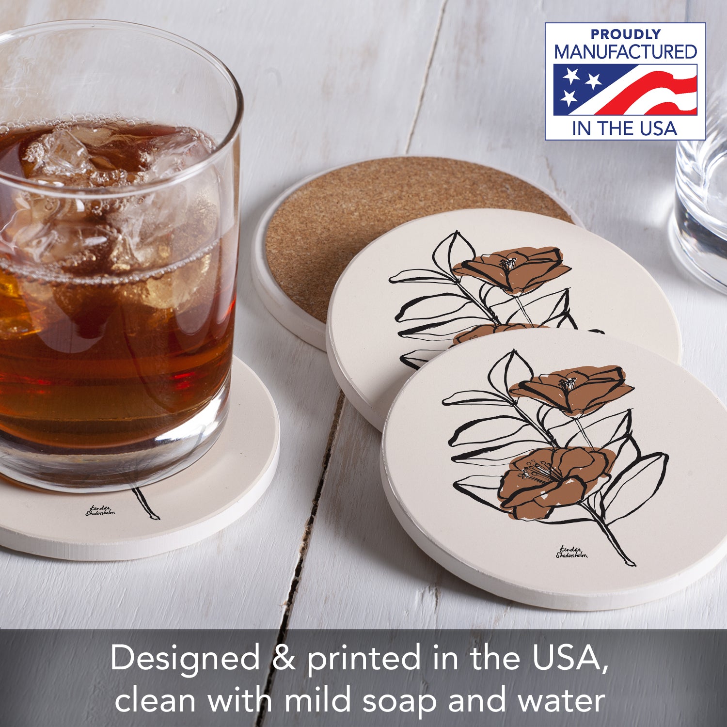 Thirstystone Mocha Flower 4 Pack Round Absorbent Stone Coasters 4" Diameter