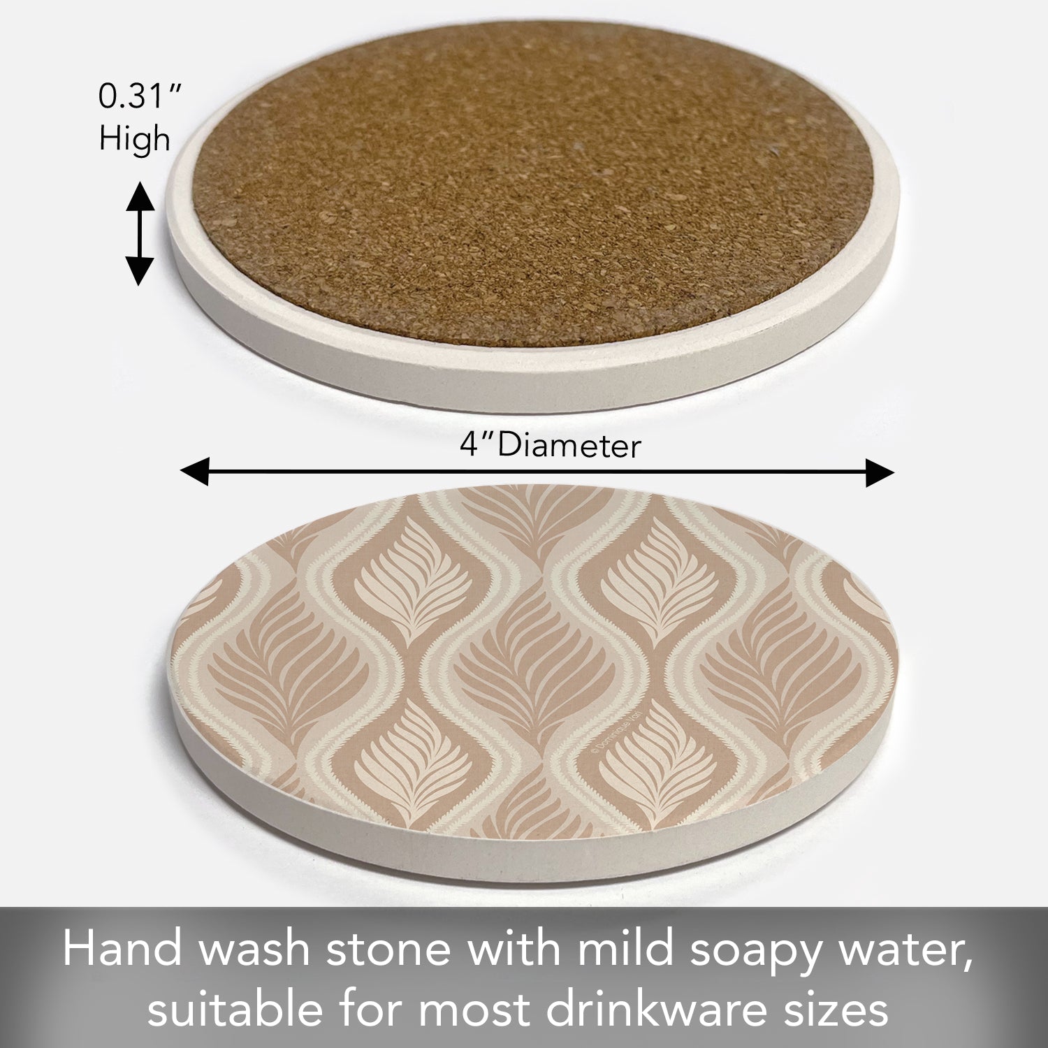 Thirstystone Mocha Leaves Single Round Absorbent Stone Coaster 4" Diameter Create Your Own Collection