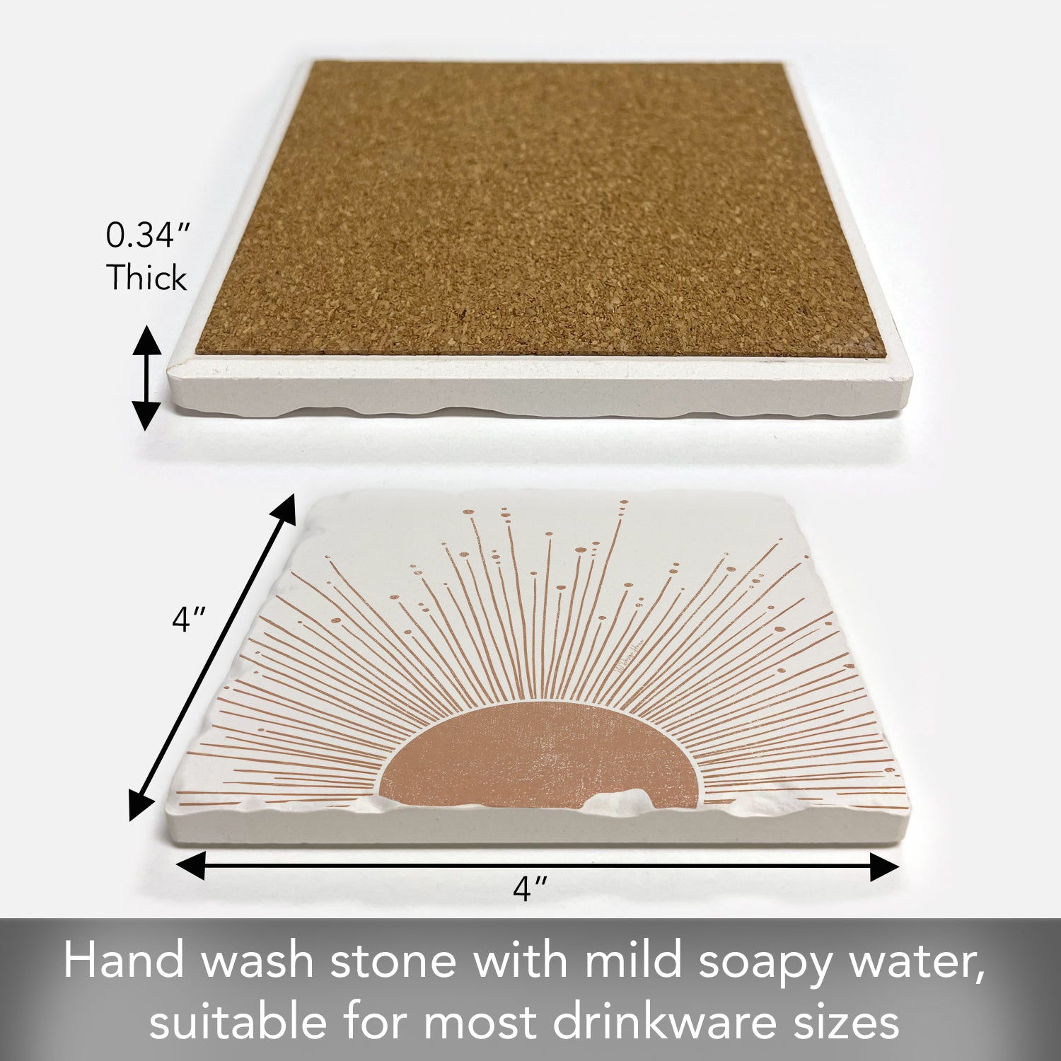 FUNCTIONAL ART-Beautiful artistic design allows the Coaster to remain displayed even when not in use. Each Coaster measures 4” x 4” x .25”. Sized to fit larger Mugs & Glasses.