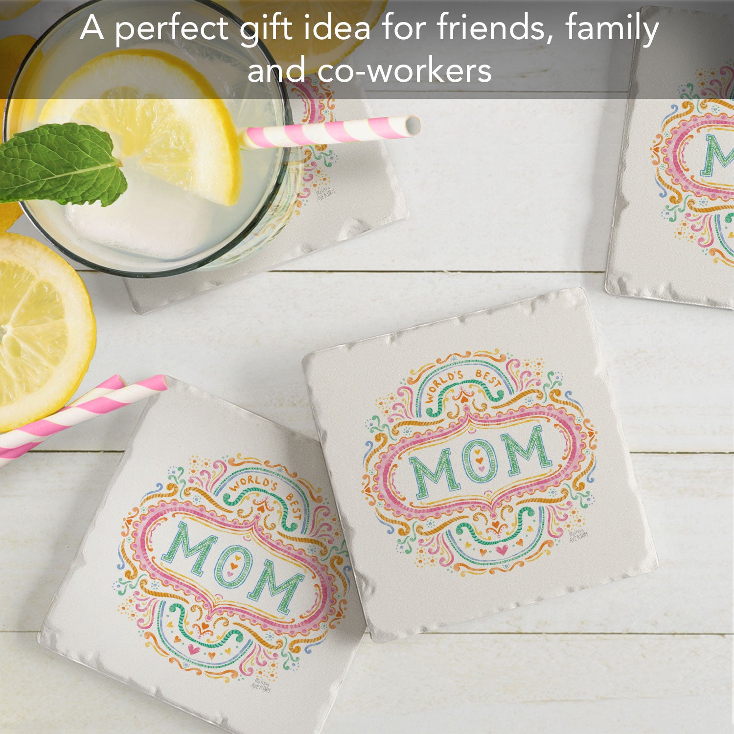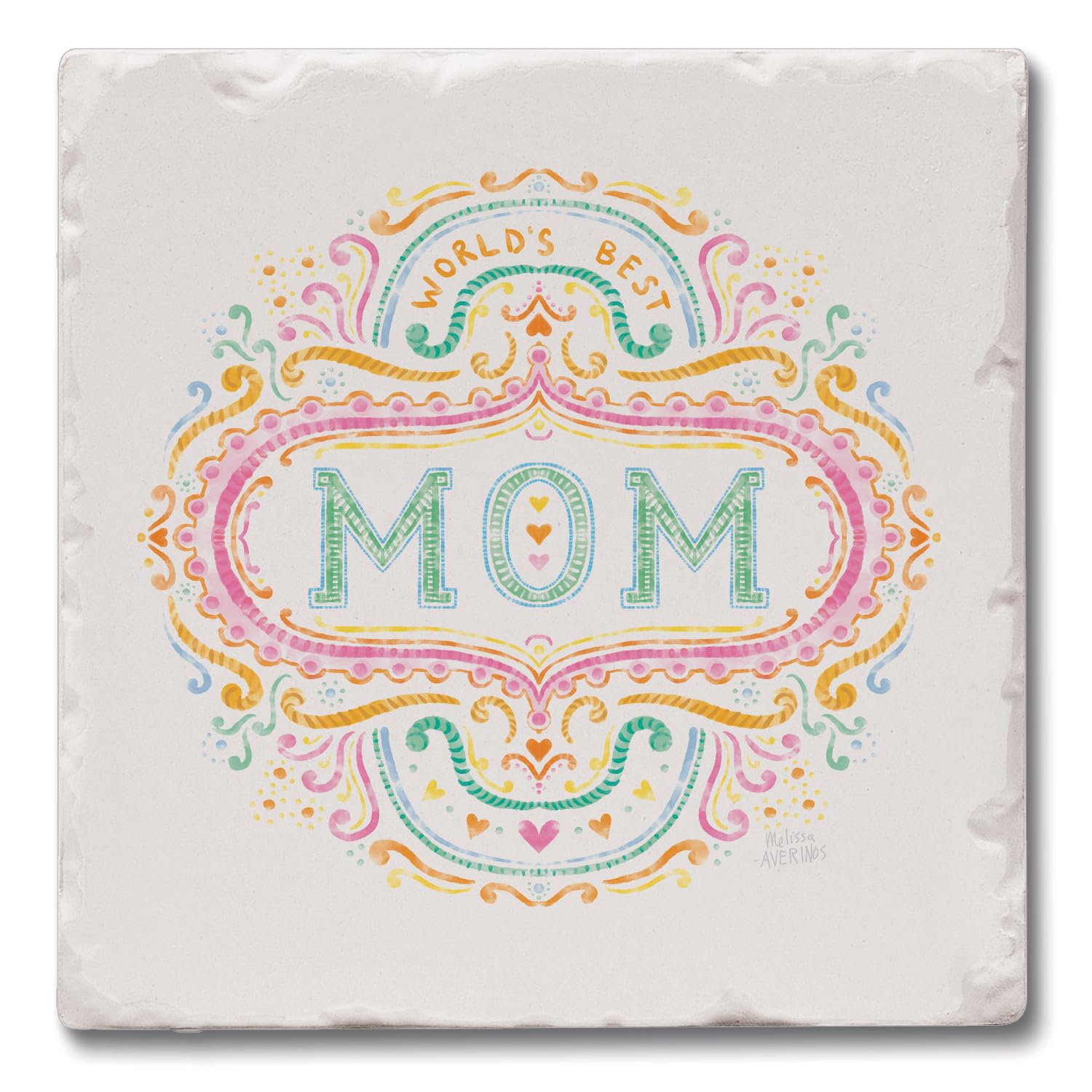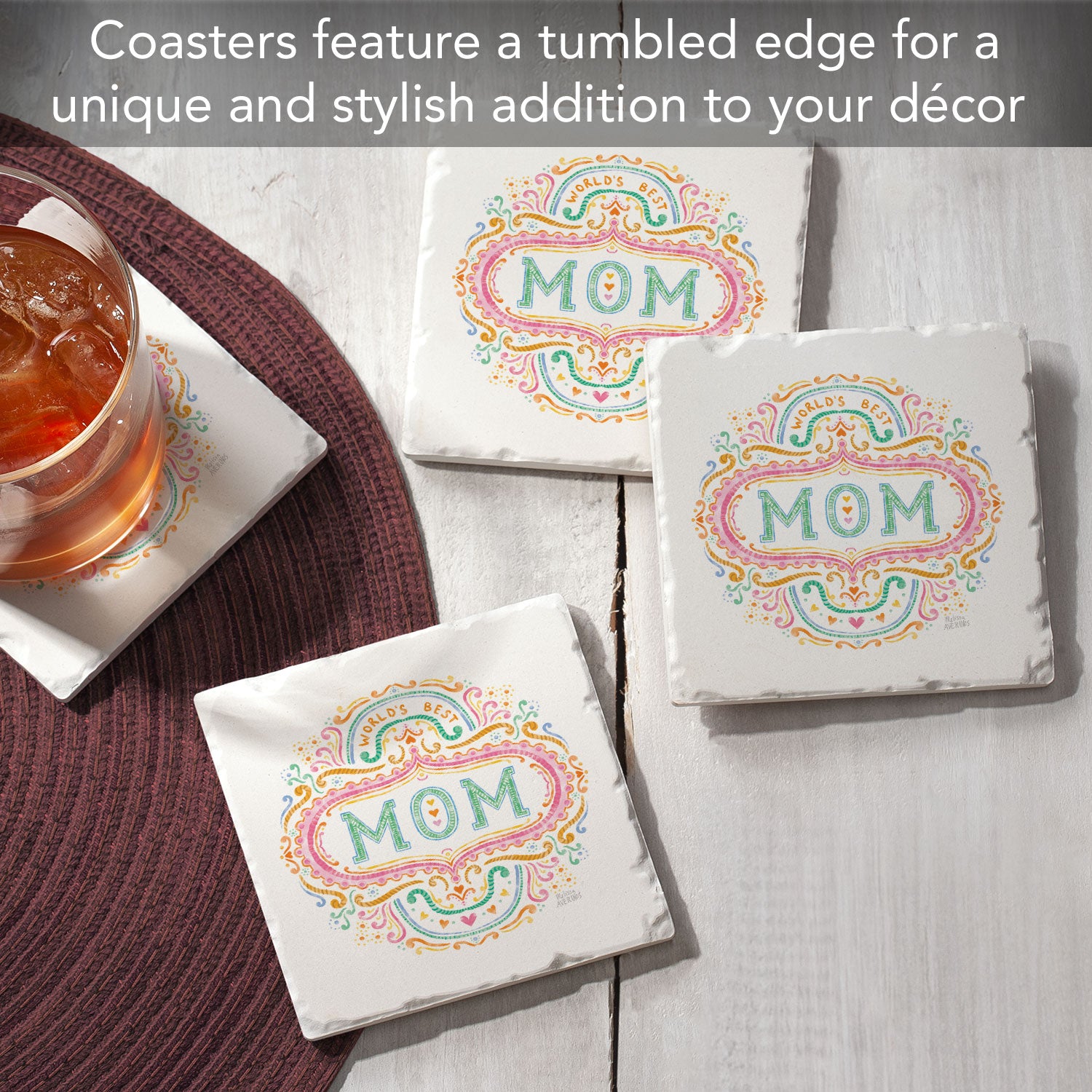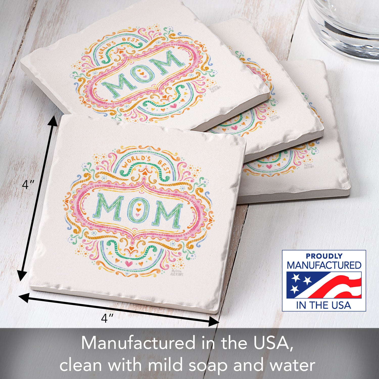 Thirstystone Mom 4P ack Tumbled Tile Stone Coasters 4" Square Manufactured in the USA