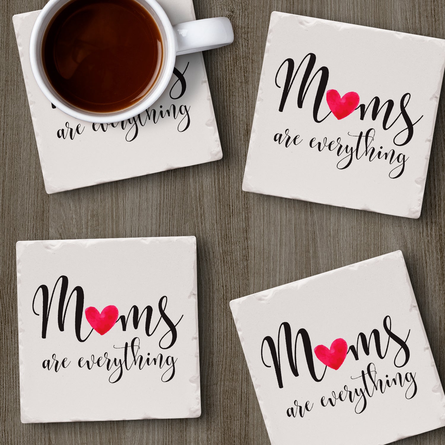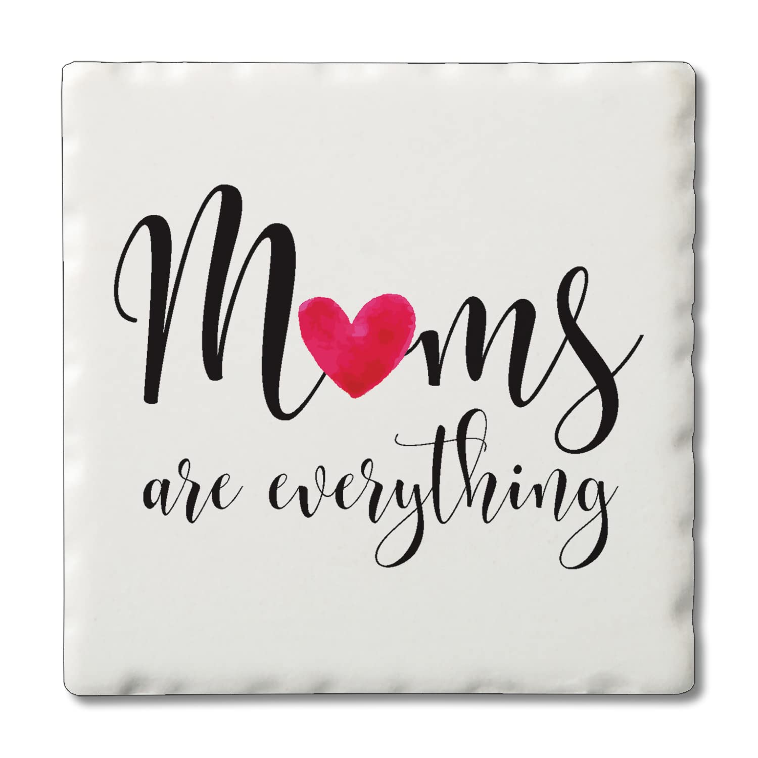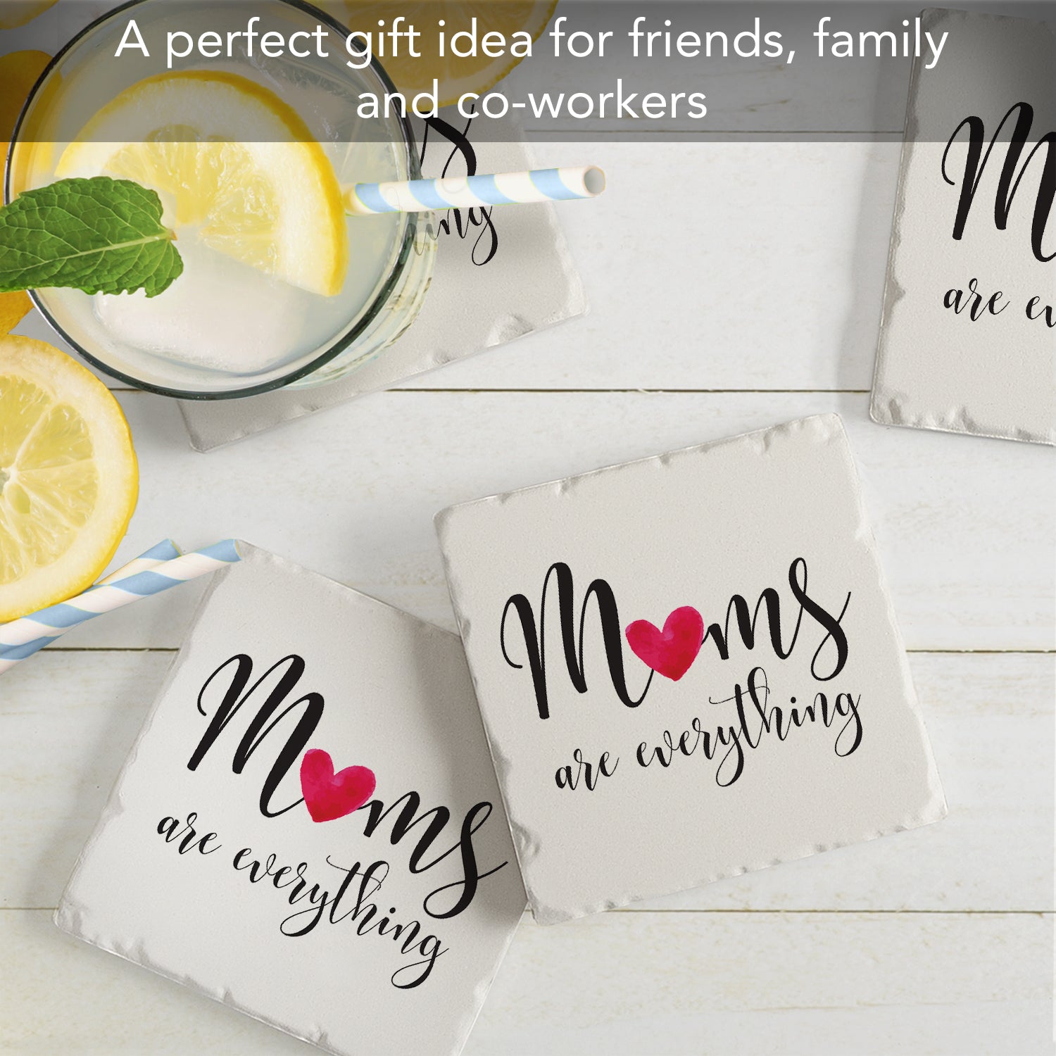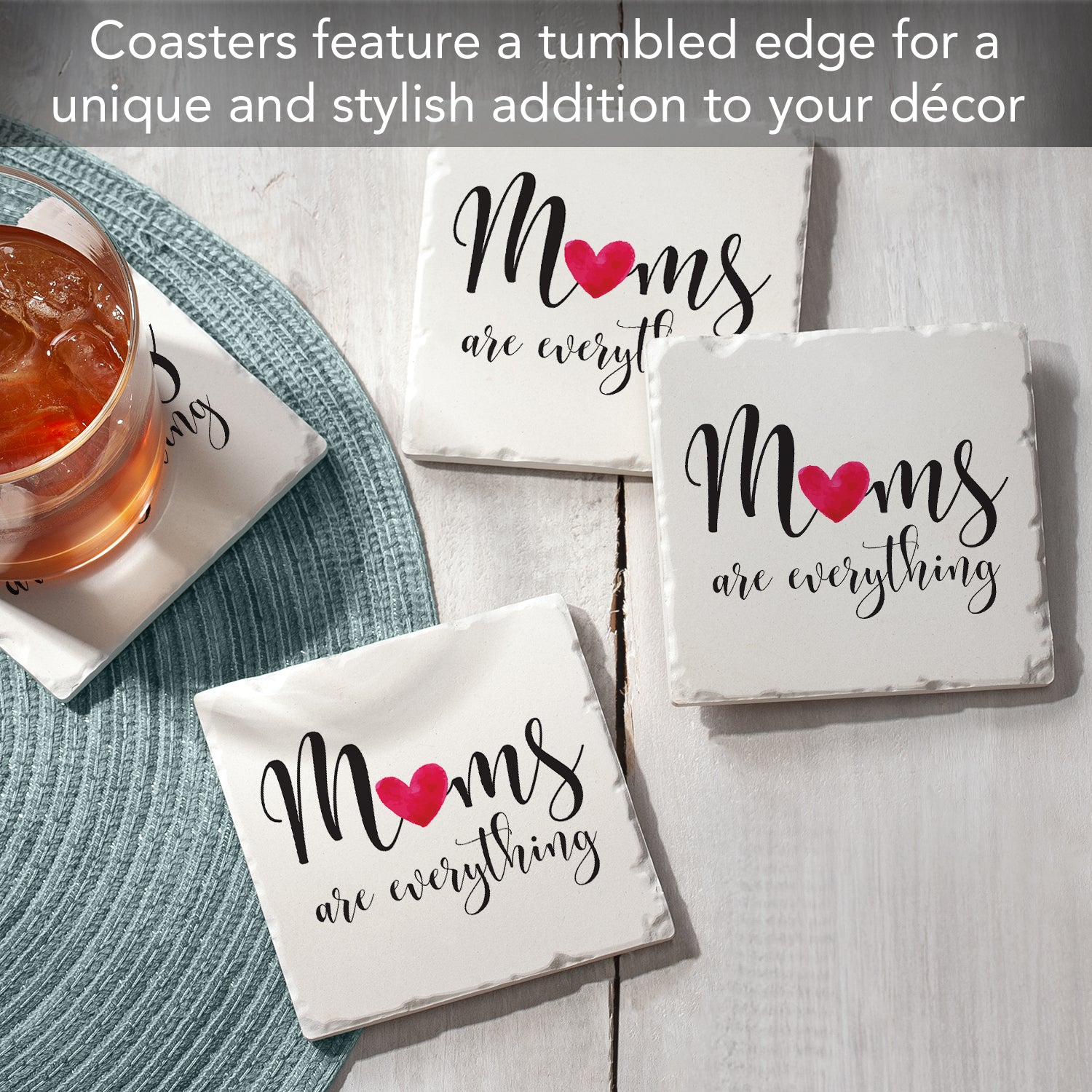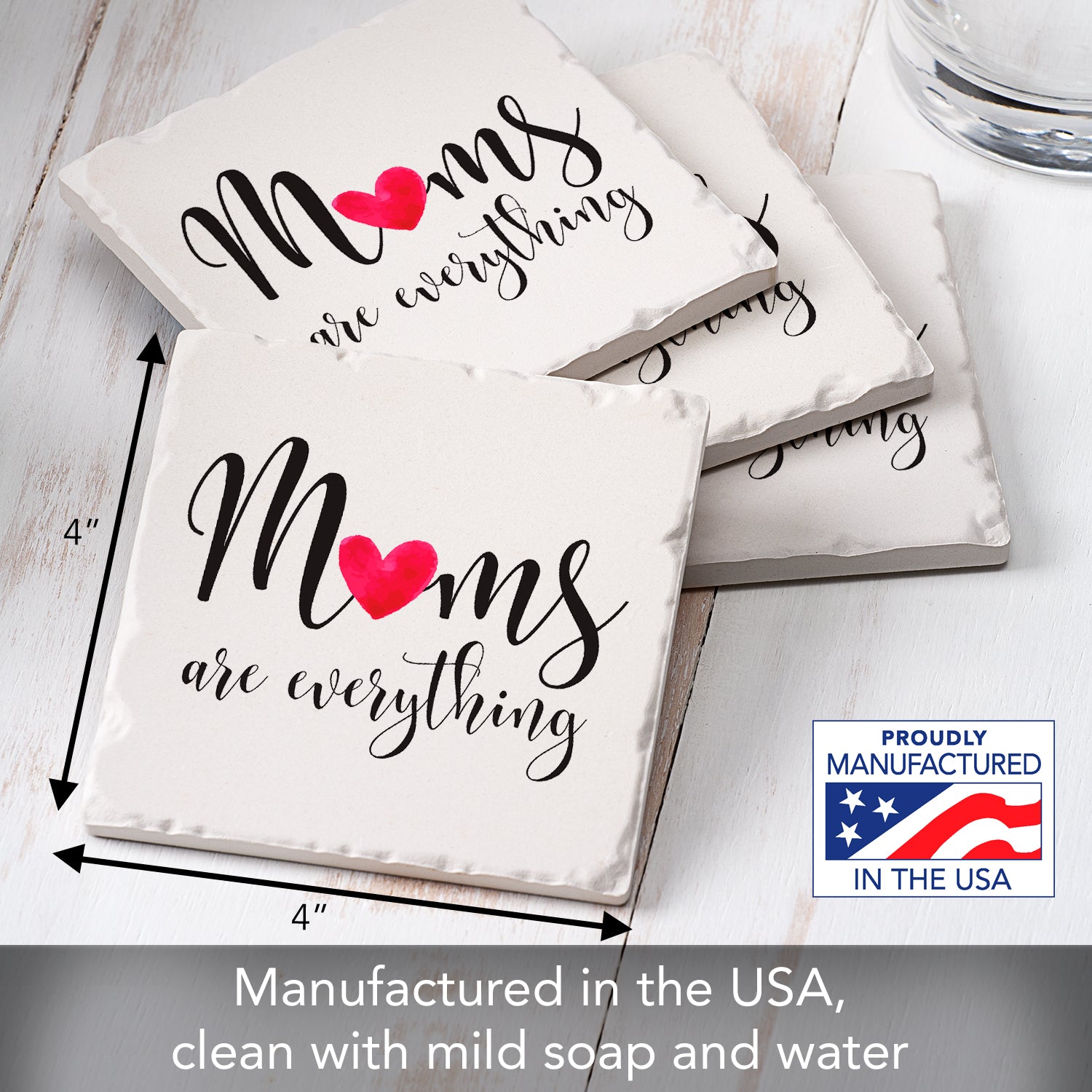 Thirstystone Mom Everything 4 Pack Absorbent Stone Tumbled Tile Coasters with Protective Cork Backing 4" Square Manufactured in The USA Artistic Absorbent Easily Wipes Clean
