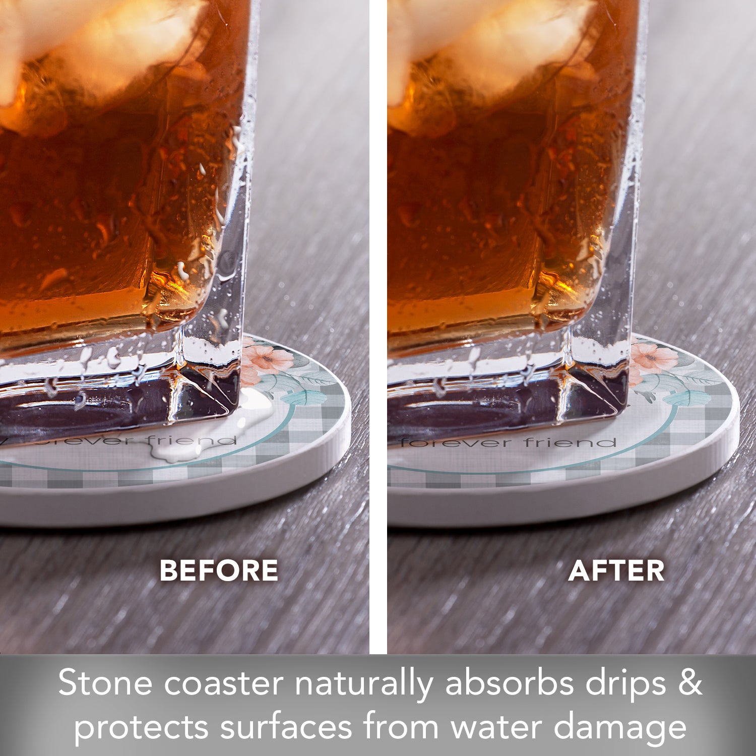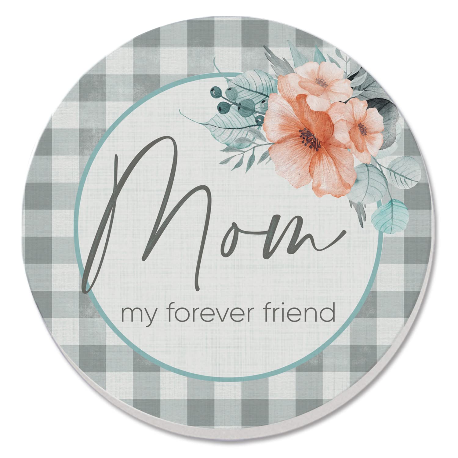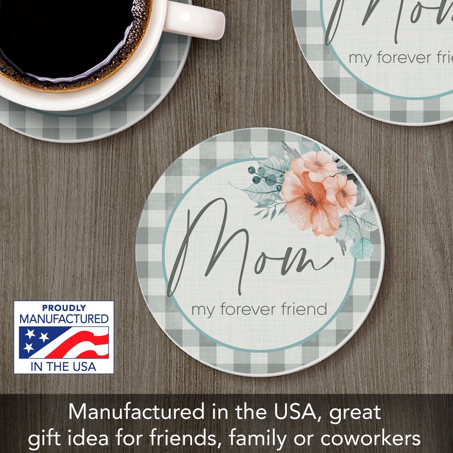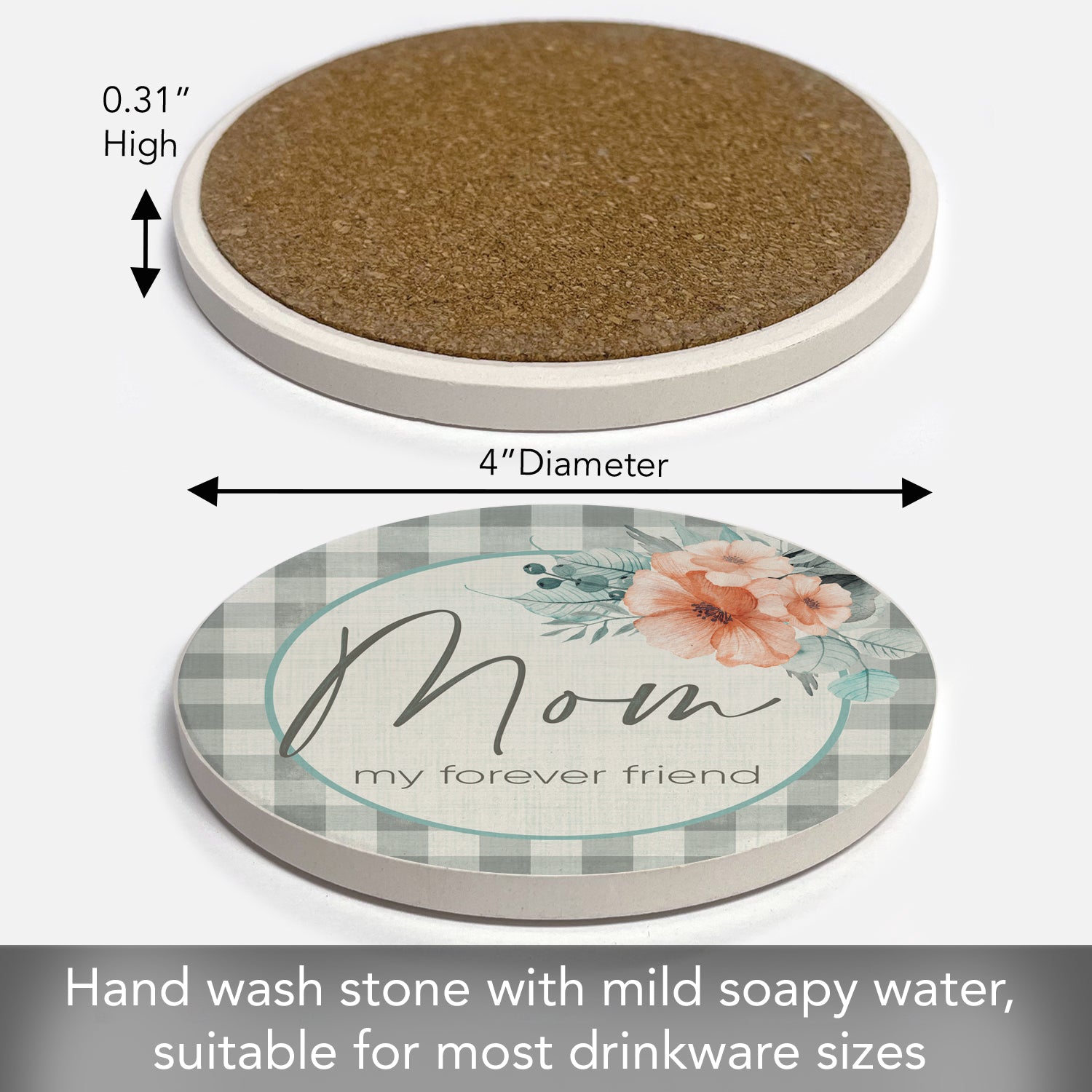 Thirstystone Mom Forever Friend Single Round Absorbent Stone Coaster with Protective Cork Backing Manufactured in The USA 4" Diameter