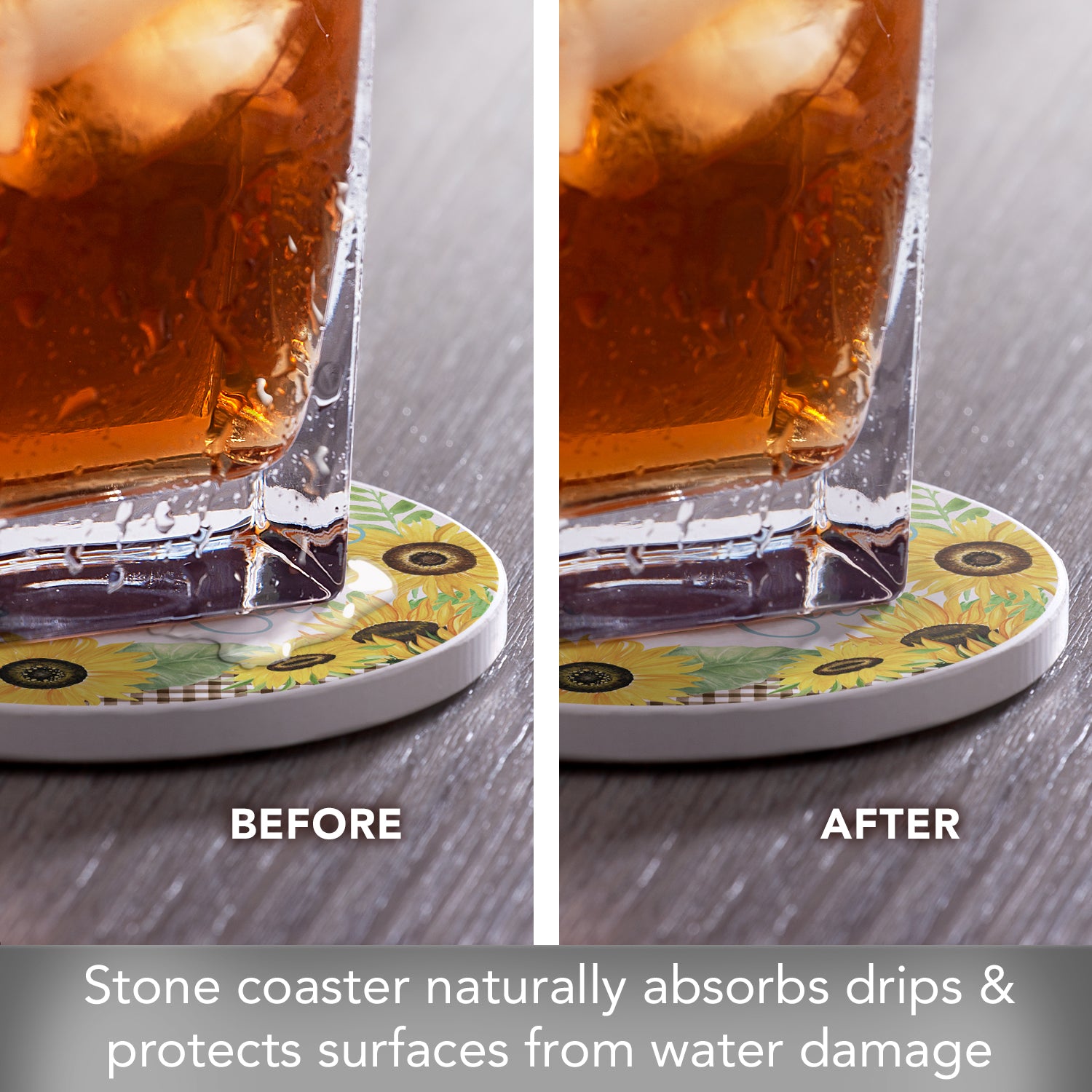ABSORBENT STONE-Coaster is constructed from absorbent stone to absorb excess condensation from beverages. This is a 1 Coaster Pack to allow you to choose from our other coordinating Coaster Designs and complete your own personal set.