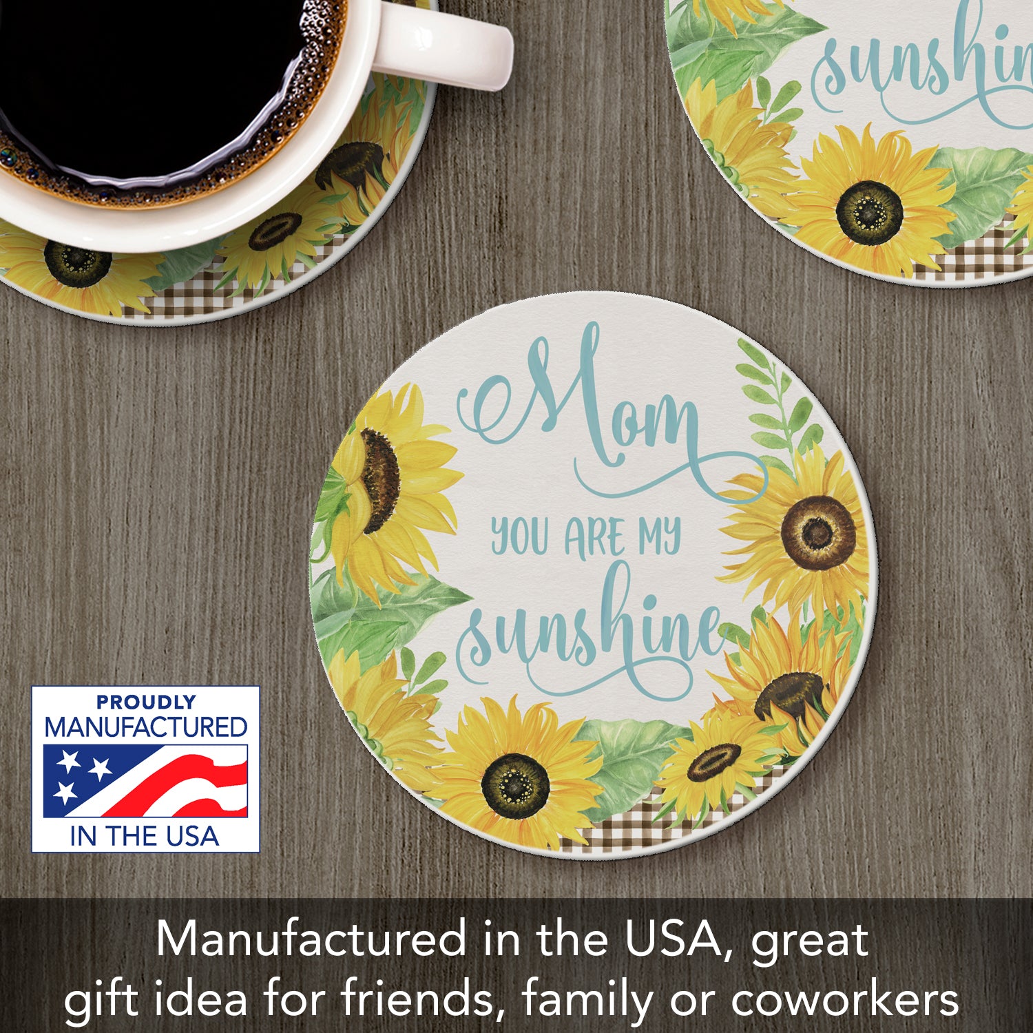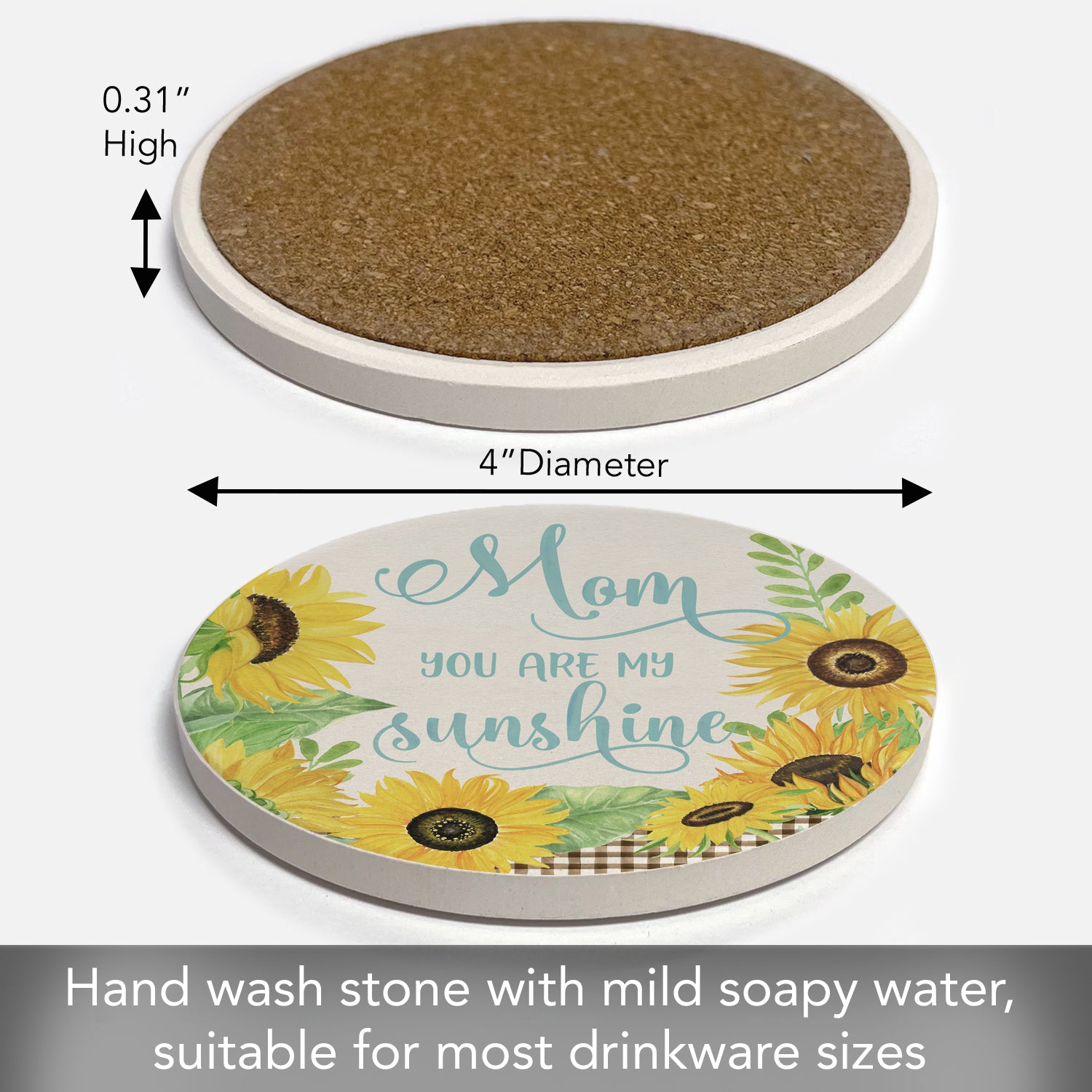 Thirstystone Mom Sunshine Single Round Absorbent Stone Coaster with Protective Cork Backing Manufactured in The USA 4" Diameter