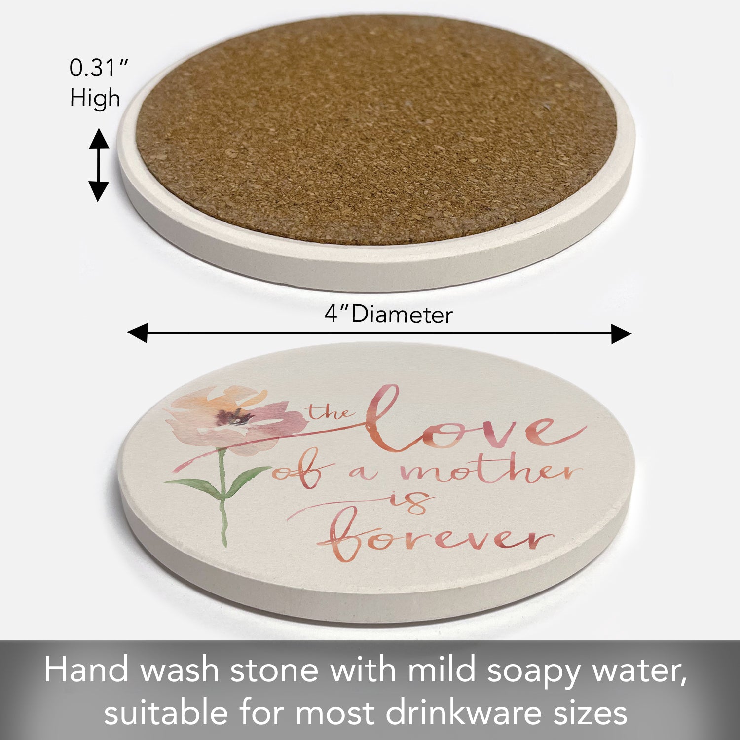 Thirstystone Mom's Love Single Round Absorbent Stone Coaster Manufactured in the USA 4" Diameter