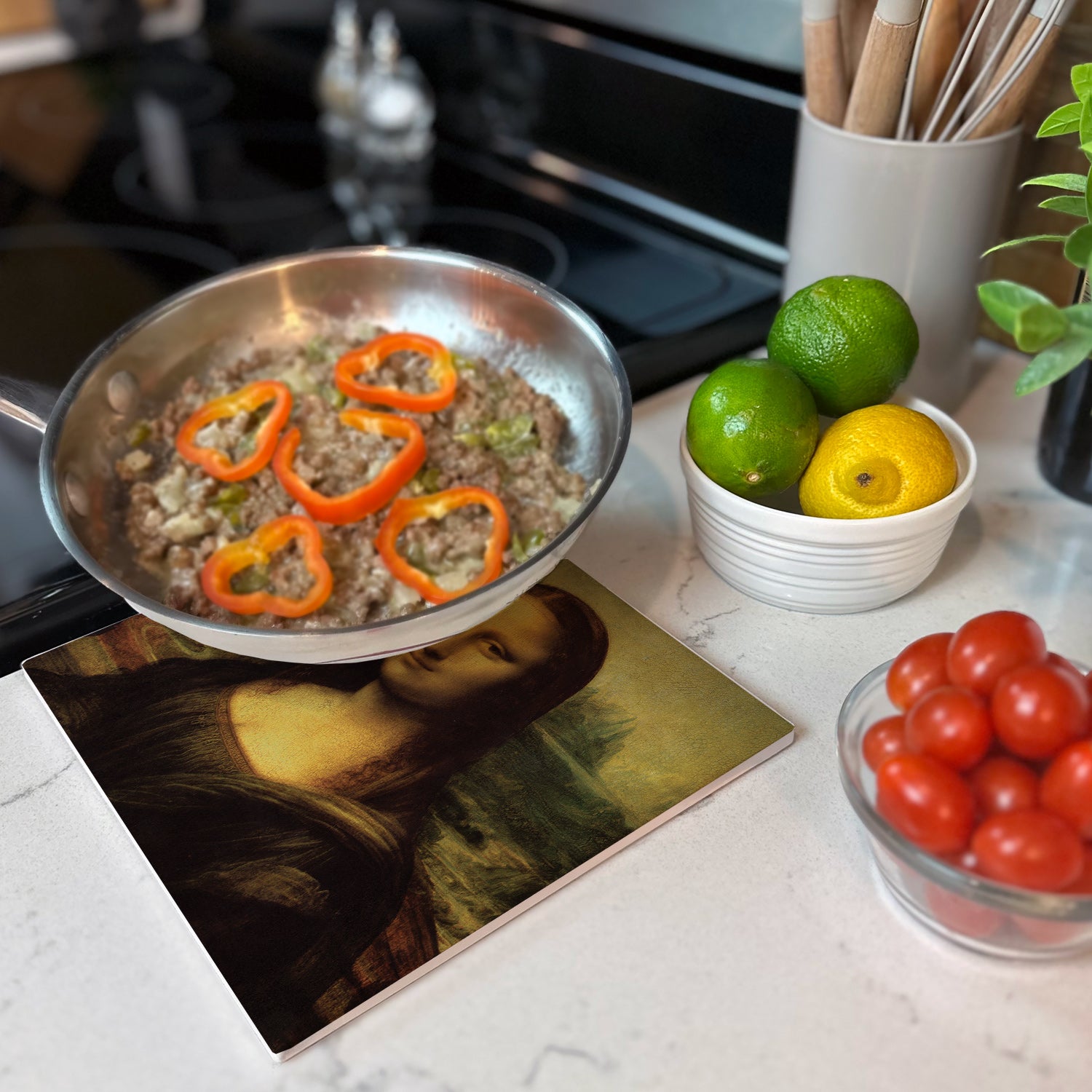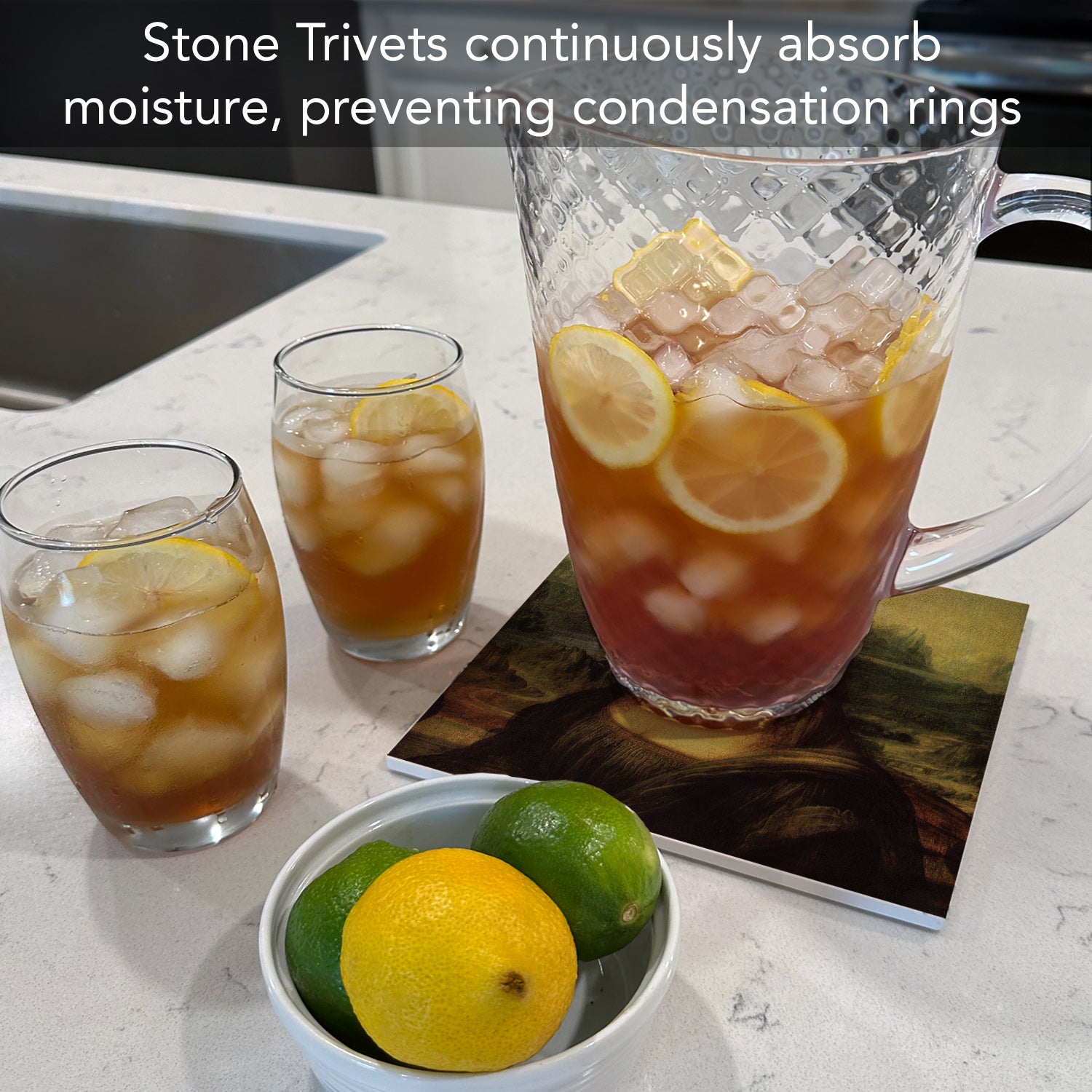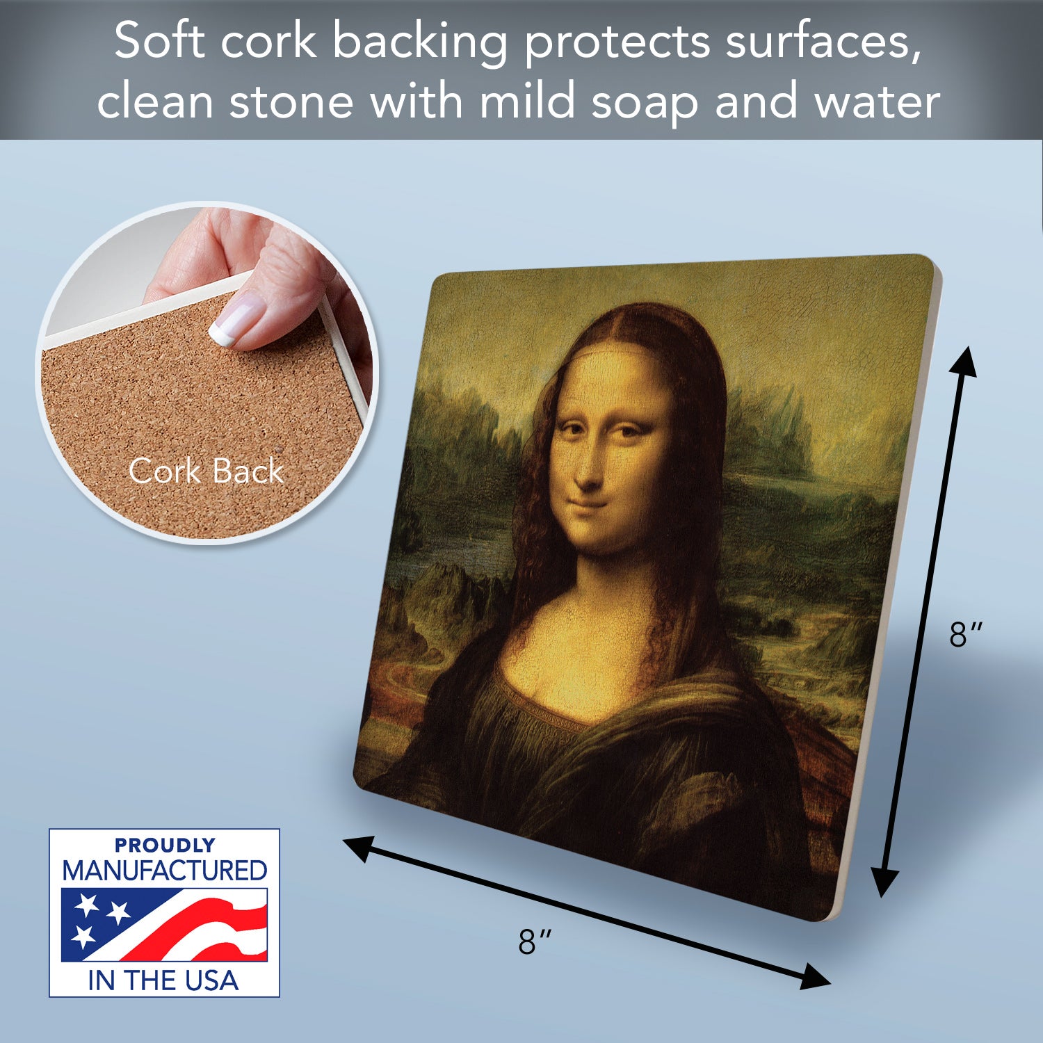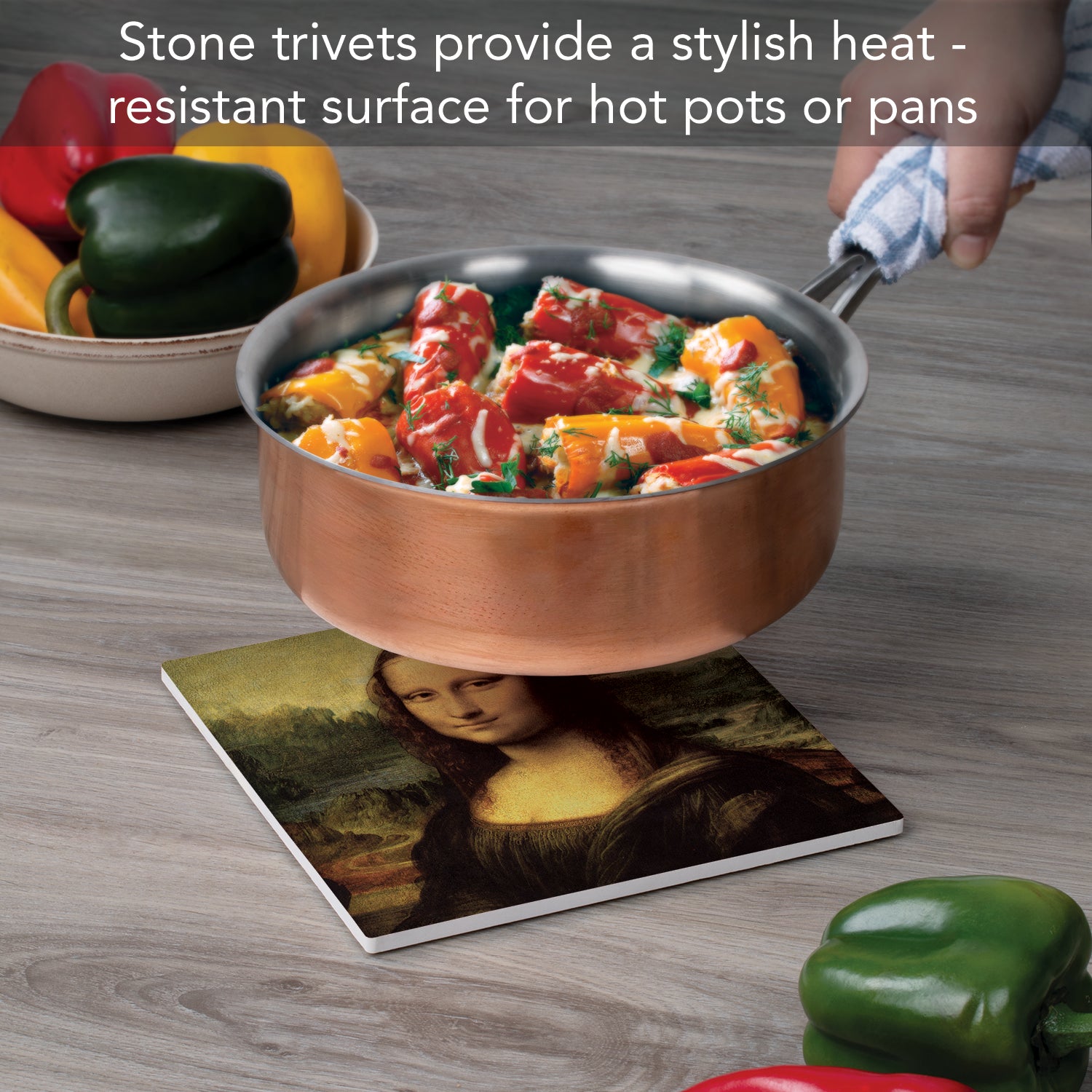 Thirstystone Mona Lisa Decorative Heat Tolerant Stone Trivet 8” Square Manufactured in the USA