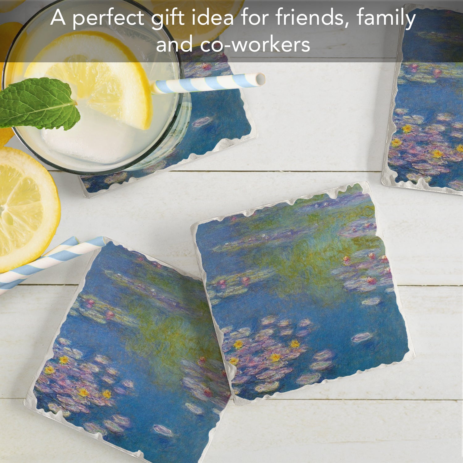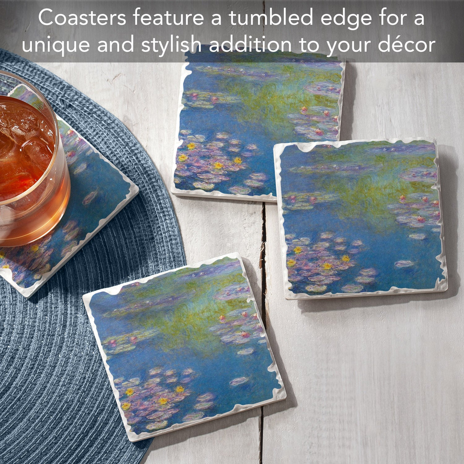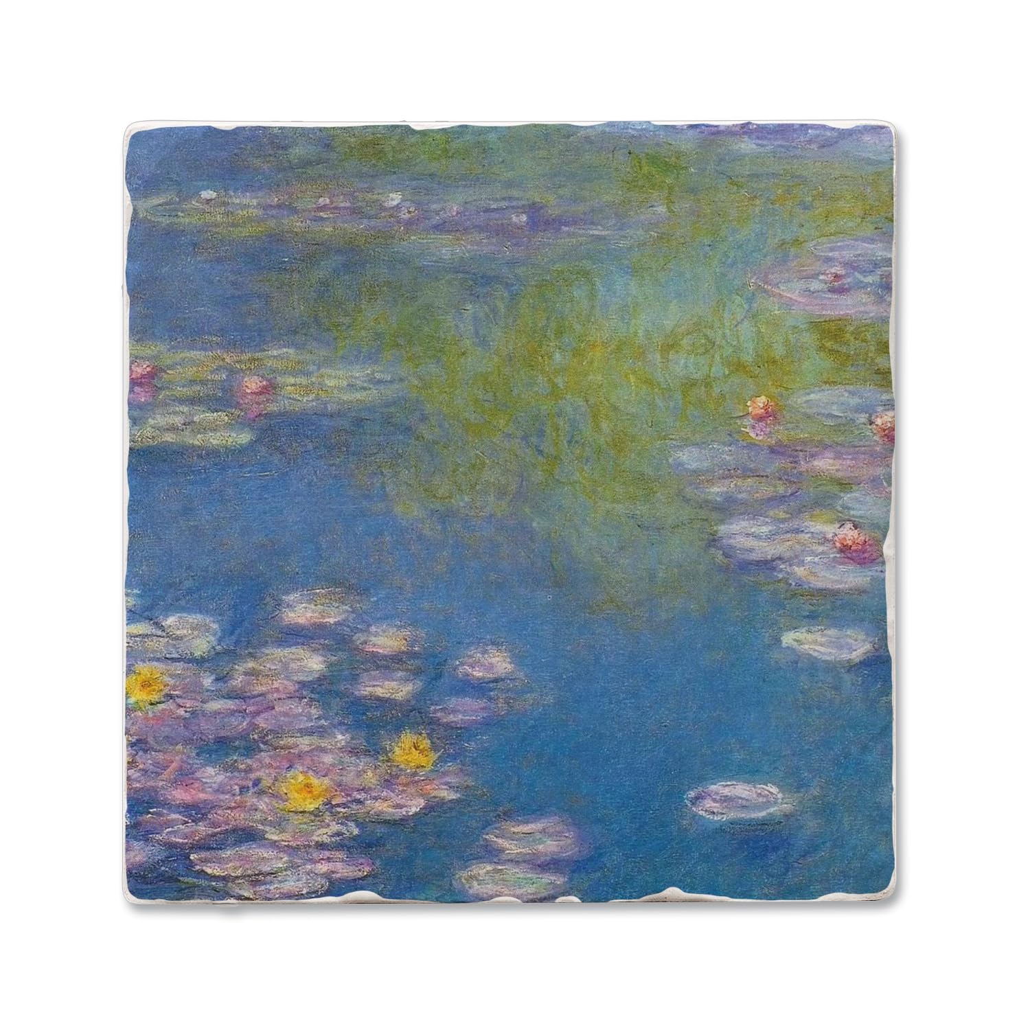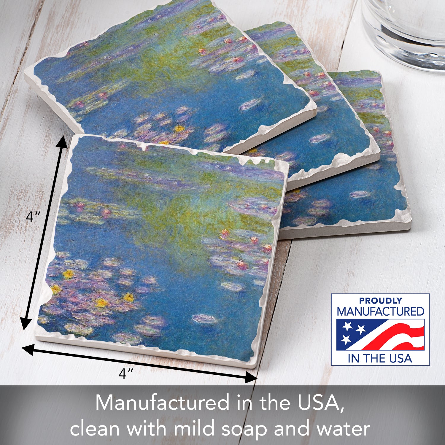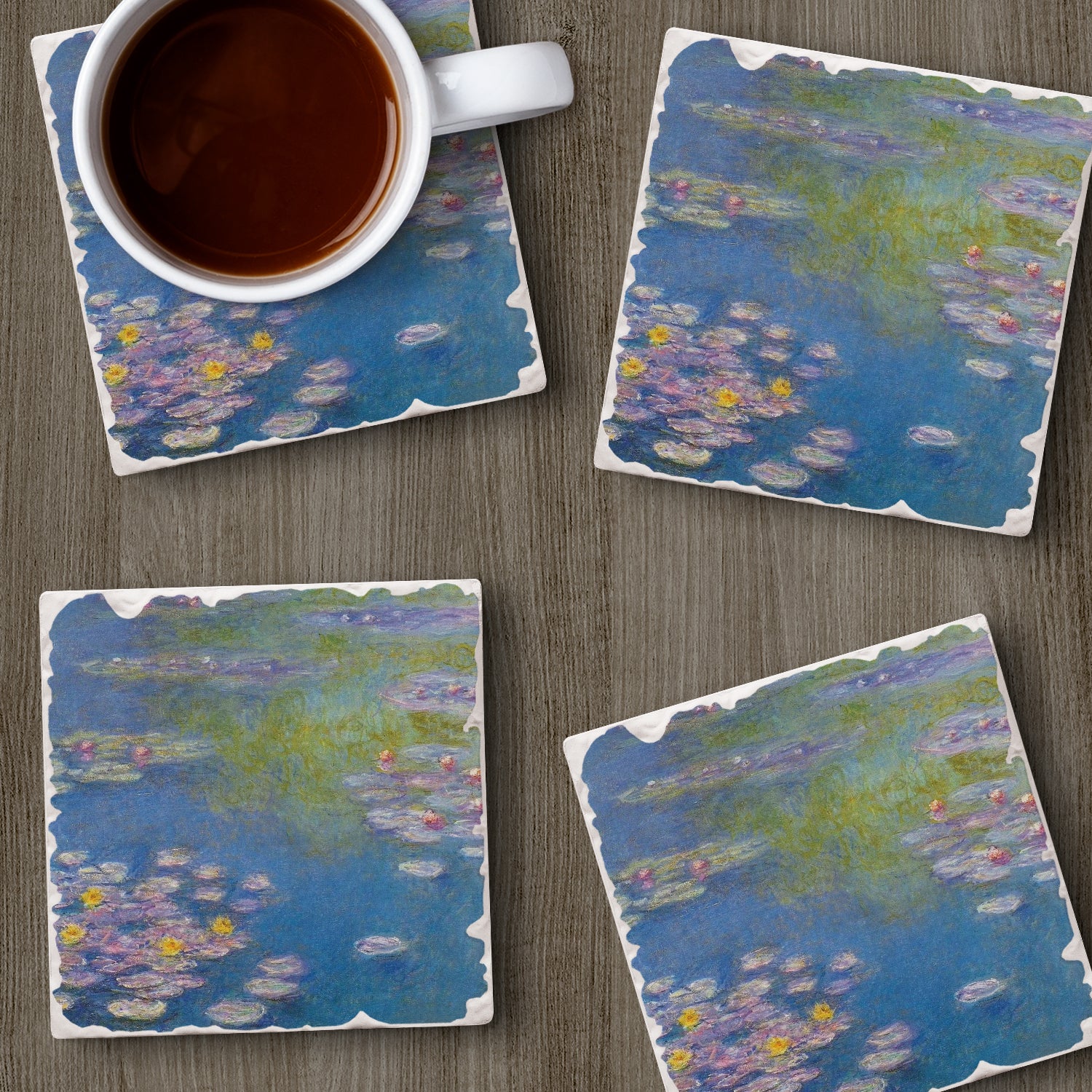 Thirstystone Monet Water Lilies 4 Pack Tumbled Tile Stone Coasters 4" Square Manufactured in the USA