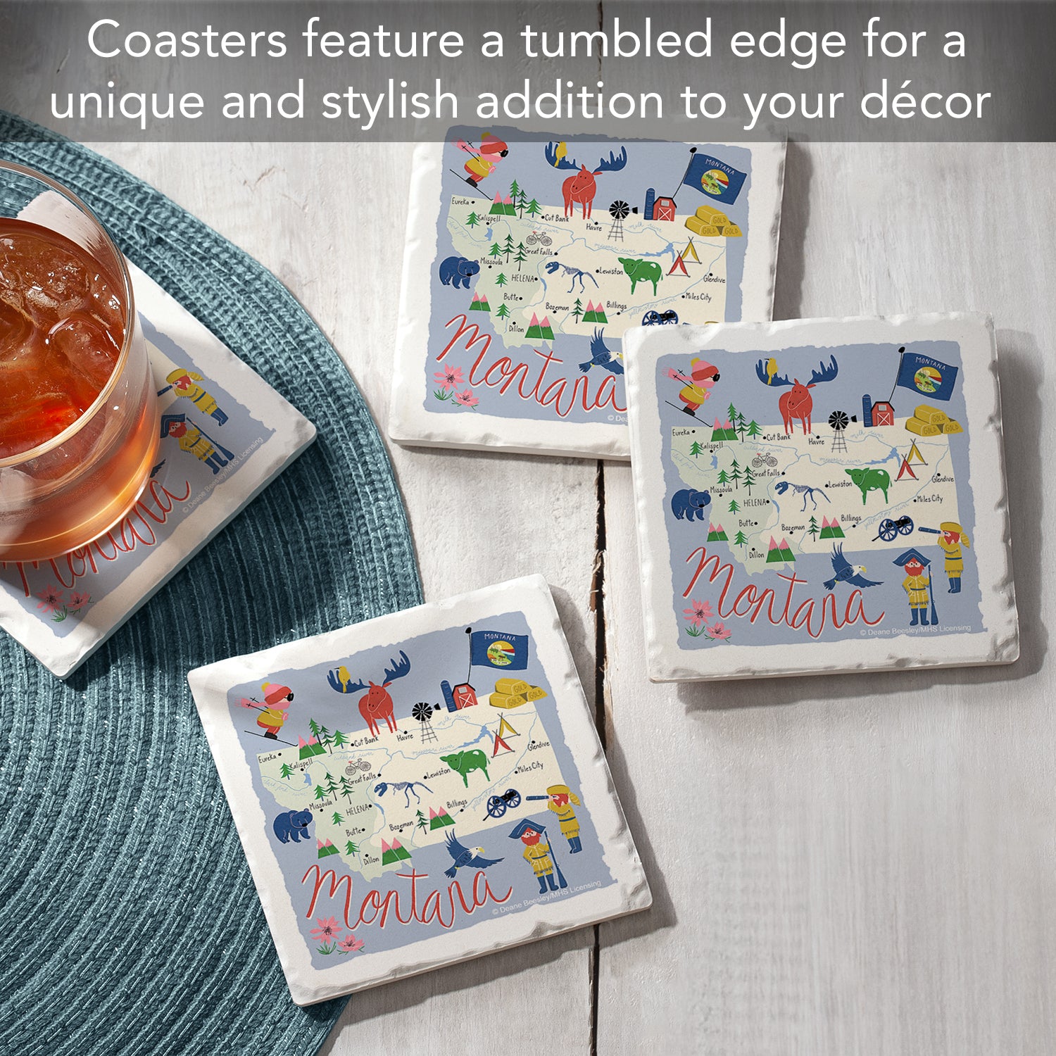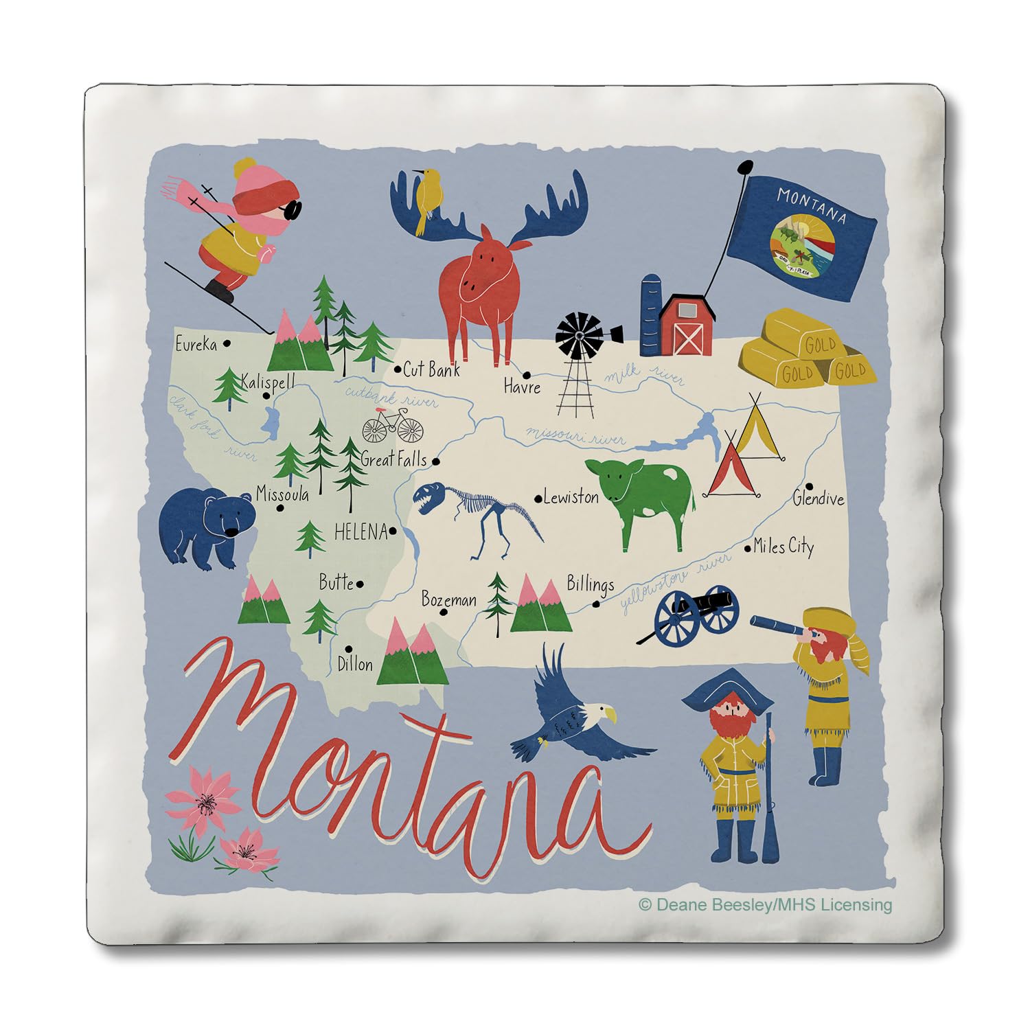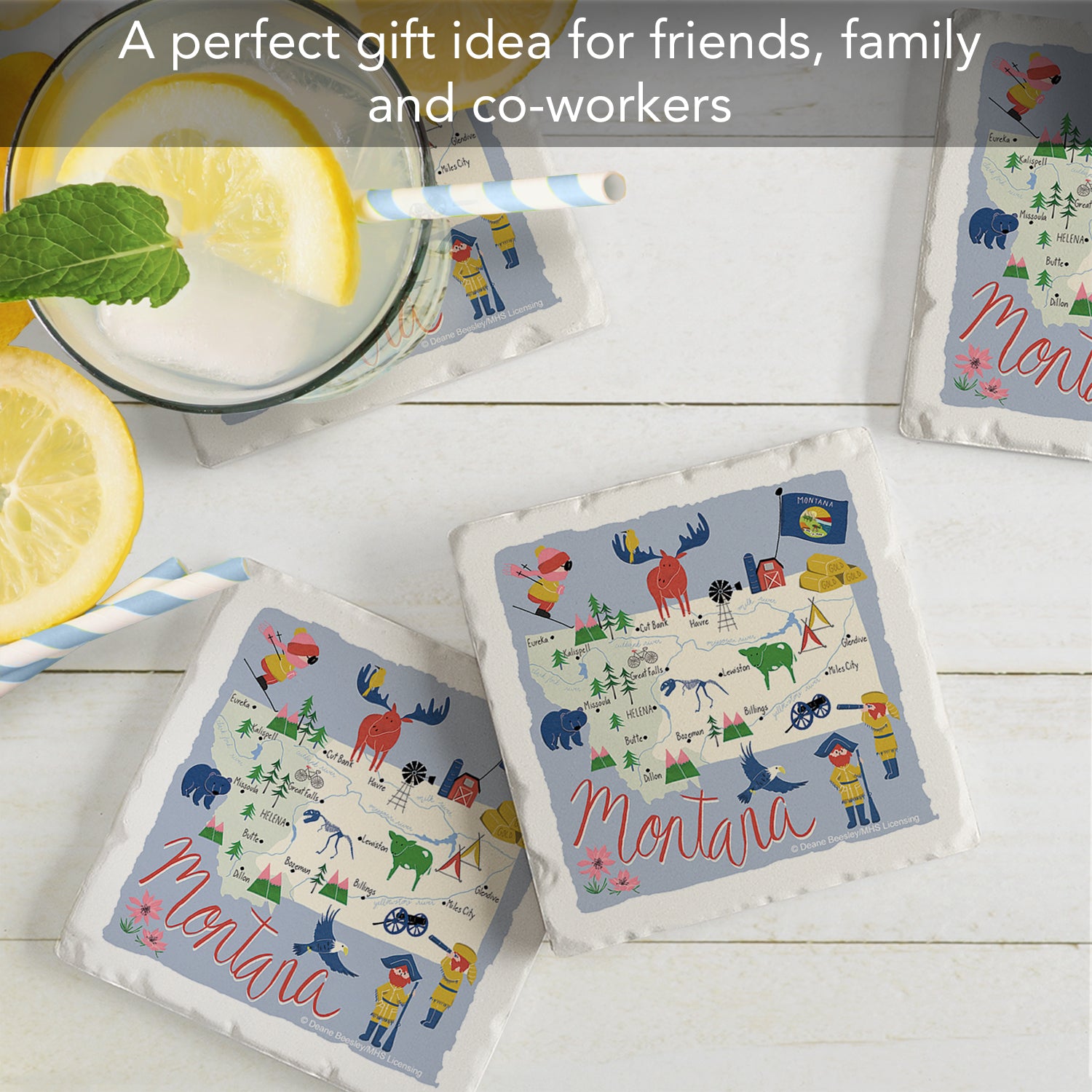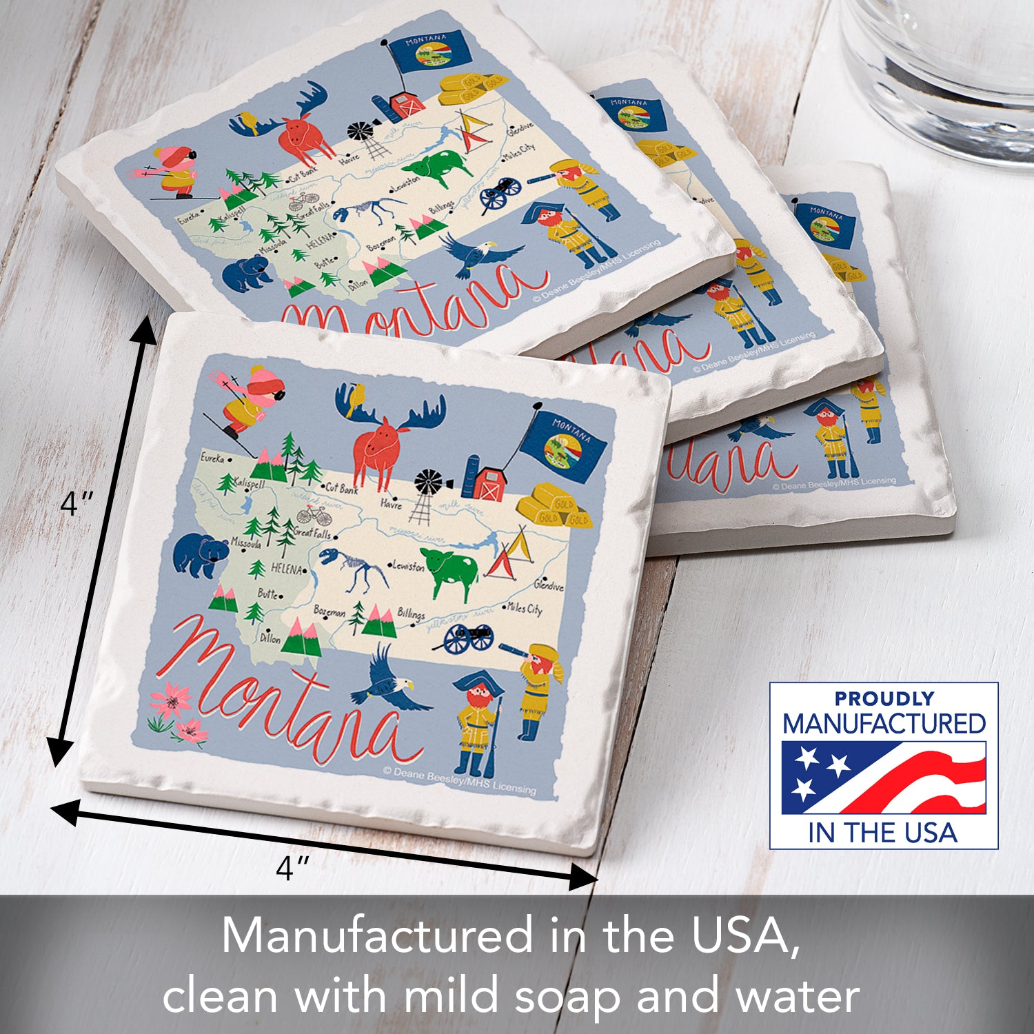 Thirstystone Montana Home State 4 Pack Tumbled Tile Stone Coasters 4" Square Manufactured in the USA