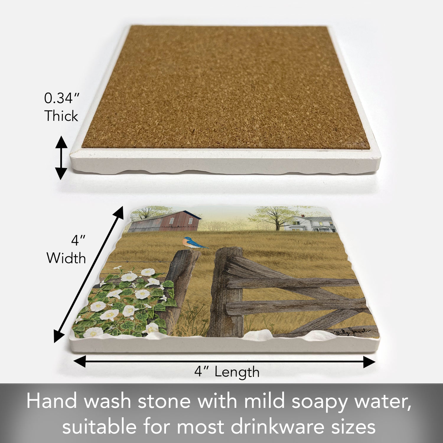 FUNCTIONAL ART-Beautiful artistic design allows the Coaster to remain displayed even when not in use. Each Coaster measures 4” x 4” x .25”. Sized to fit larger Mugs & Glasses.