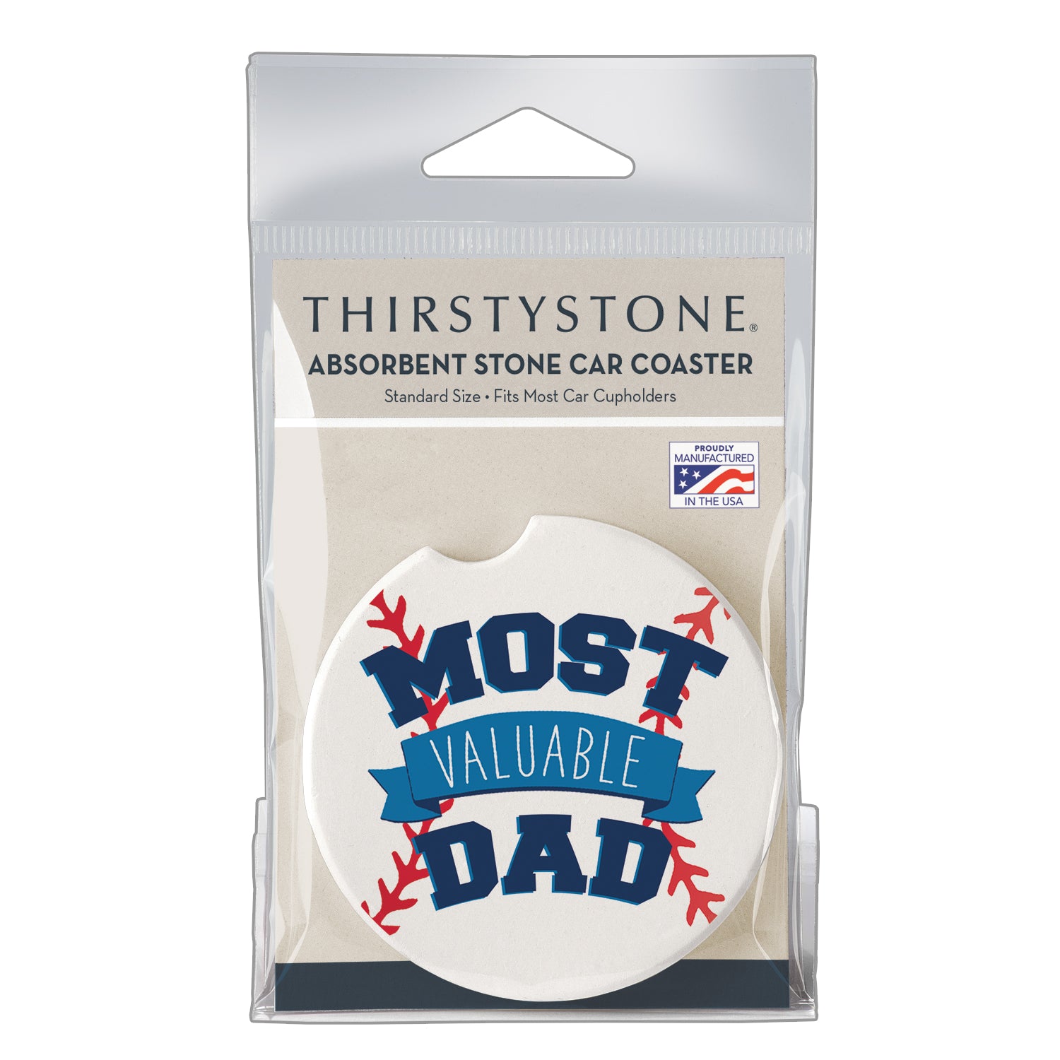 Thirstystone Most Valuable Dad Single Absorbent Stone Car Coaster for Vehicle Cup Holder 2.6” Diameter Manufactured in the USA