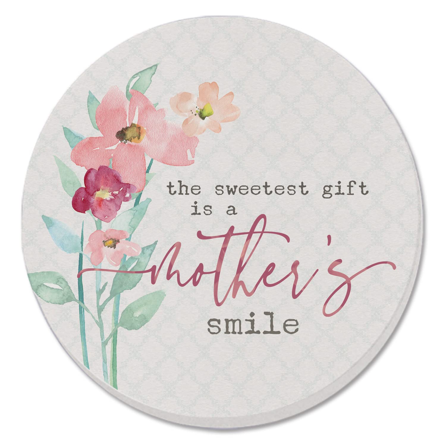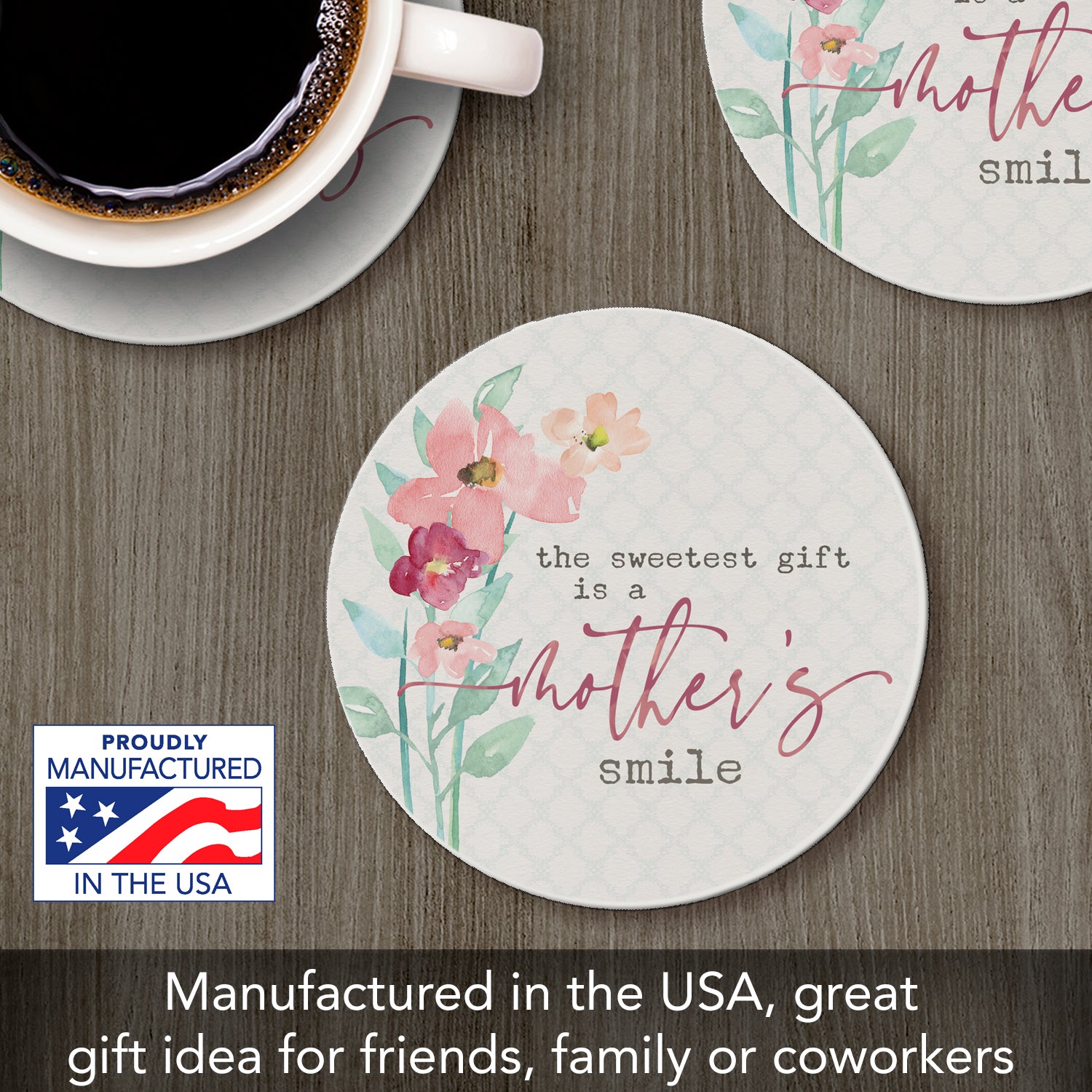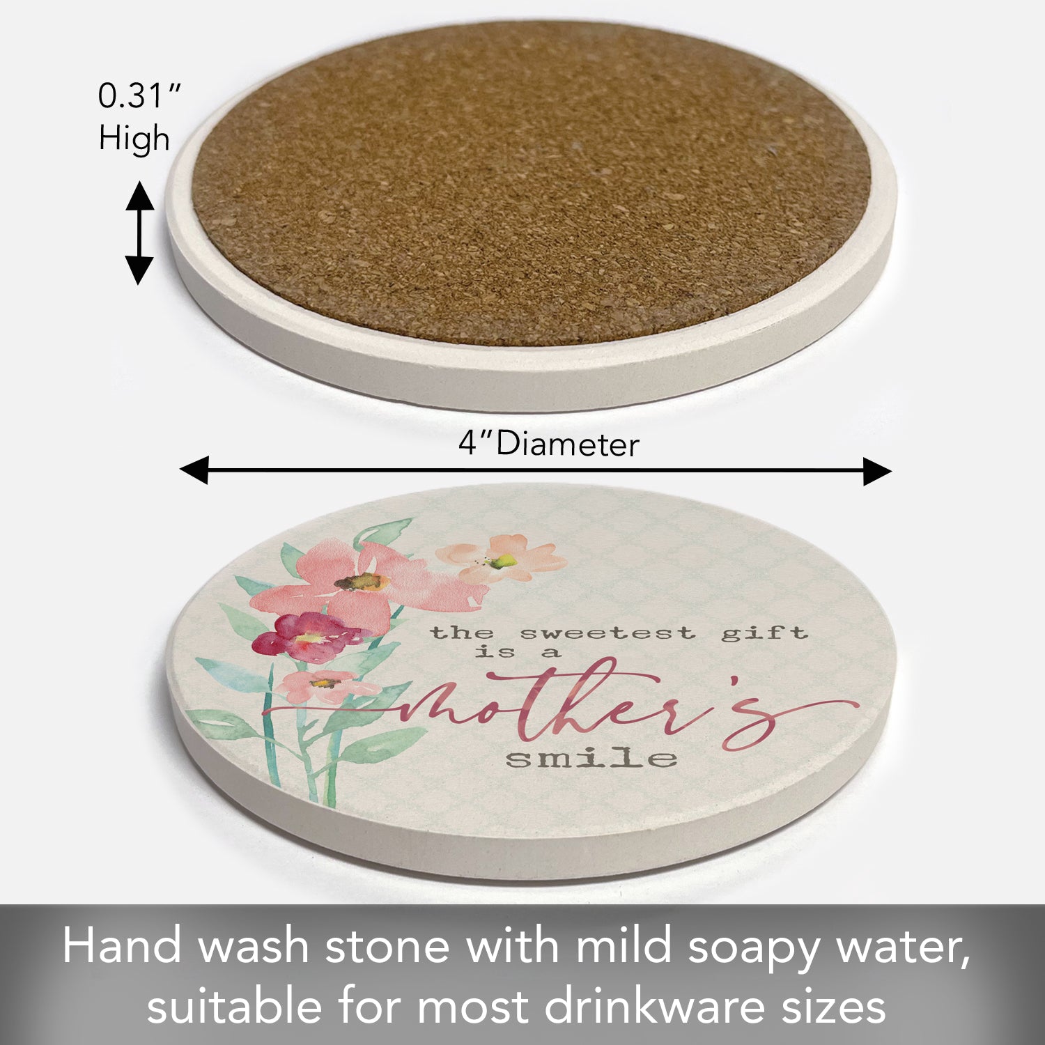 Thirstystone Mothers Smile Single Round Absorbent Stone Coaster with Protective Cork Backing Manufactured in The USA 4" Diameter