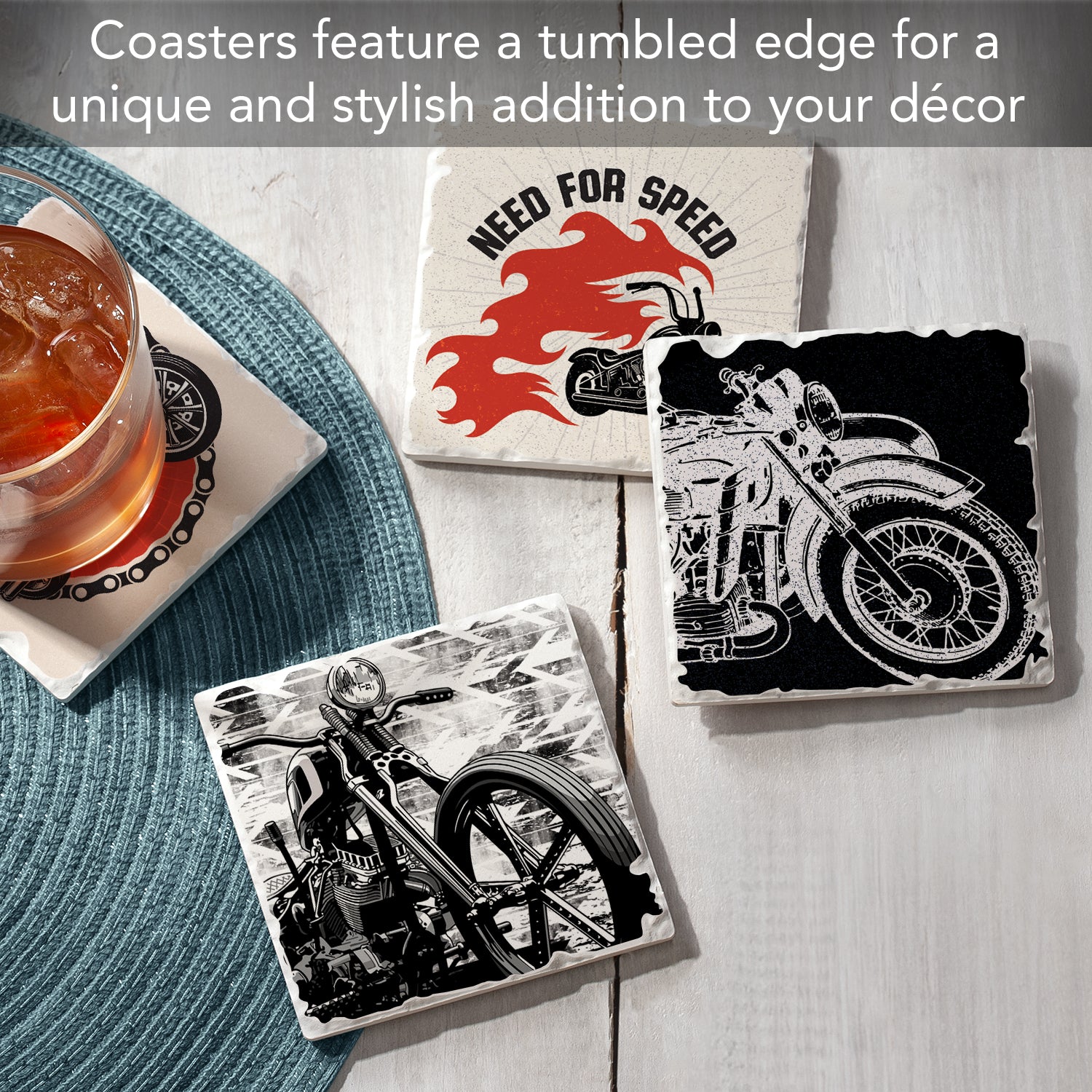 Thirstystone Motorcycles 4-Pack Tumbled Tile Stone Coasters 4" Square