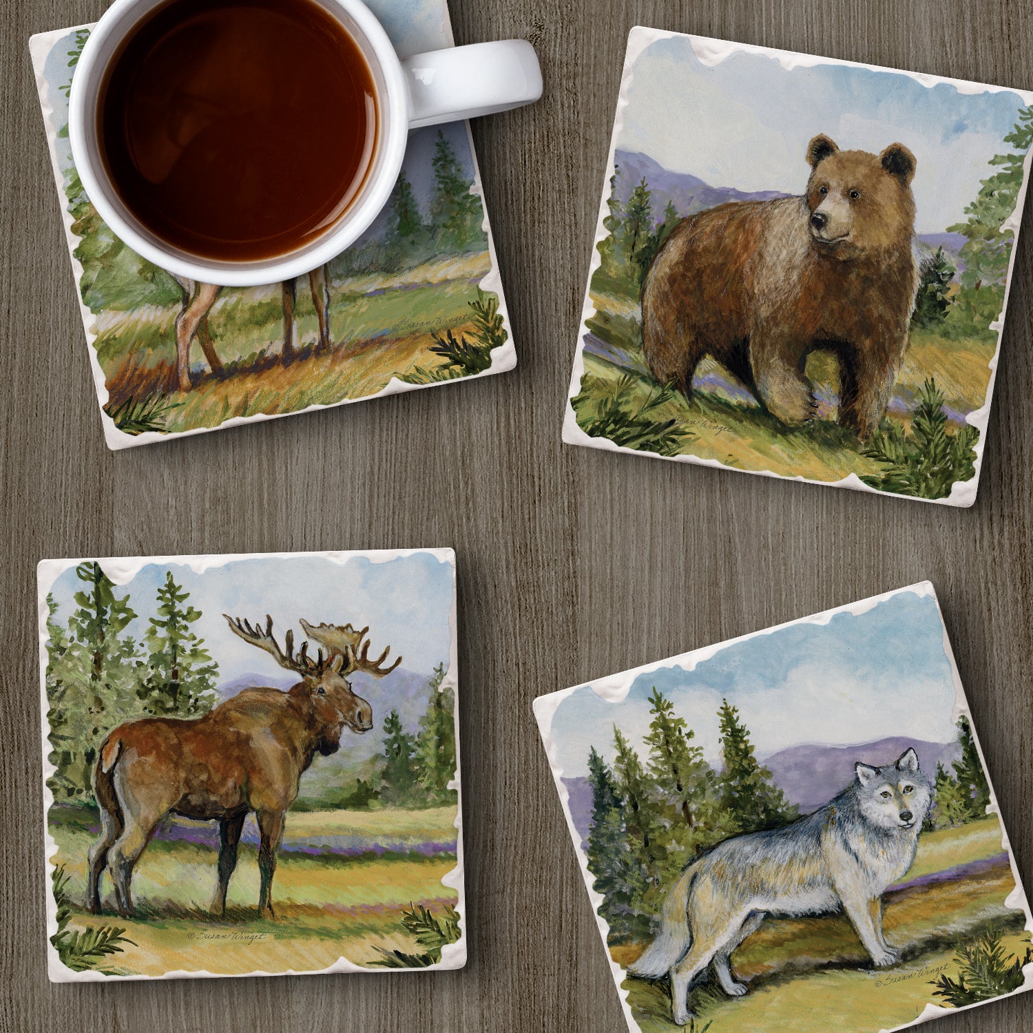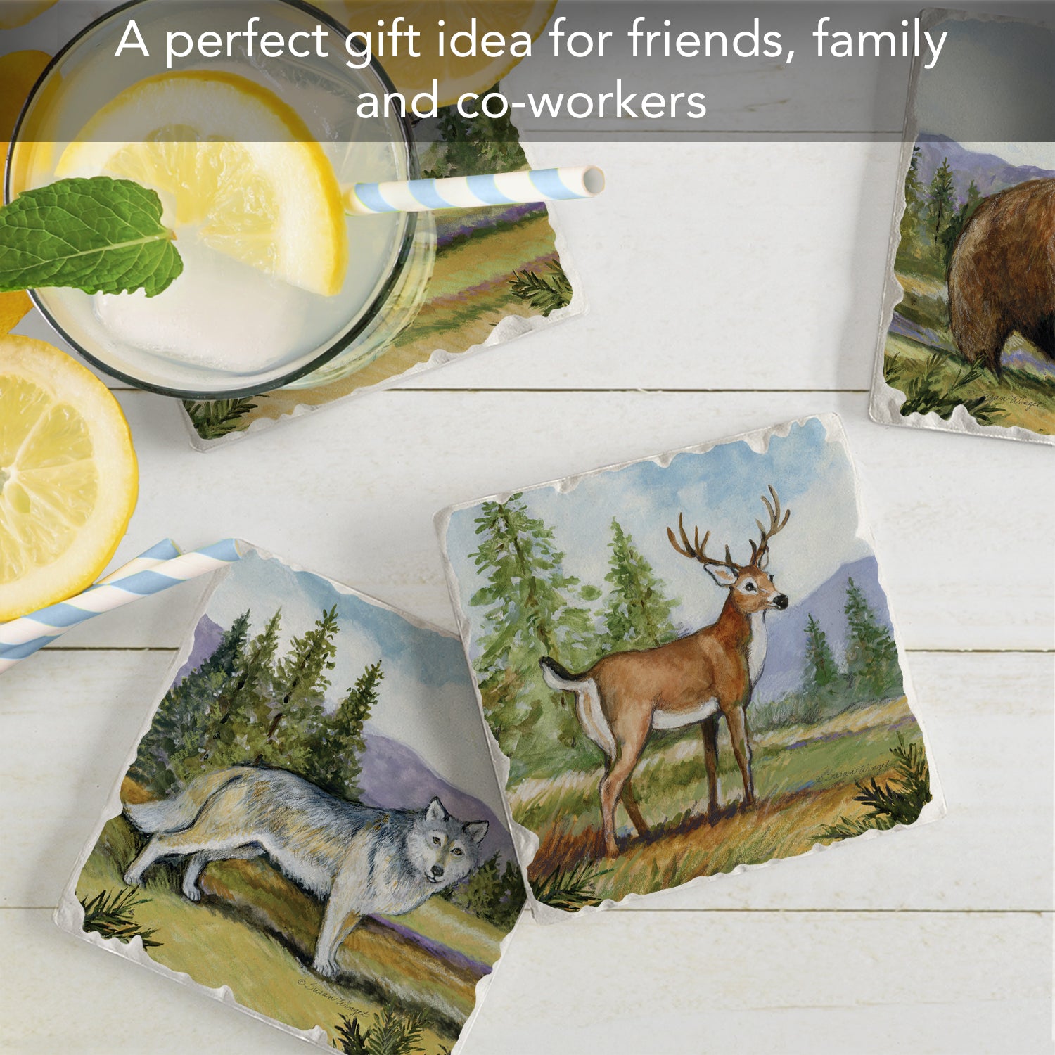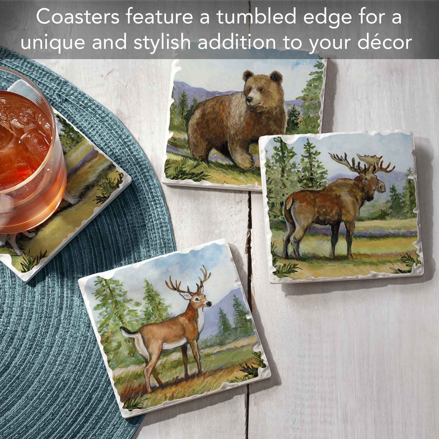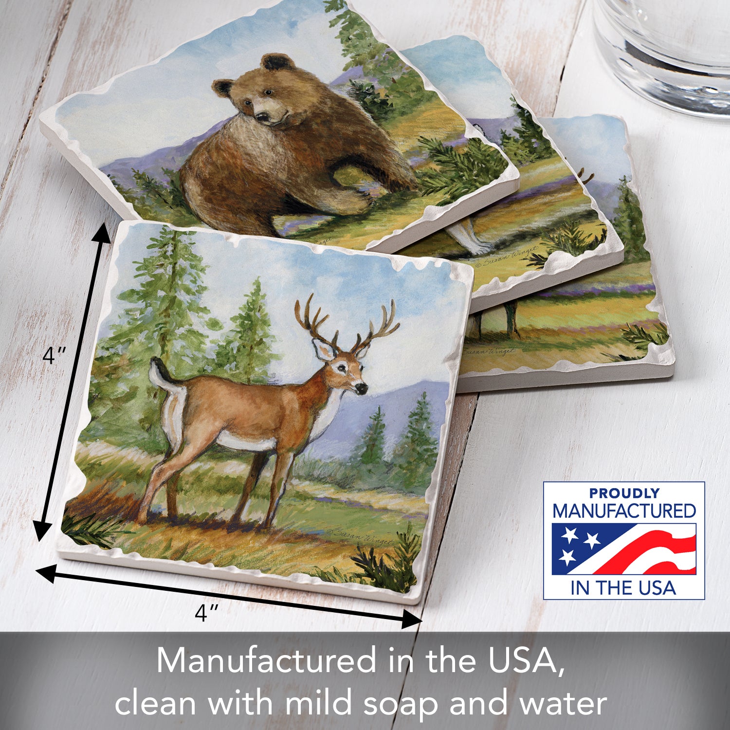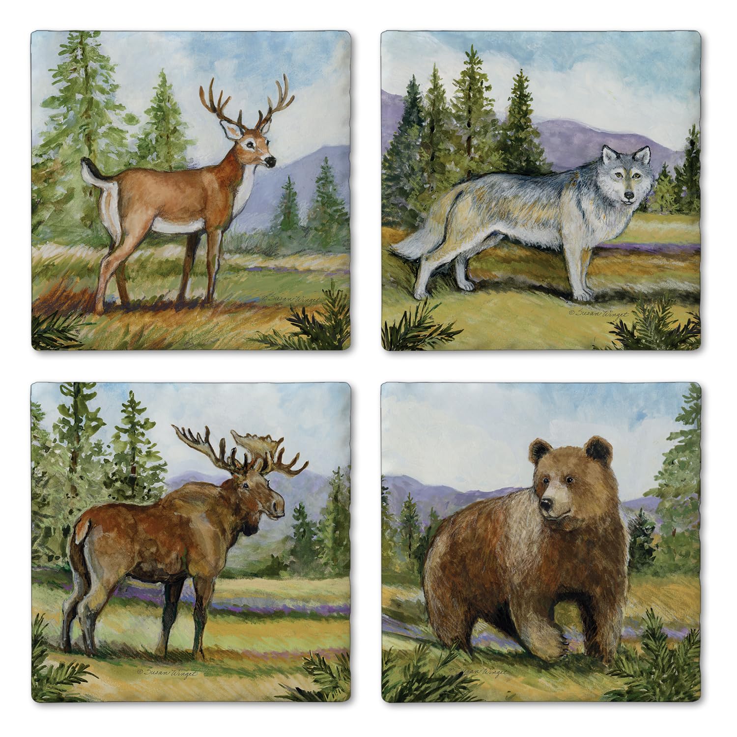 Thirstystone Mountain Lodge Animals 4-Pack Tumbled Tile Stone Coasters 4" Square